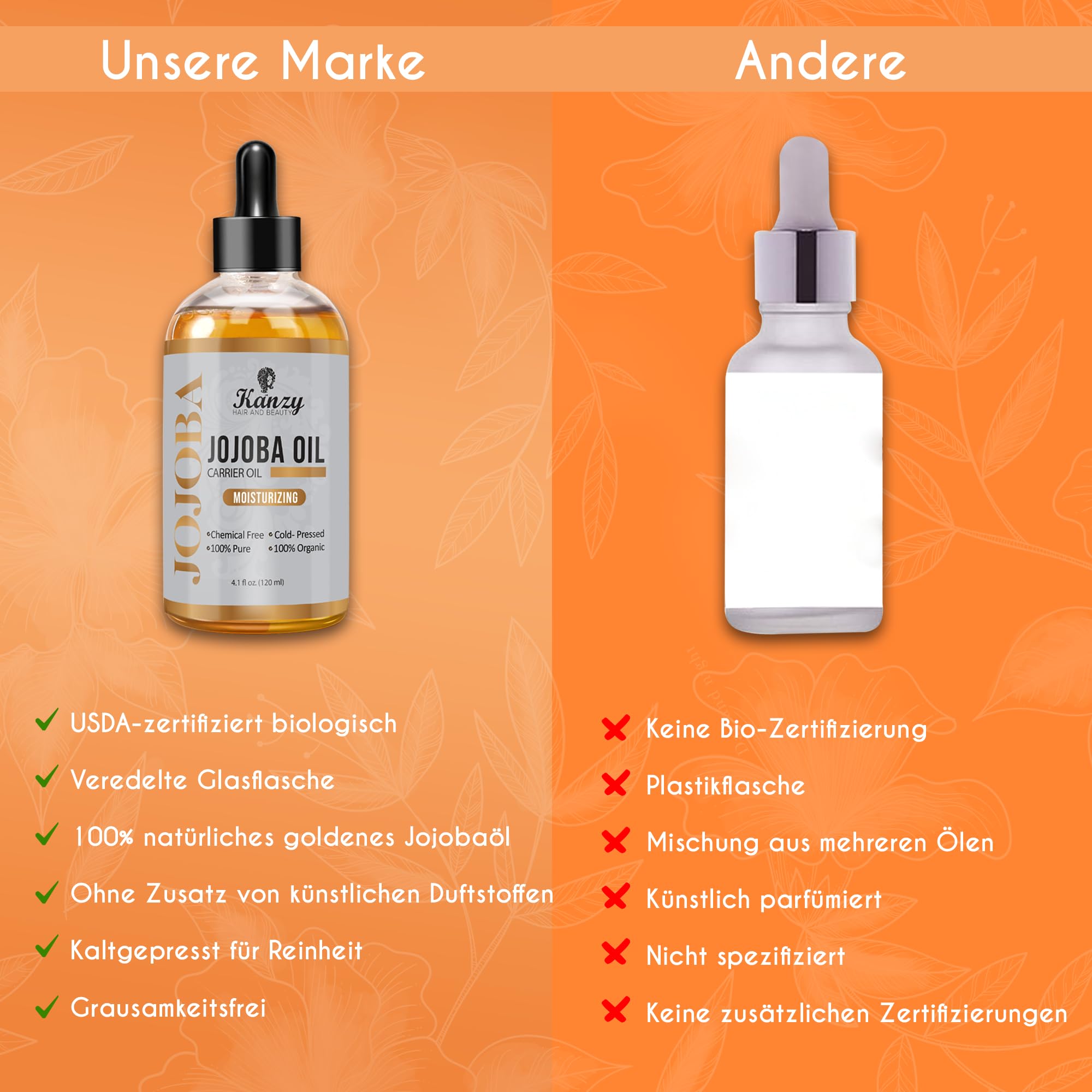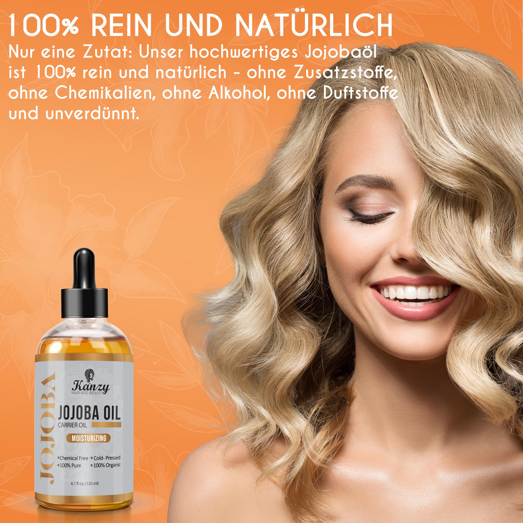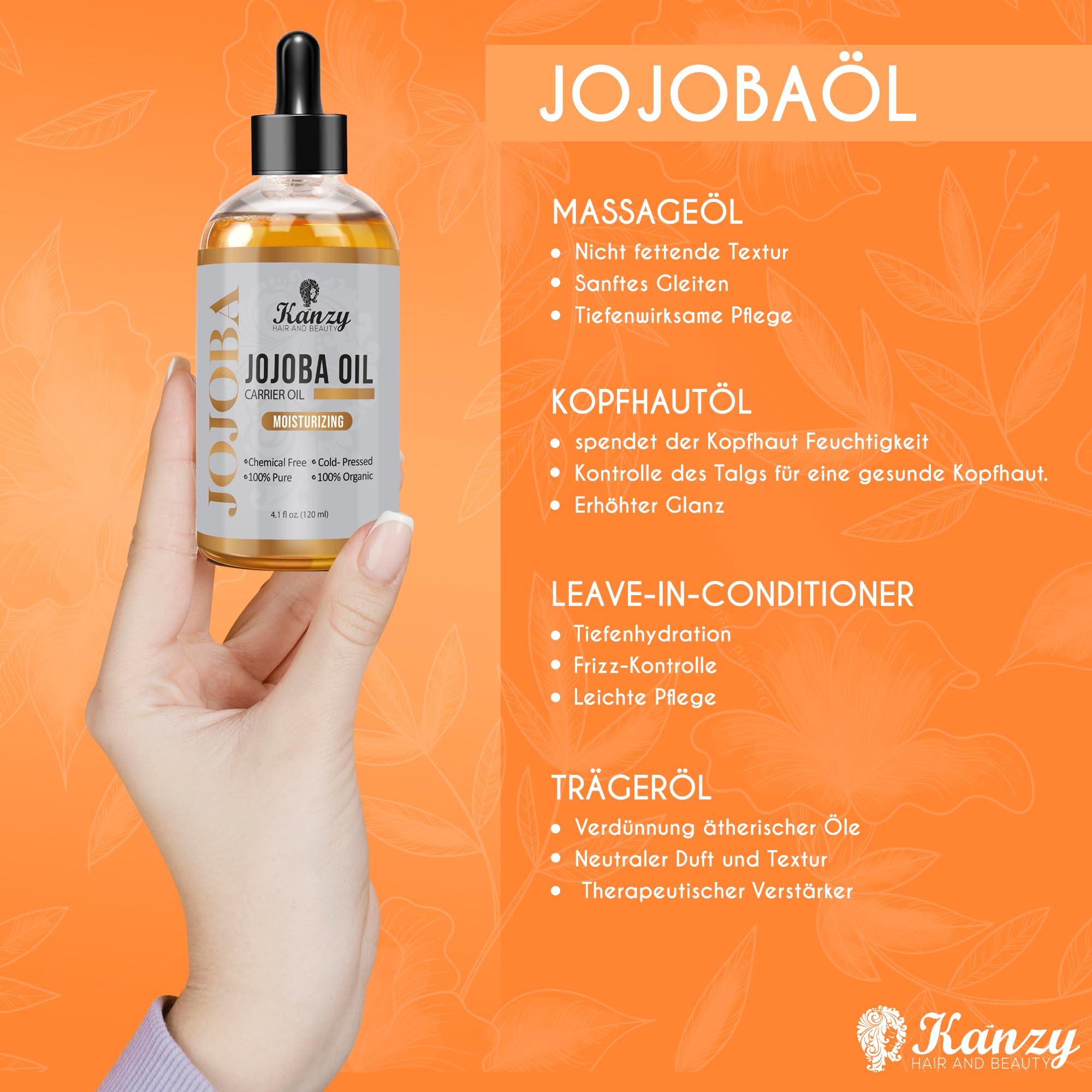 Kanzy Jojobaöl Bio Kaltgepresst 100% Reines Gold, 120ml für Haut, Haare und Nägel, Gesichtsöl und Körperöl, Vegan & Hexanfrei, Bio Jojobaöl, Anti-Falten, Natürliche Intensiv Feuchtigkeitspflege
