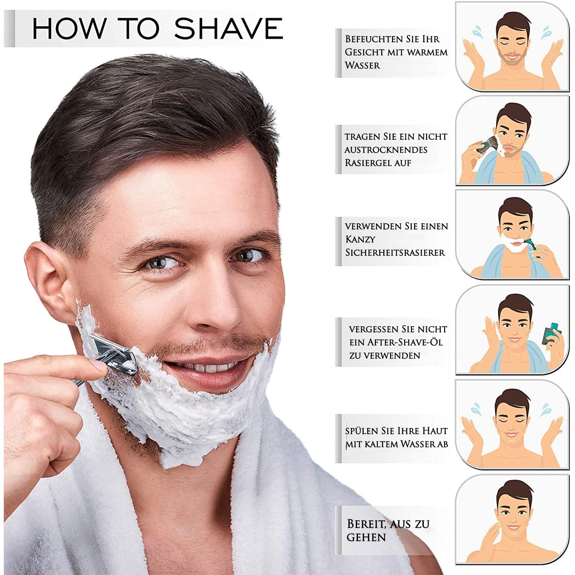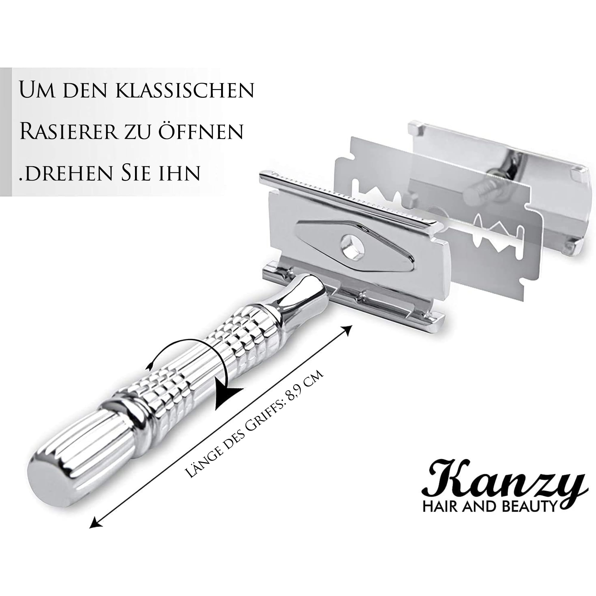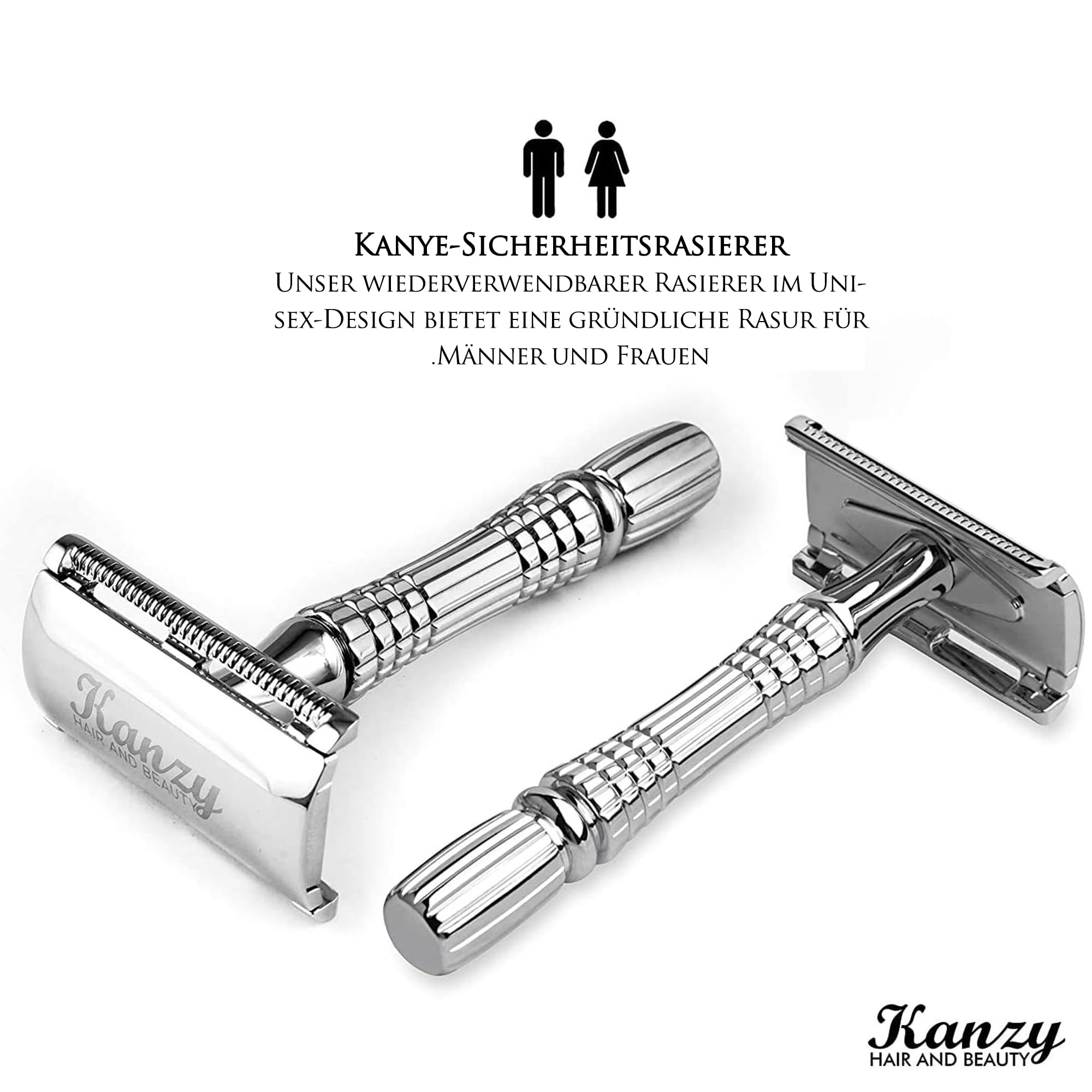 Kanzy Rasierhobel Herren und Damen mit 10 Klingen Edelstahl, Nassrasierer Sicherheitsrasierer arbeitet mit allen Doppelkante Rasierer Klingen Safety Razor Set