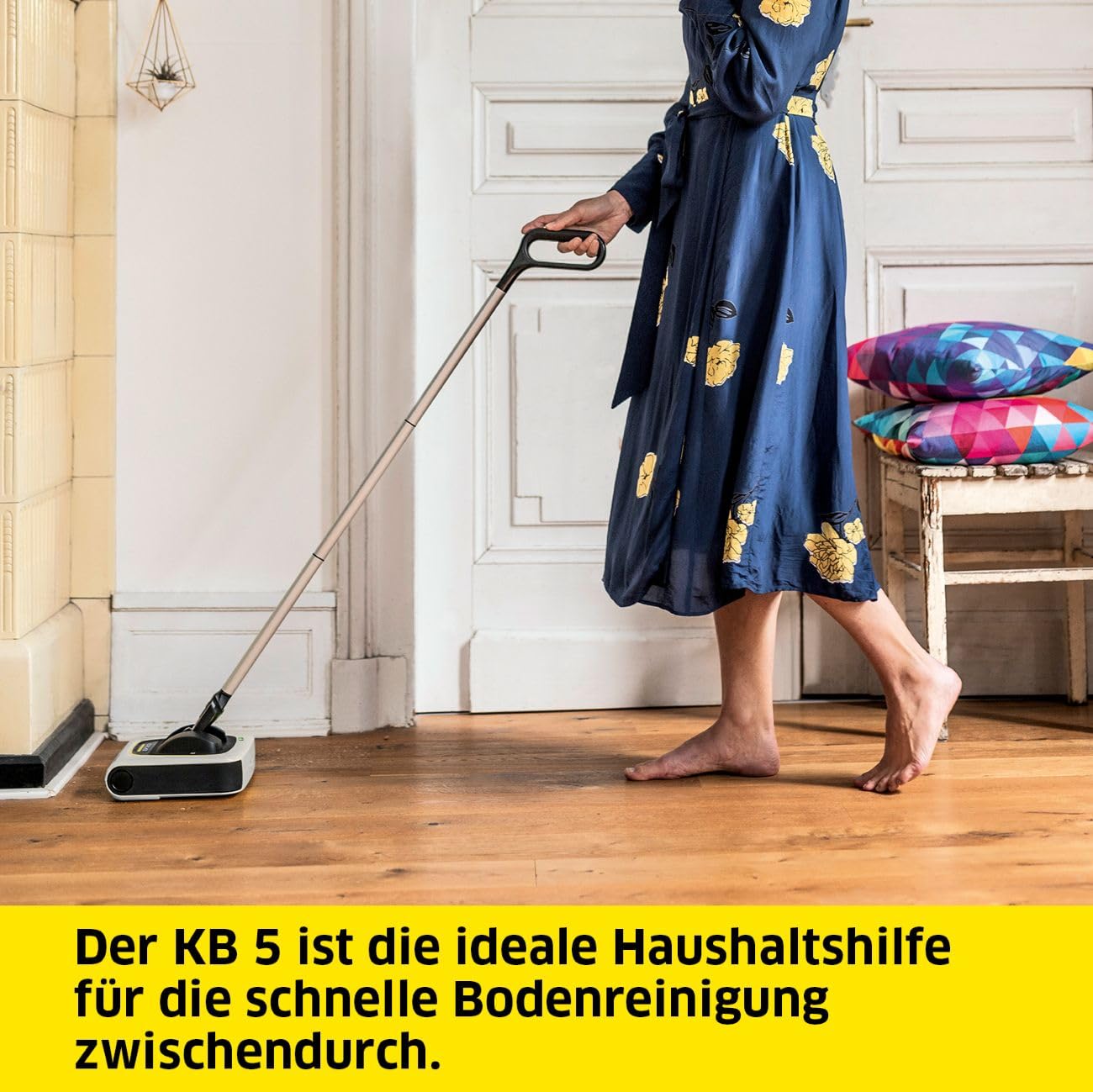 Kärcher Akku-Besen KB 5, elektrischer Besen für die schnelle Bodenreinigung, Lithium-Ionen-Akku, Akkulaufzeit: bis zu 30 min, Schmutzbehälter: 370 ml, Flexibles Doppelgelenk, intuitive Bedienung