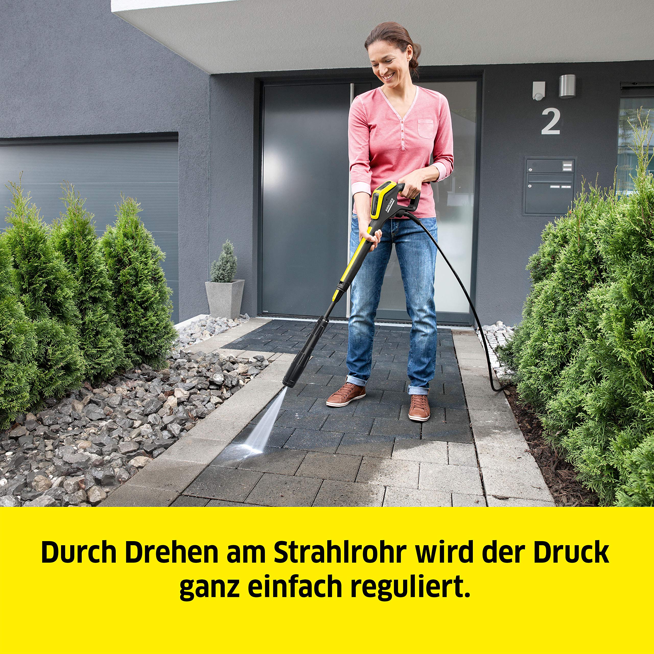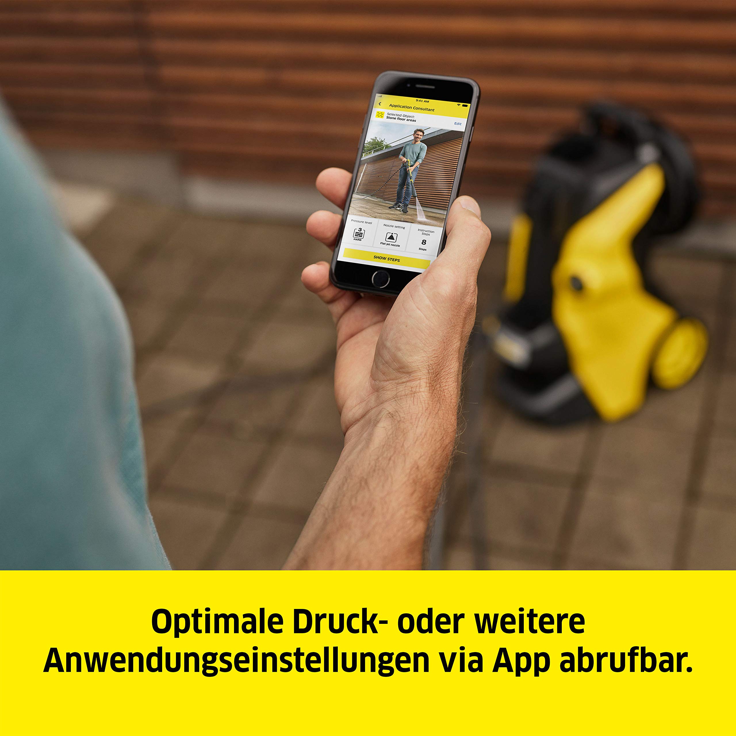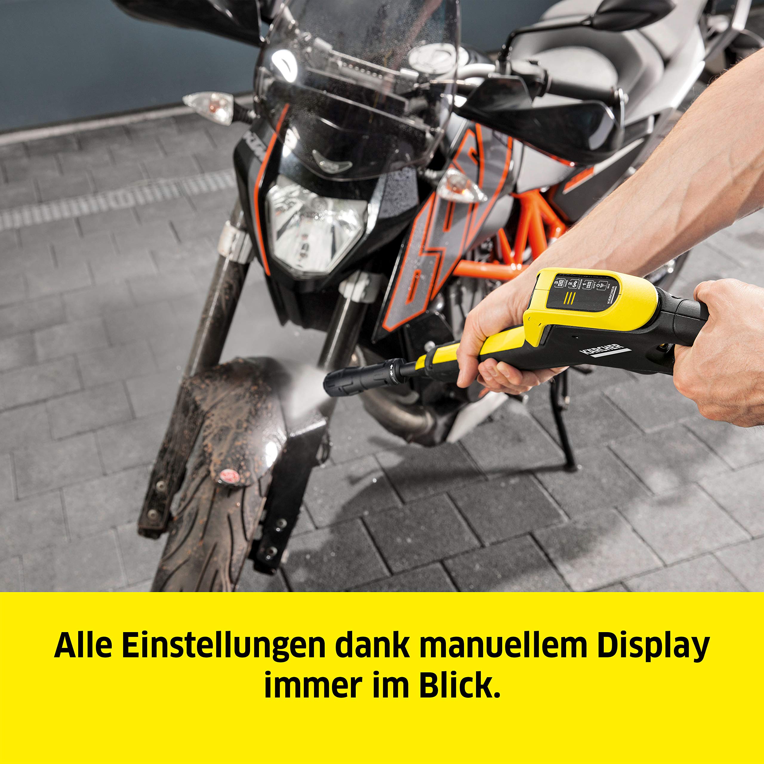 Kärcher Hochdruckreiniger K 4 Premium Power Control: Clevere App-Unterstützung - die passende Lösung für stärkere Verschmutzungen - inkl. Schlauchtrommel Mit der Home & Garden App jederzeit ein Experte sein Der in der Kärcher Home & Garden App enthaltene Anwendungsberater gibt Ihnen jederzeit praktische Tipps und Tricks zu vielen Reinigungssituationen. Wollen Sie zum Beispiel zum ersten Mal Ihr Auto reinigen? Die App verrät Ihnen im Handumdrehen den richtigen Druck, das optimalste Reinigungsmittel und beantwortet Ihnen alle Fragen rund um Ihren Hochdruckreiniger. Kärcher Expertenwissen jederzeit griffbereit! Holen Sie sich Ihr WOW zurück! Effektive und kraftvolle Reinigung von stärkeren Verschmutzungen: Das sind die Kärcher K 4 Hochdruckreiniger. Verschmutzungen an Autos, Motor- und Fahrrädern, Gartengeräten, Balkon- und Gartenmöbeln, Flächen, Zäunen und Wegen beseitigt der K4 mühelos und effizient und bringt Ihren Gegenständen und Flächen so im Handumdrehen Ihre Wertigkeit zurück. Vorteile, die den Unterschied machen Kärcher Home & Garden App: Hilfreiche Tipps und Tricks für ein optimales Reinigungsergebnis - abgestimmt auf das jeweilige Reinigungsobjekt. Geballtes Expertenwissen jederzeit abrufbar. Vario-Power-Jet: Stufenlos vom Niederdruck-Reinigungsmittelstrahl zum Hochdruckstrahl. Regulieren des Drucks durch einfaches Drehen am Strahlrohr. Plug n Clean Reinigungssystem: Schneller und sauberer Wechsel des Reinigungsmittels. Quick Connect System: Zeitsparendes Ein- und Ausklicken des Hochdruckschlauchs in das Gerät.