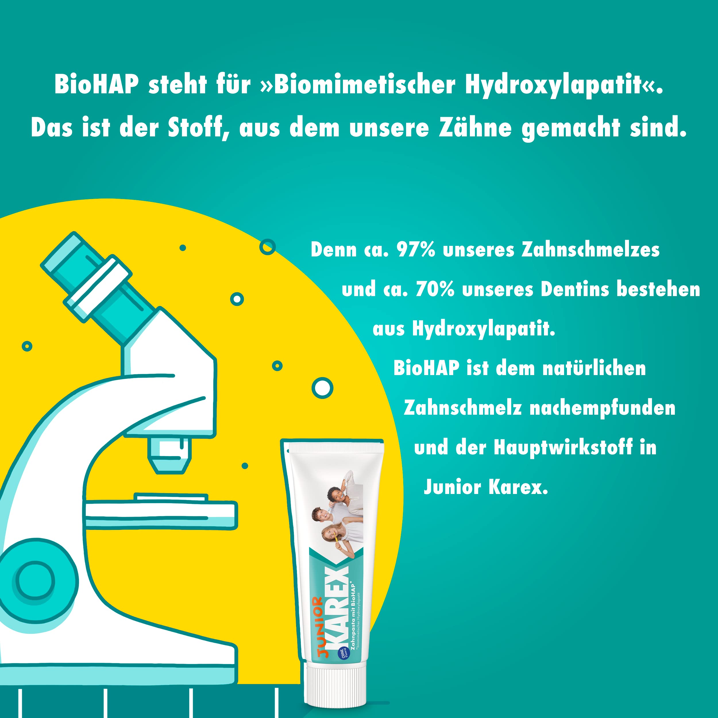 Umfassender Schutz vor Karies: Bei Säureangriffen setzt BioHAP Calcium frei, welches den Zahn remineralisiert und vor Karies schützt. Die Rezeptur ist speziell für die Bedürfnisse älterer Kinder und Jugendlicher entwickelt, um den besonderen Anforderungen ihres Wechselgebisses gerecht zu werden.