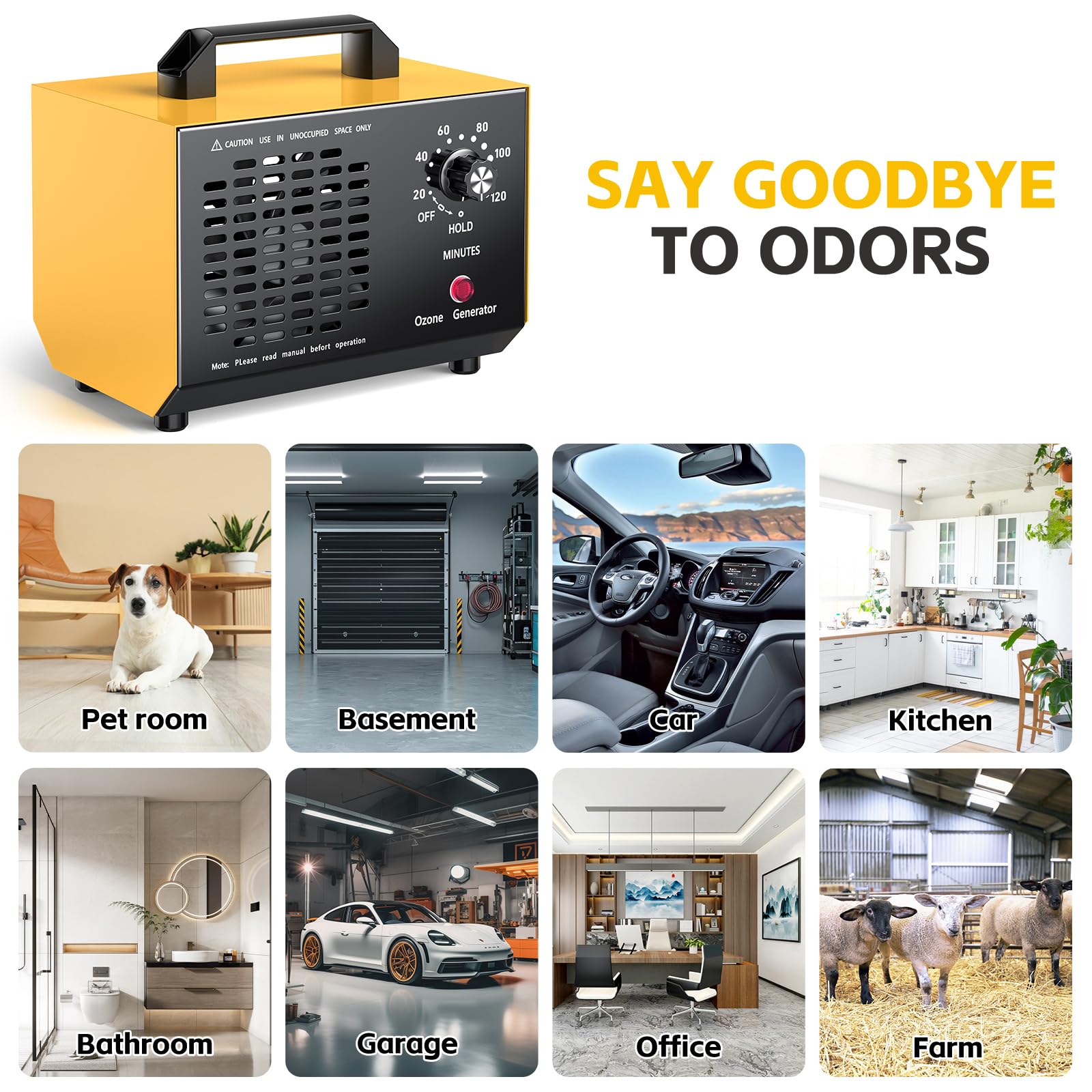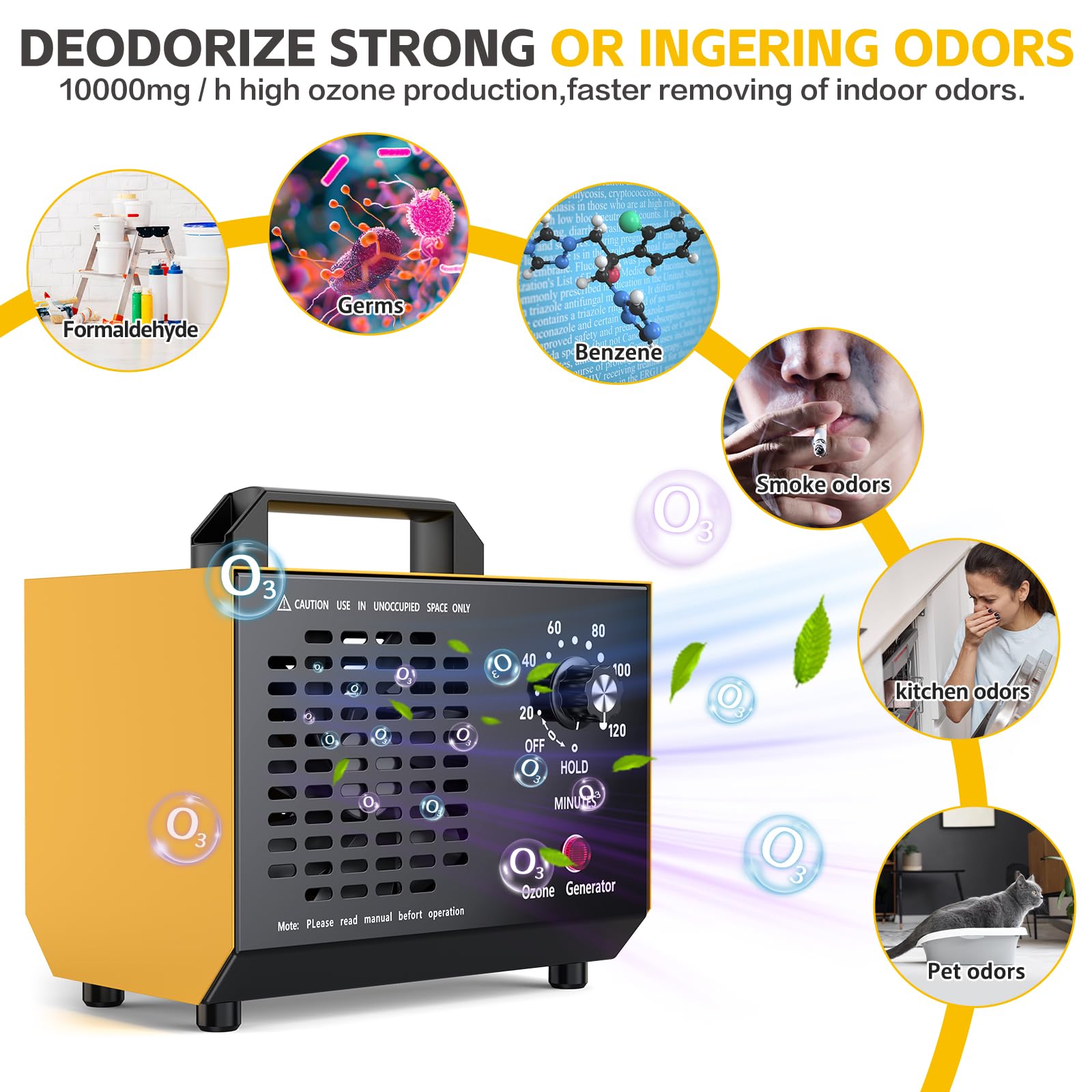 • ????【40000mg/Std Leistungsstarke Ozonerzeugung】????Der verbesserte Ozon-Luftreiniger kann jede Stunde 40000 mg Ozon produzieren, der Reinigungsbereich beträgt bis zu 300㎡. Es erzeugt sofort massives Ozon, entfernt schnell Gerüche wie Rauchgeruch, Haustiergeruch, Kellergeruch, Schimmel, Gerüche vom Vormieter und andere VOCs wie Formaldehyd, hilft bei der Entfernung und Verzögerung des Schimmelwachstums,reduziert Allergene und schafft eine angenehmere Umgebung mit sauberer Luft.