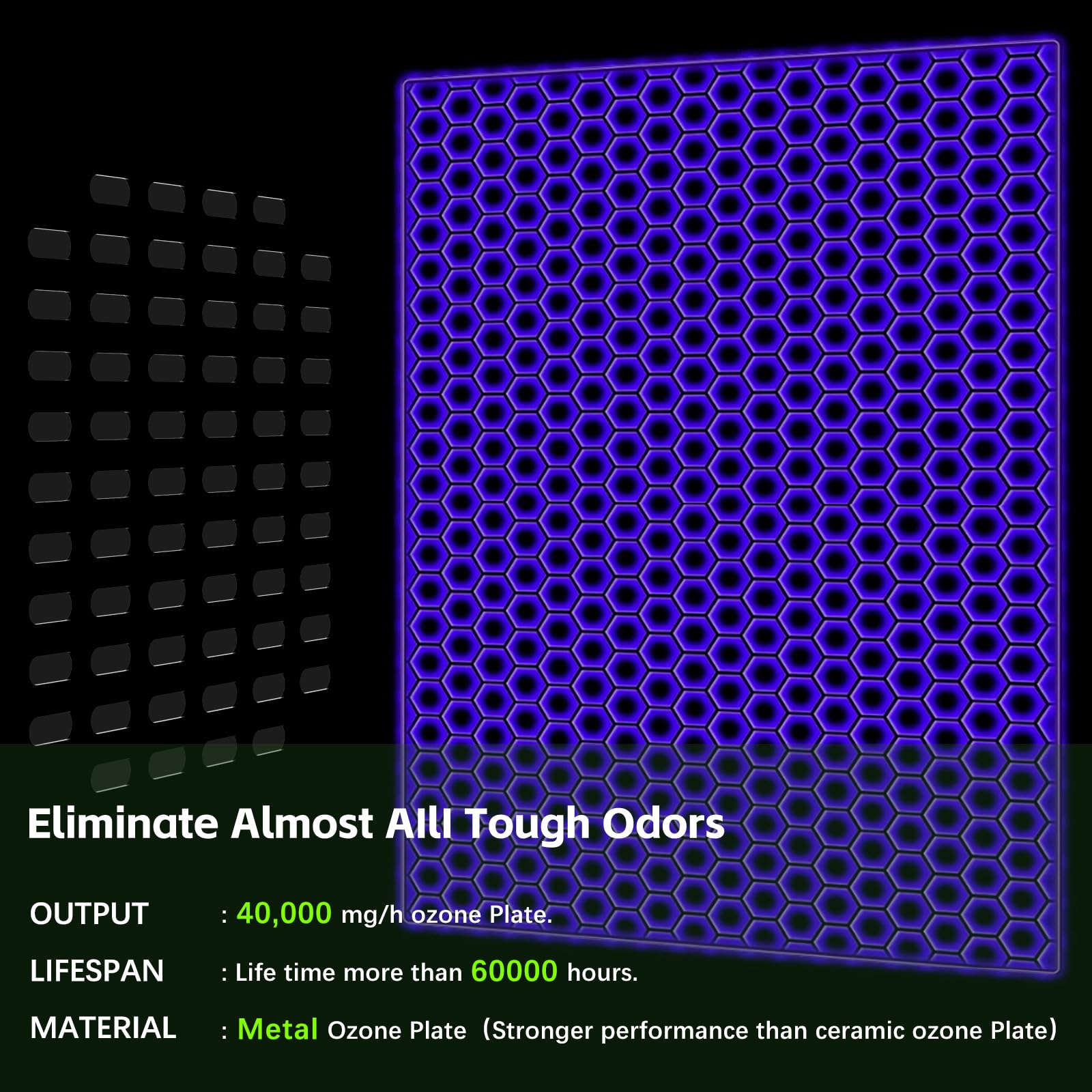 • ????【110W Ozongerät mit Haltbarere Metall-Ozonplatte】????Die Ozonplatte aus Metall verbraucht weniger Energie und ist energieeffizienter als die keramische Ozonplatte. Ausserdem ist sie widerstandsfähiger gegen feuchte Umgebungen, was zu einer längeren Lebensdauer und einer höheren Reinigungsleistung führt. Die hohe Leistung von 110 W macht den Geruchsneutralisierer effizienter in der Ozonerzeugung und reinigt die Luft schneller und effektiver.
