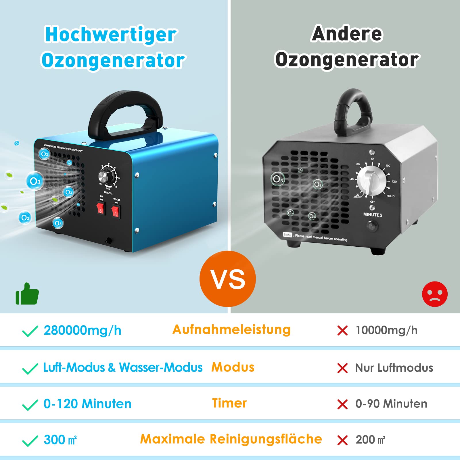 Ozonleistung: 28000mg/h、500mg/h