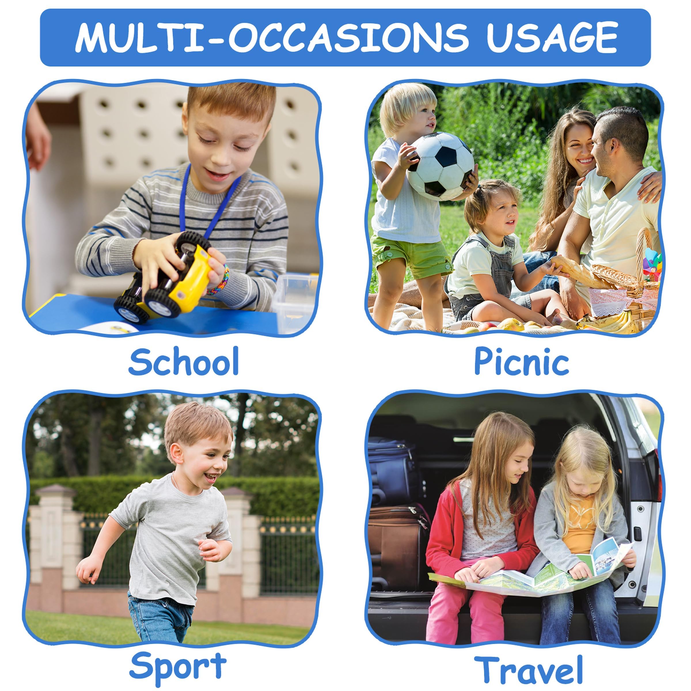 Das grosse Fach bietet Platz für Bücher, kleine Ordner, Snacks, Mahlzeiten, Spielzeug, Kleidung oder Schulartikel.