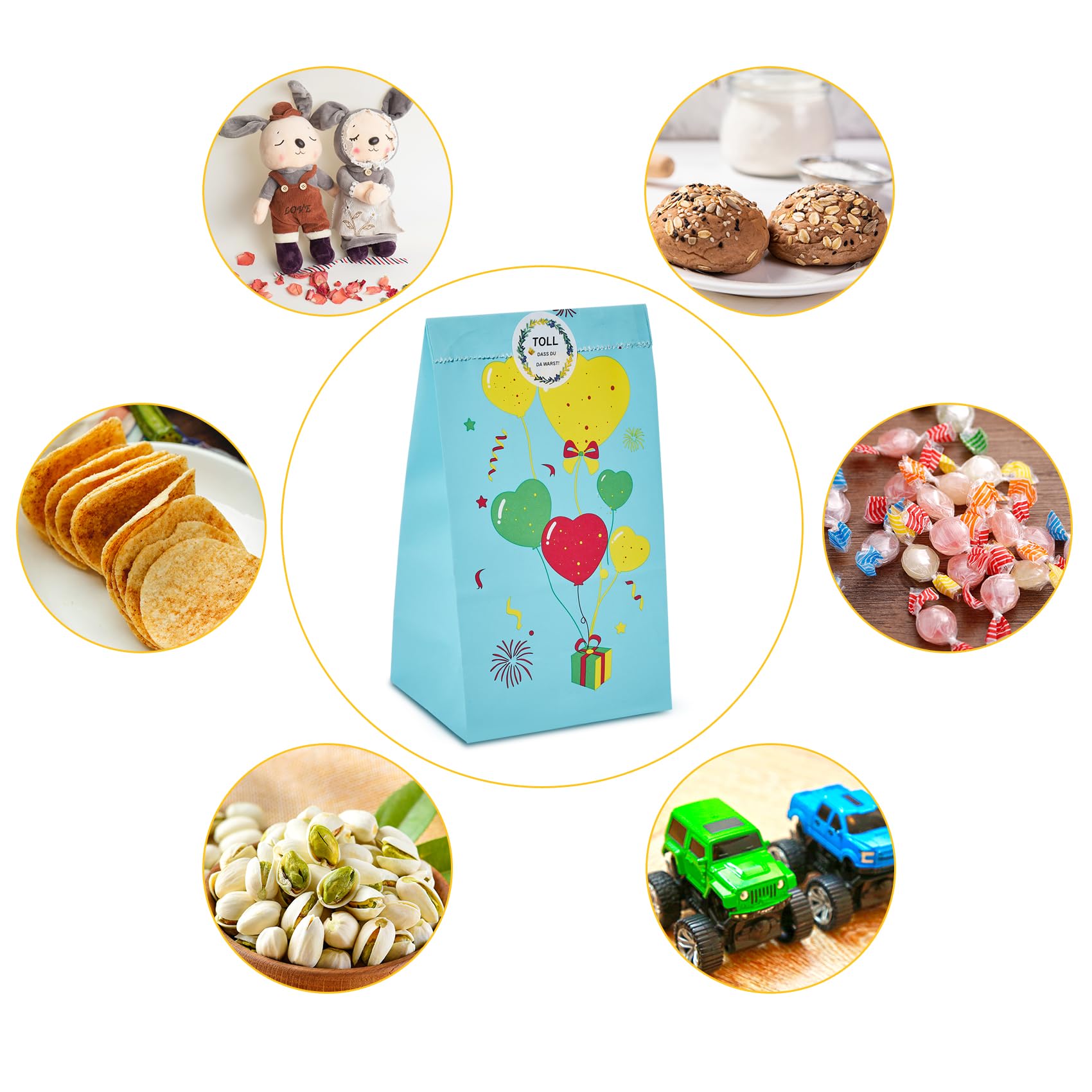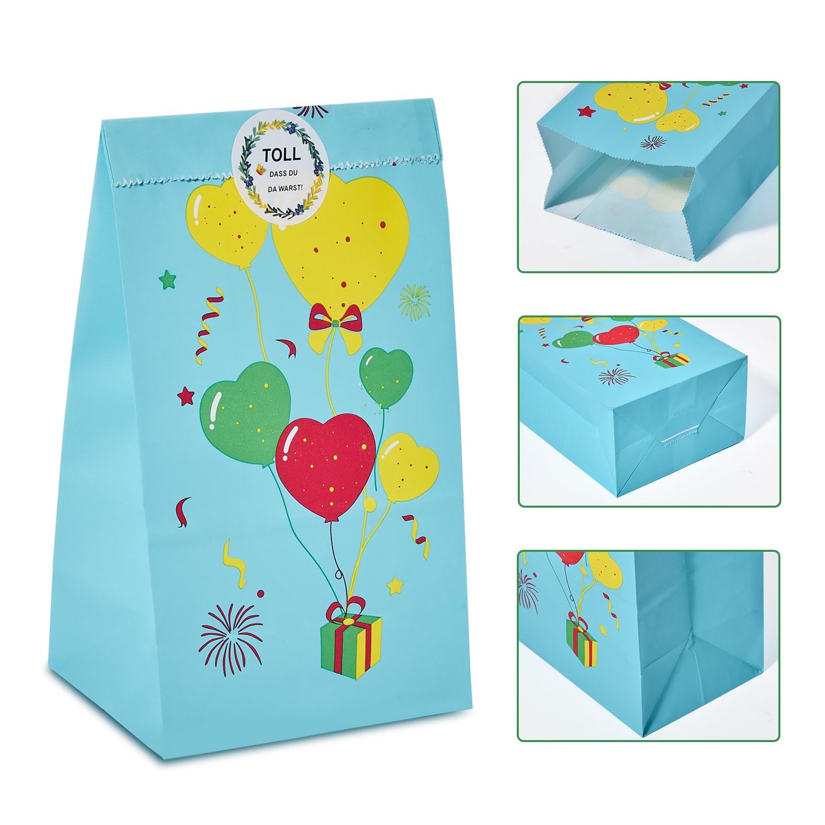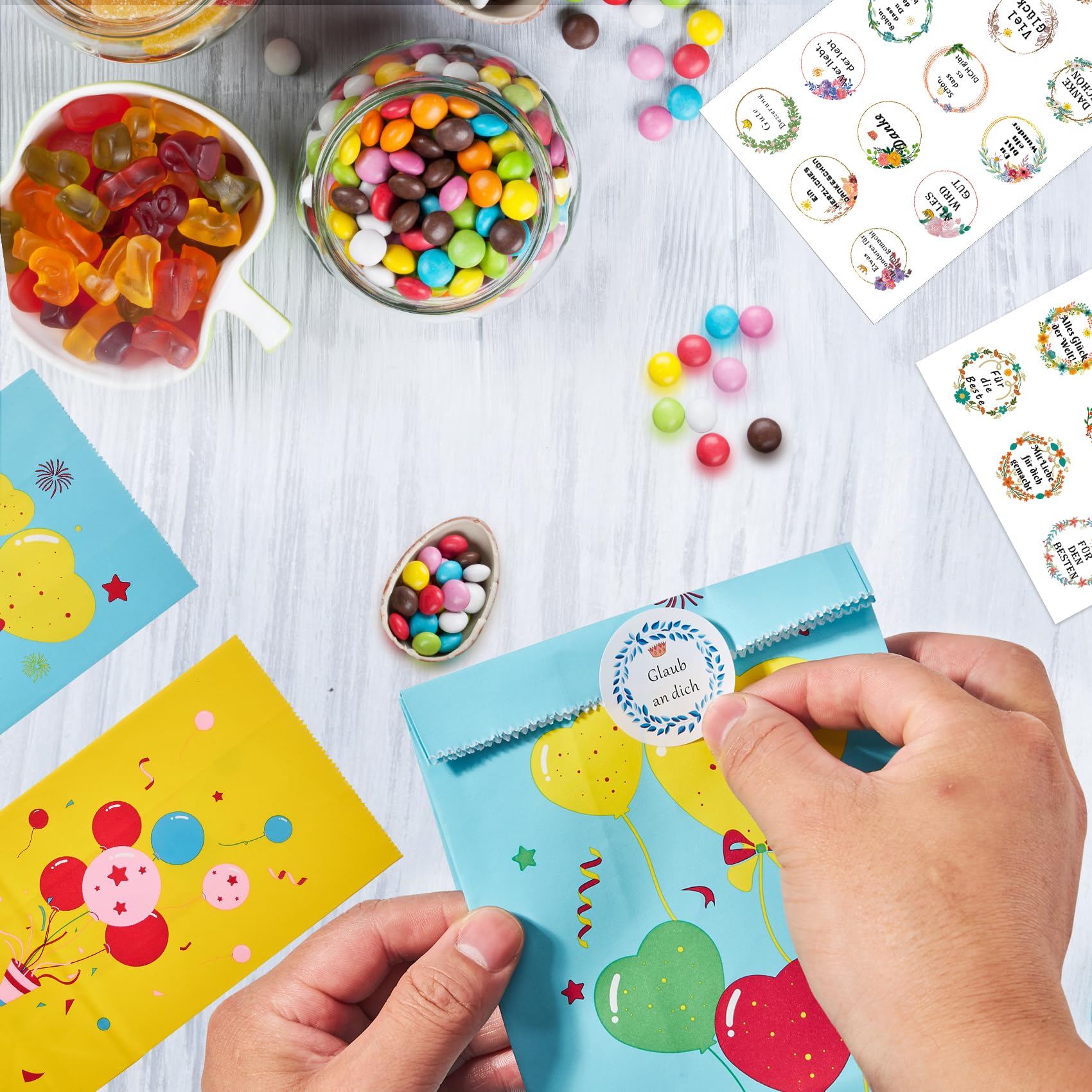 KASZOO 40 Stück Papiertüten, Bunte Geschenktüiten Candy Tüten mit 90 Aufkleber (Auf Deutsch) zum Verpacken von Geschenken, Giveaways, Kindergeburtstag, Hochzeit, Party,usw