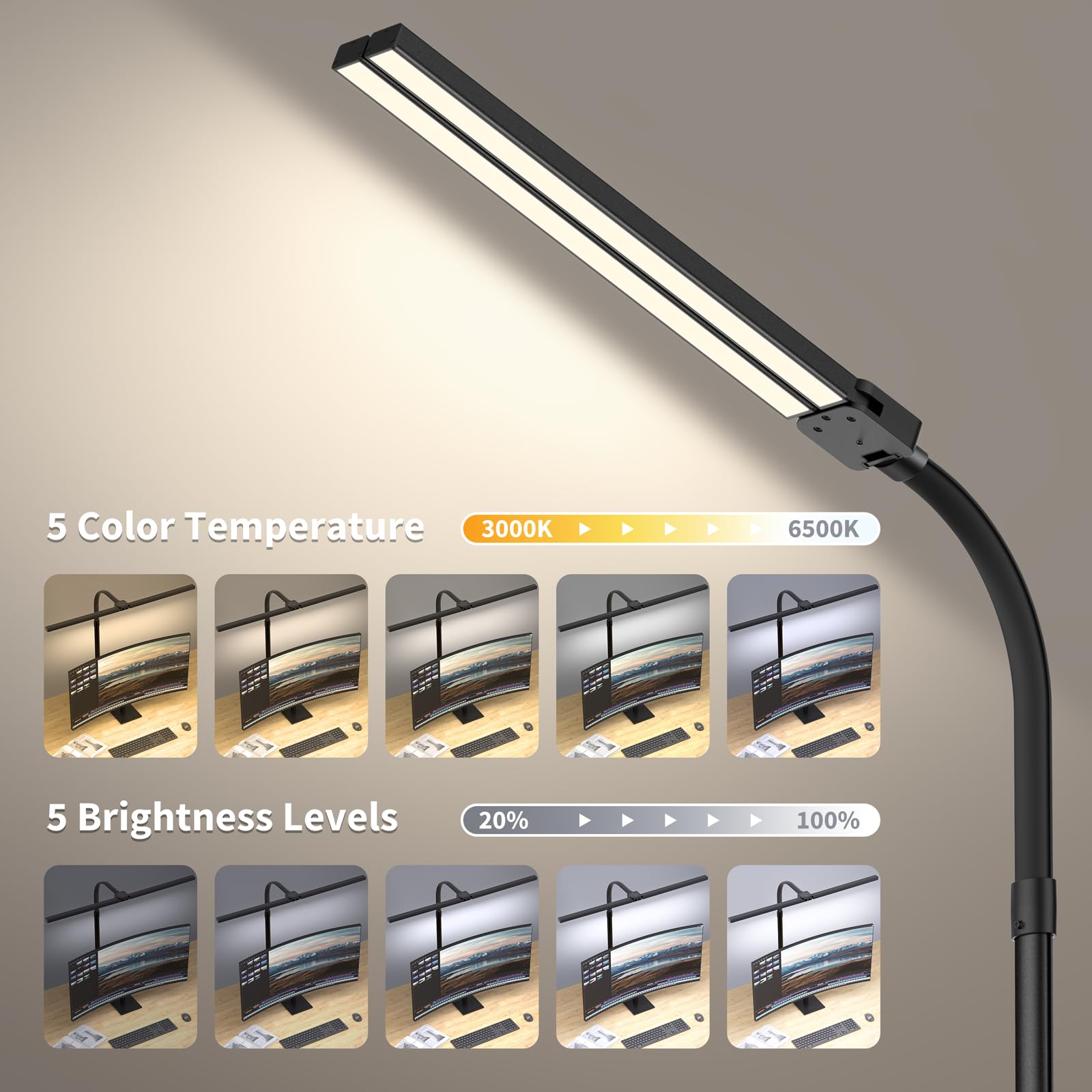 Kaulsoue Doppelkopf Schreibtischlampe LED dimmbar, Schreibtischlampen mit Fuss, 24W 80cm Tageslichtlampe, Augenpflege 5 Farbtemperaturen 5 Helligkeit, für Arbeit,Haus,Büro,Schlafsaal, Studie,Lesen