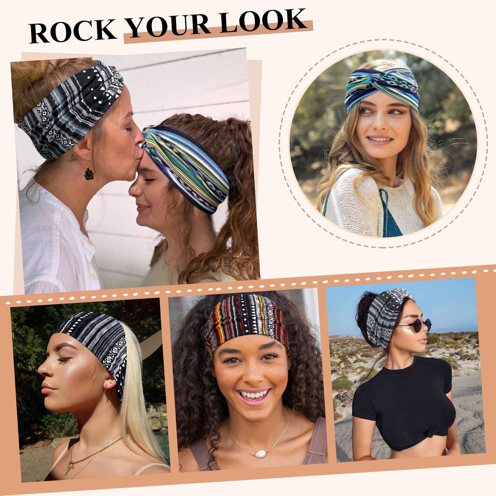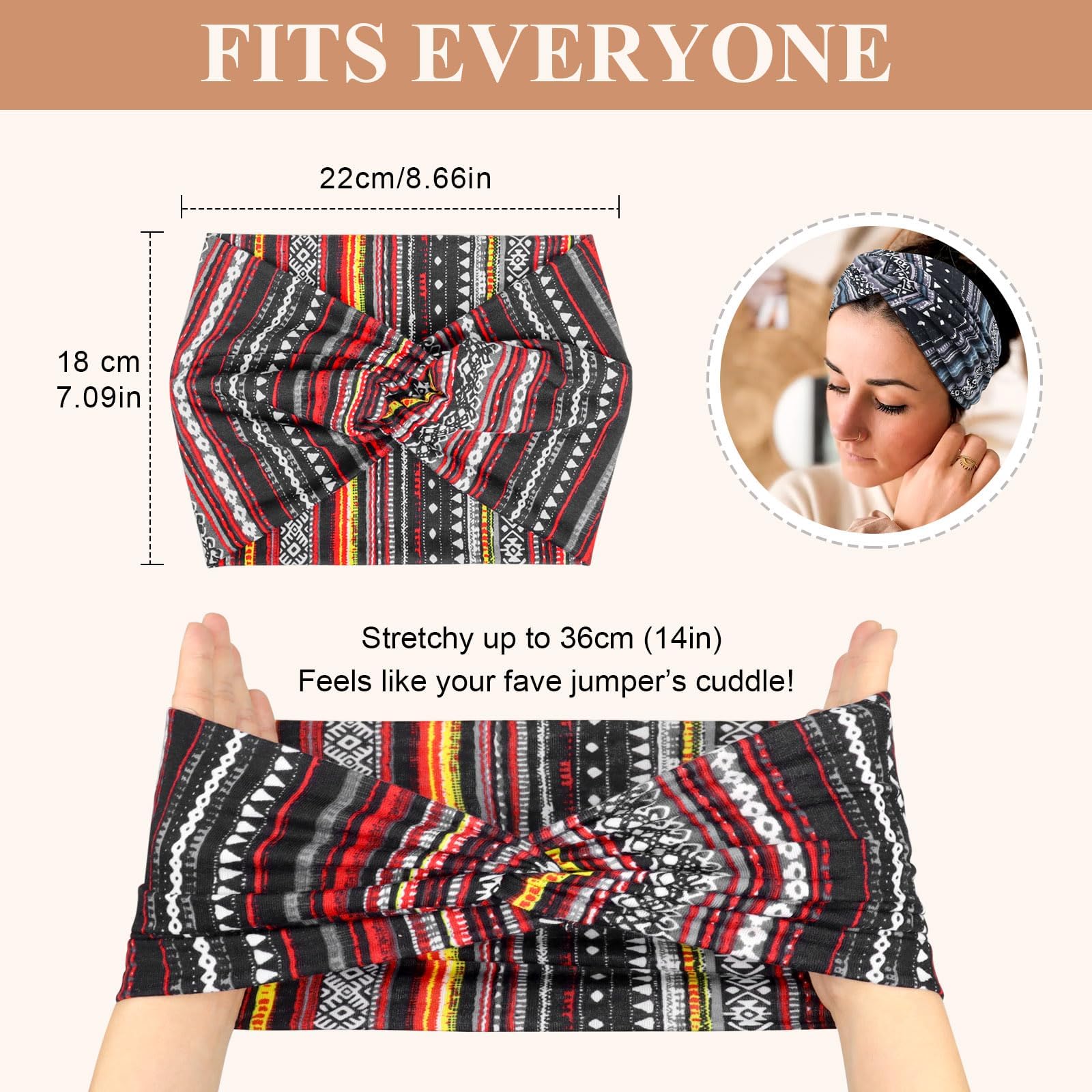 Kavya Haarband Damen Stirnband Damen 4er Pack – 7'' Extra Breit Haarbänder Dünn, Elastische Kopftuch Weiche Boho Mehrfarbig Headband, für Yoga, Kosmetik, Sport & Haarschmuck Sommer