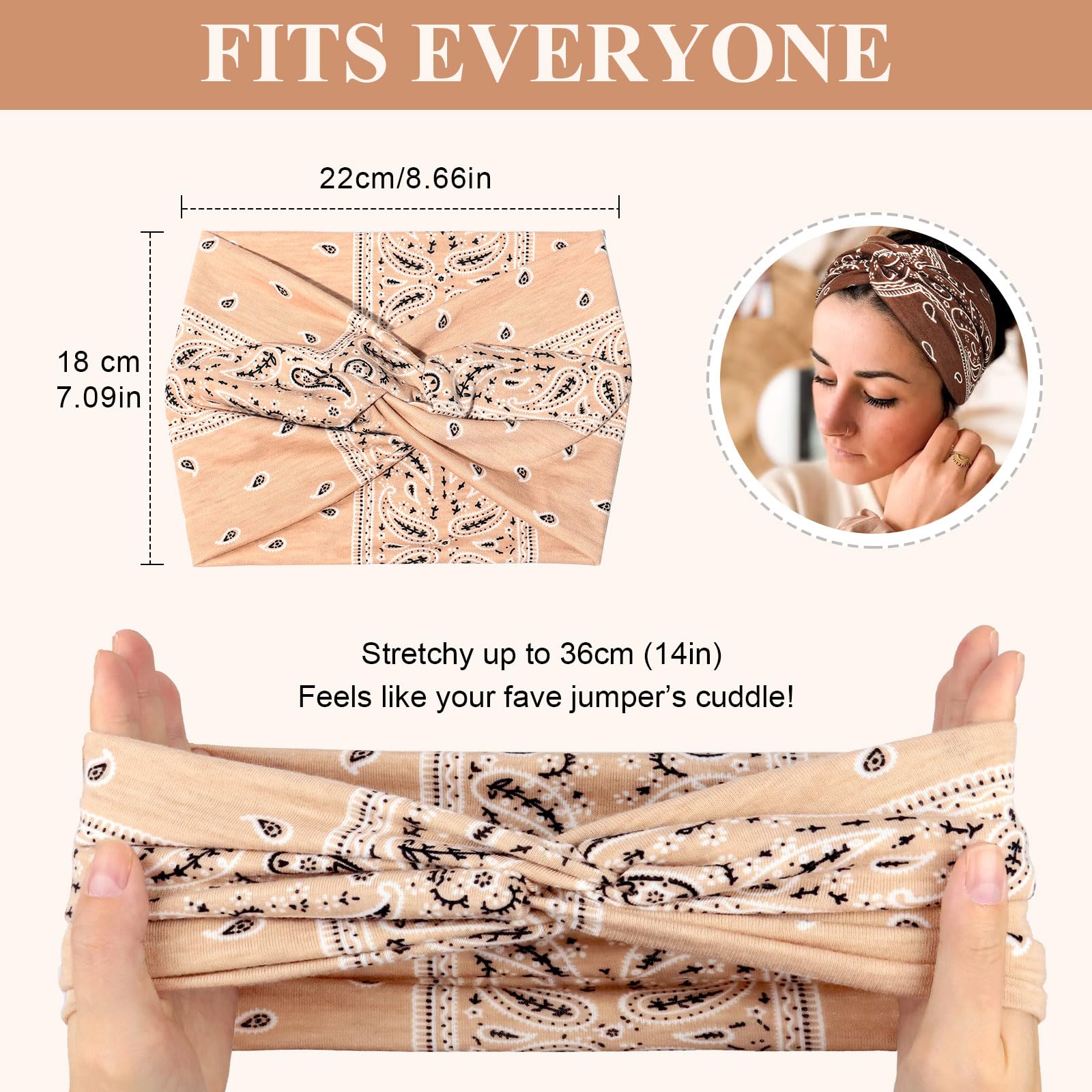 • Perfekte Passform: Dehnbares Stirnband für Damen mit 18 cm Breite; Passt sich dem Kopfumfang der meisten Menschen an und rutscht nicht so leicht ab