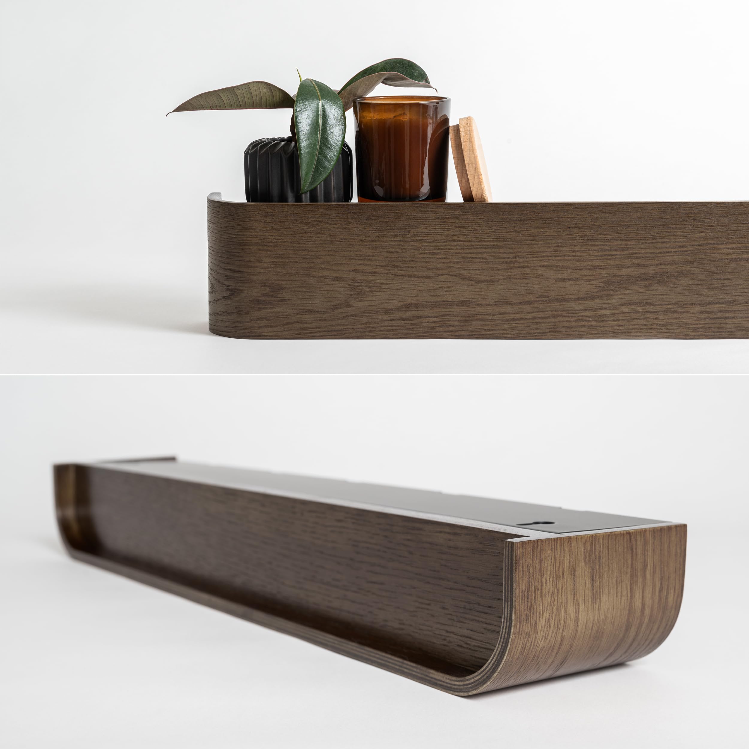 Kazai. Wandgarderobe 'Toke' | Moderne Design-Garderobe mit verdeckten Wandhaken | Garderobenpaneel aus Massivem Echtholz-Furnier | Eiche, dunkel