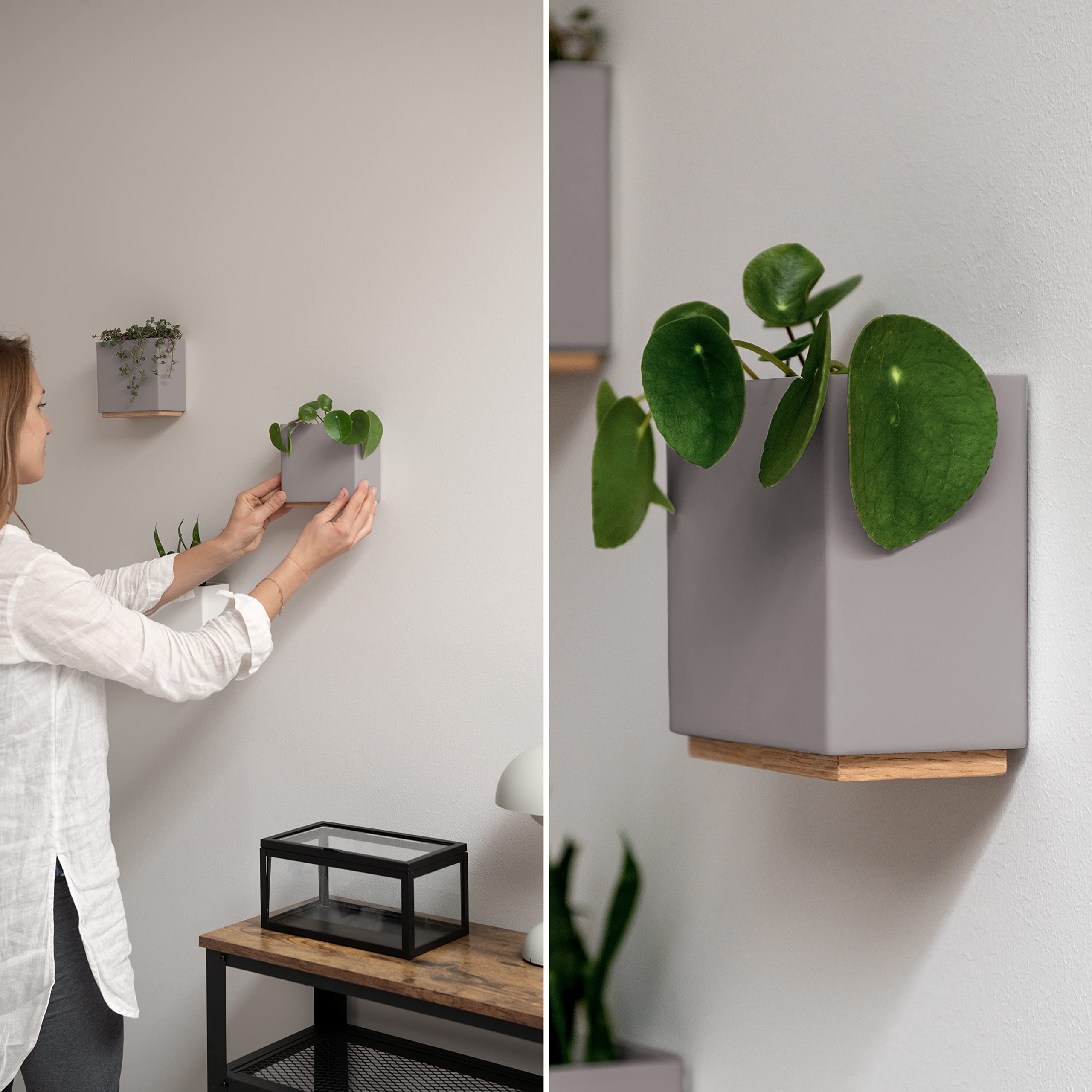 Kazai. Wandvasen -Alma- | Moderne Hängende Blumentöpfe für die Wand | 3-teiliges Übertopf-Set aus hochwertigem Resin für Zimmerpflanzen, Kunstpflanzen, Blumen u.m. | Taupe