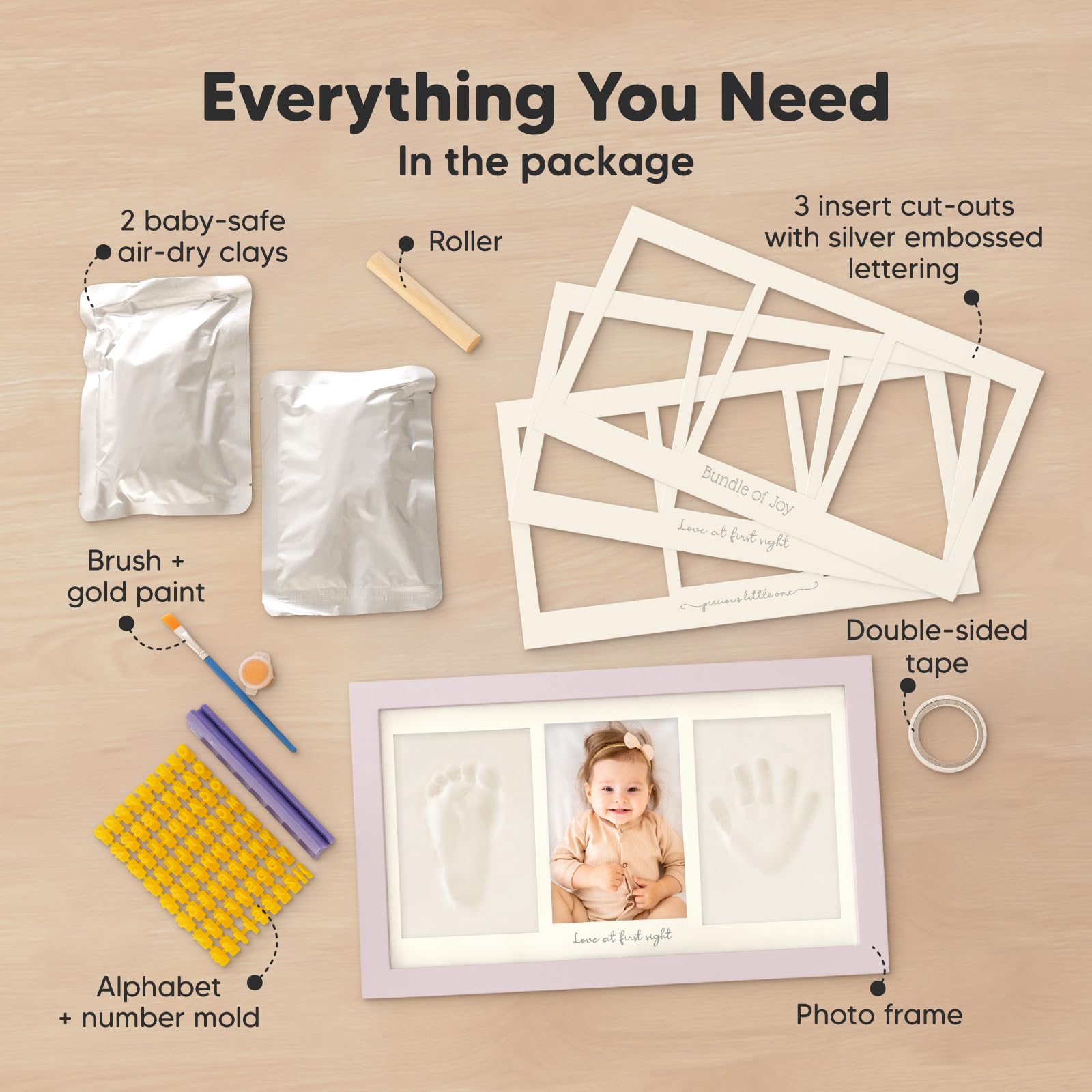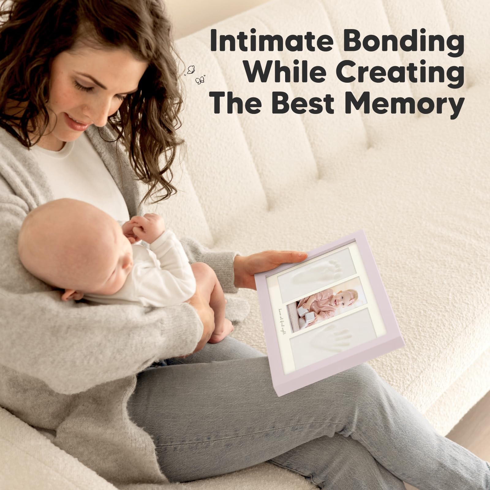 KeaBabies Baby Handabdruck Und Fussabdruck Set - Ton Handabdruck Andenken Rahmen, Neugeborenen Kinderzimmer Bilderrahmen fur Mädchen und Junge, Personalisierte Geschenke Baby fur Neue Mom (Soft Lilac)