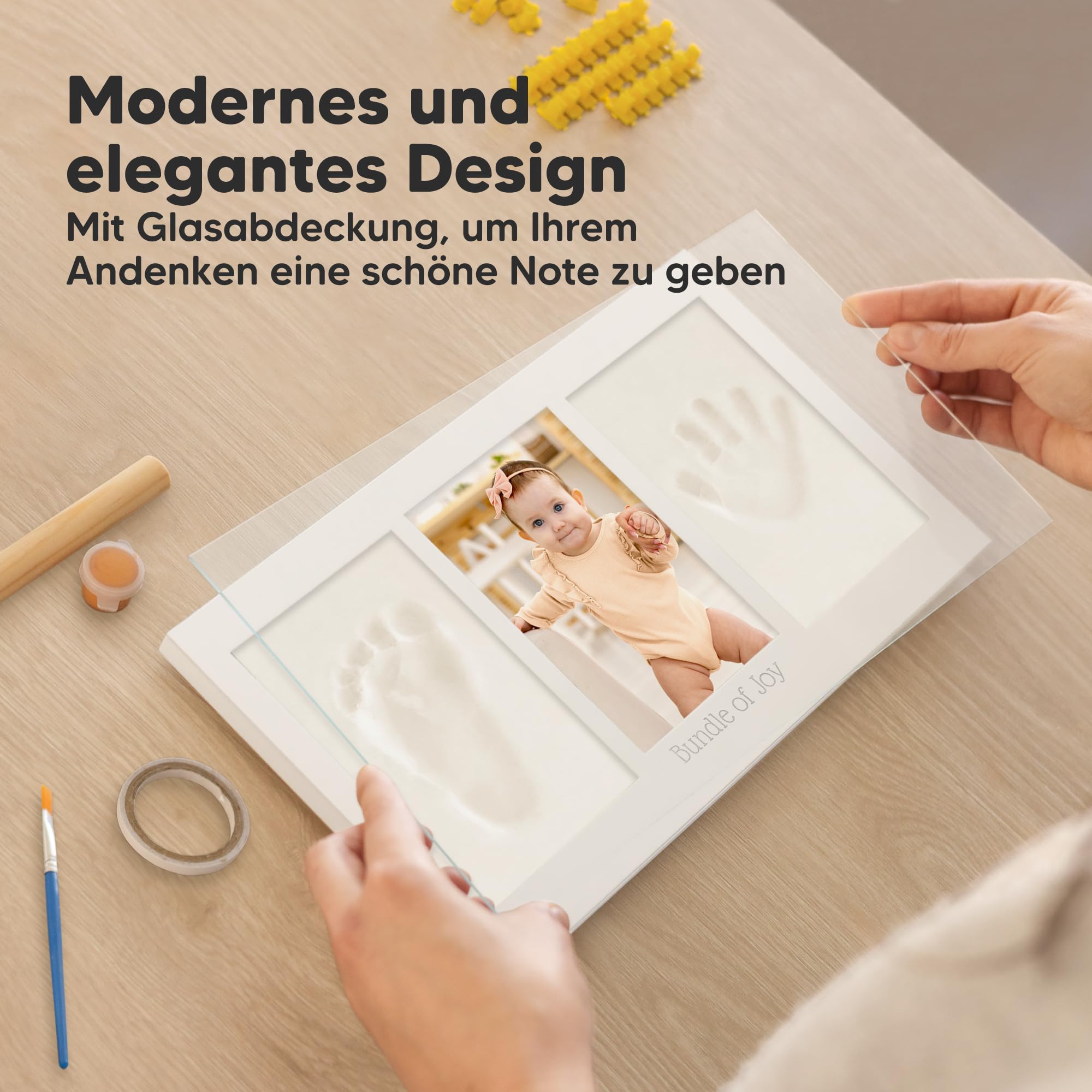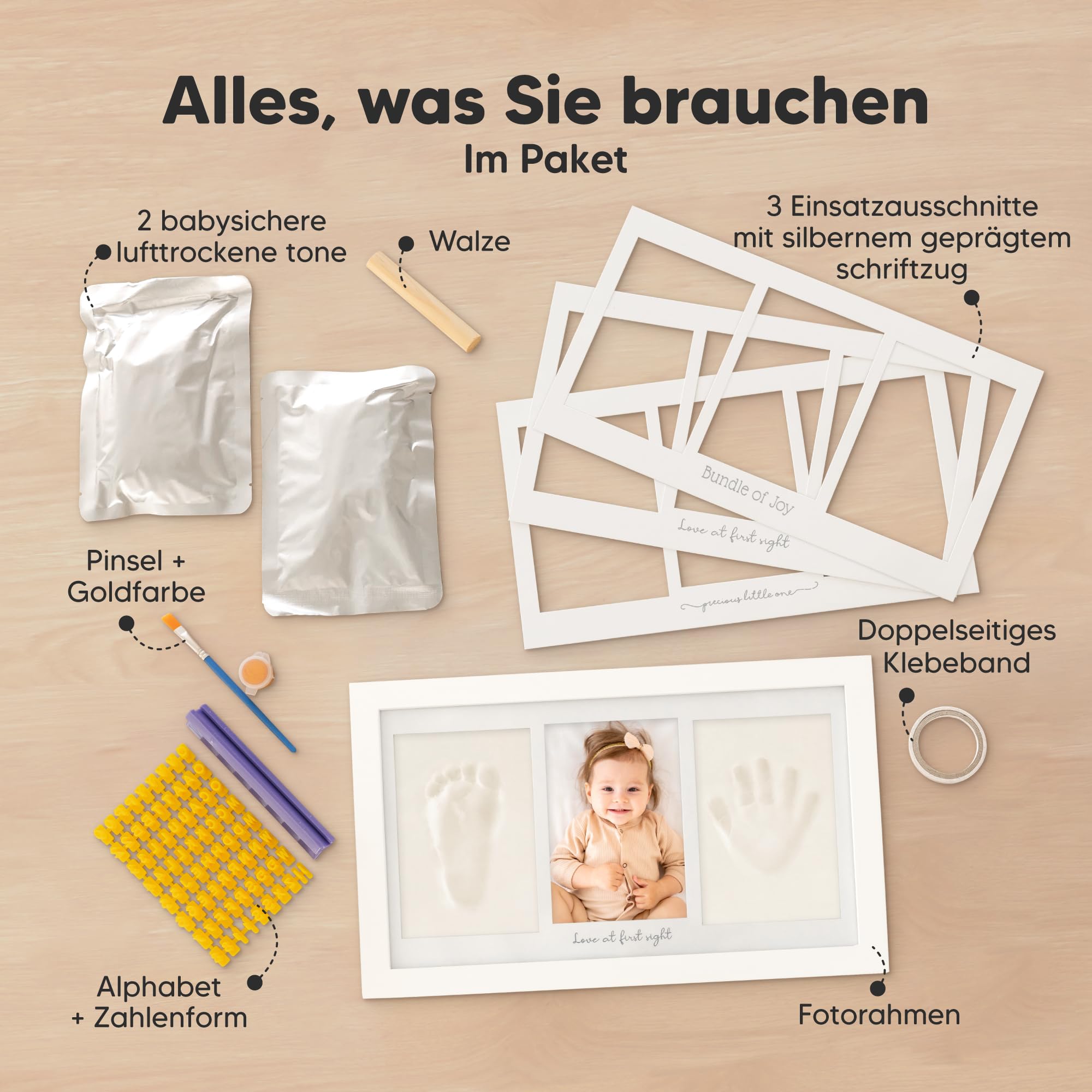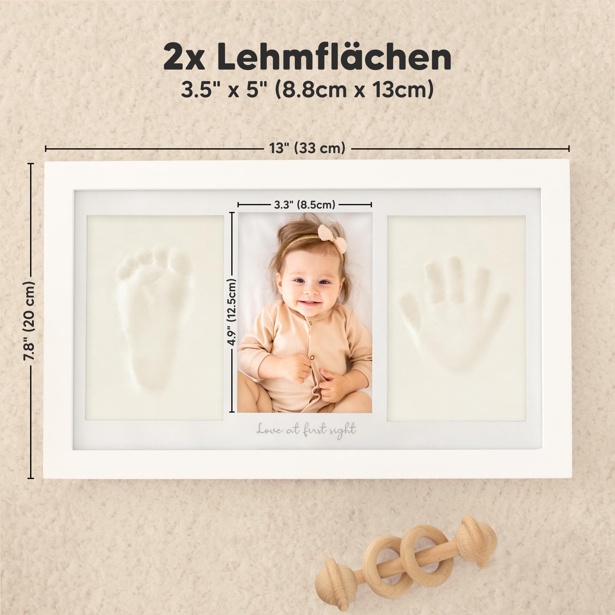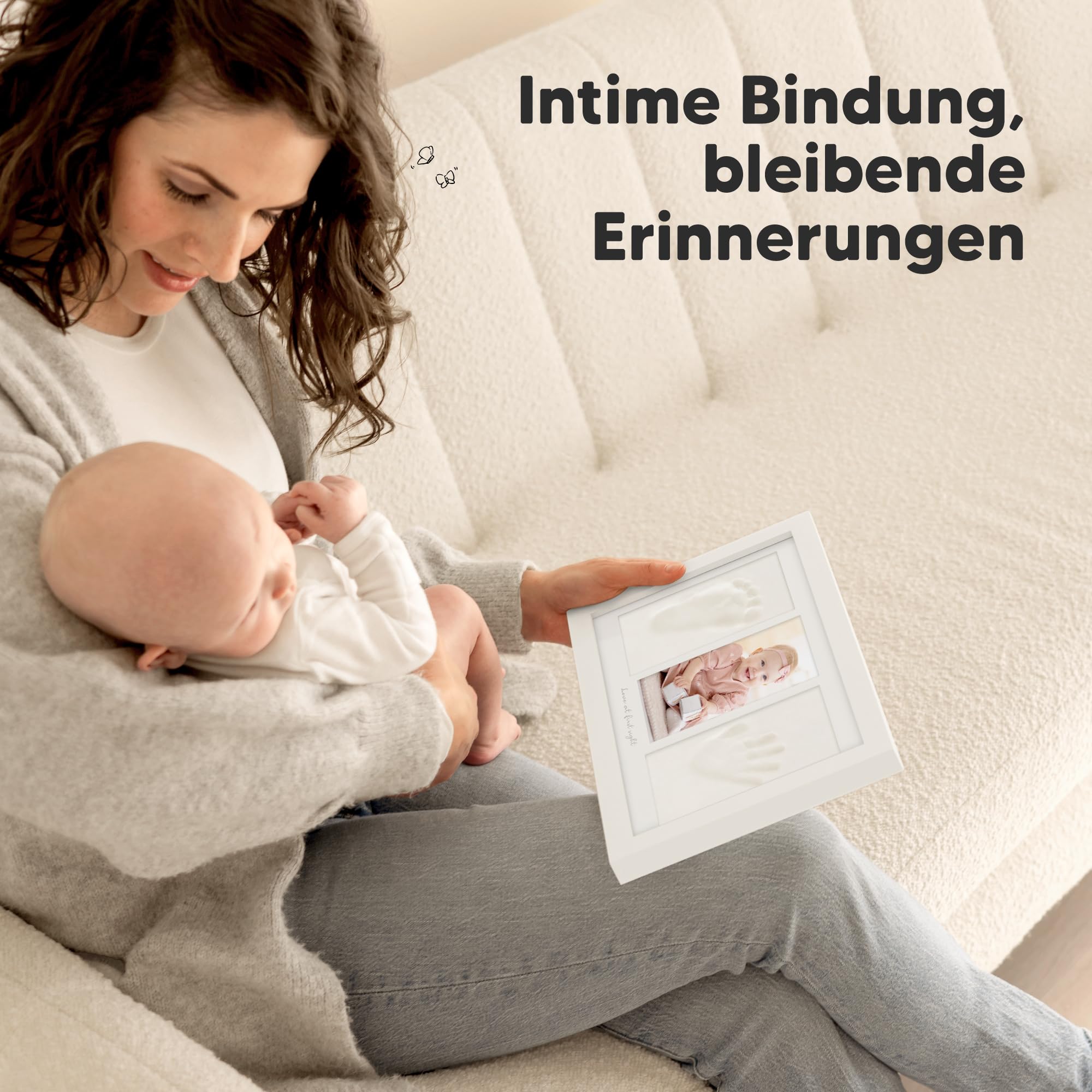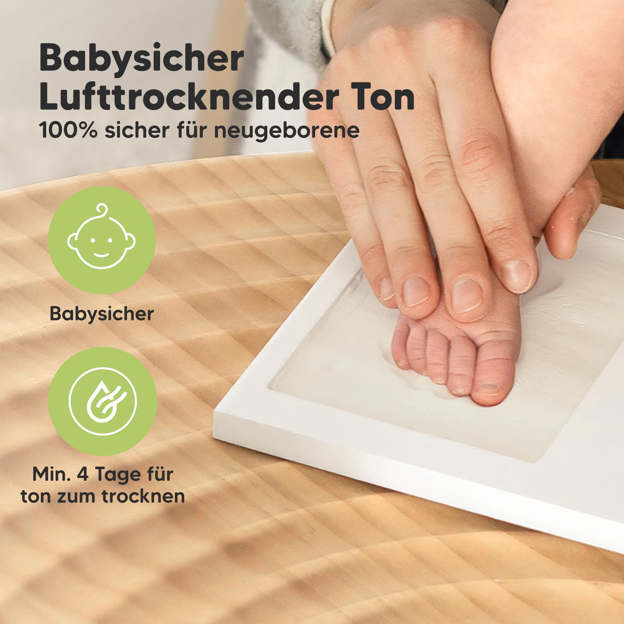 Keababies Baby Handabdruck Und Fussabdruck Set - Ton Handabdruck Andenken Rahmen, Neugeborenen Kinderzimmer Bilderrahmen fur Mädchen und Junge, Personalisierte Geschenke Baby fur Neue Mom(Alpine White)