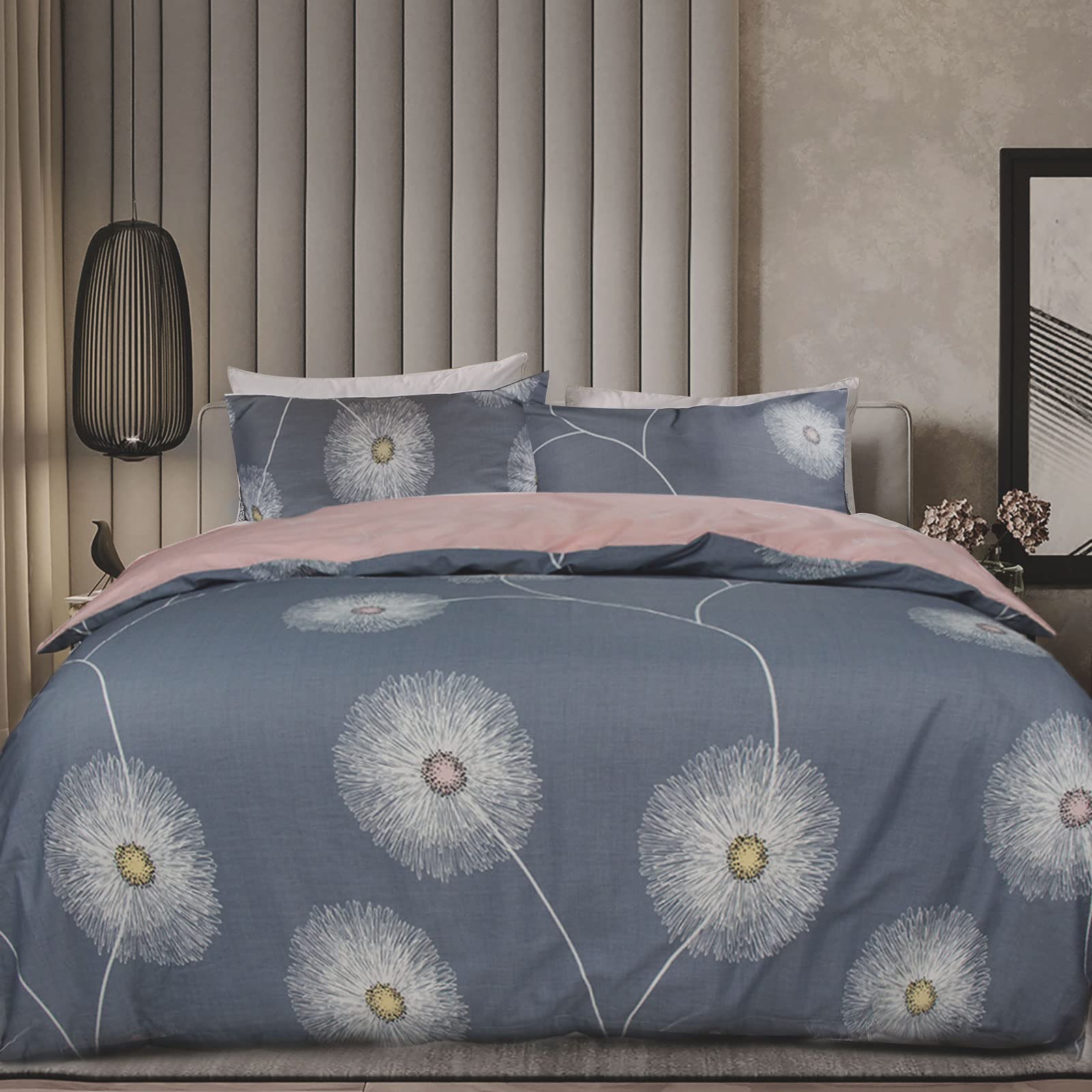 Dekorative Wendebettwäsche - Grau + Rosa Wendebettwäsche, Löwenzahn Muster Design, verleihen Ihrem Schlafzimmer eine exklusive Note mit klassischer Eleganz.