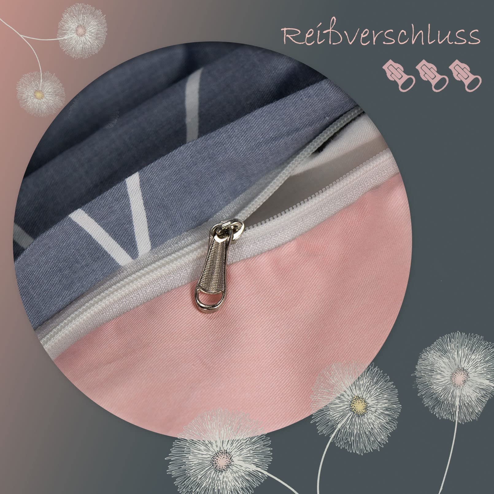 KEAYOO Bettwäsche 155x220 Baumwolle Grau Rosa Blumen Muster Wendebettwäsche mit Reisverschluss Weiche Stoffqualität für Sommer und Winter 155x220cm + 80x80cm