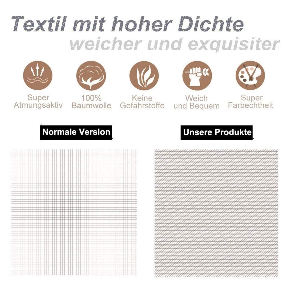 Wir verwenden aktive Druck-und Färbetechnik, die Farbe verblasst nicht. Vor dem Gebrauch, empfehlen wir Ihnen diese Bettwäsche zuerst zu waschen. Nach dem Waschen werden die Bettwäsche weicher und komfortabler.