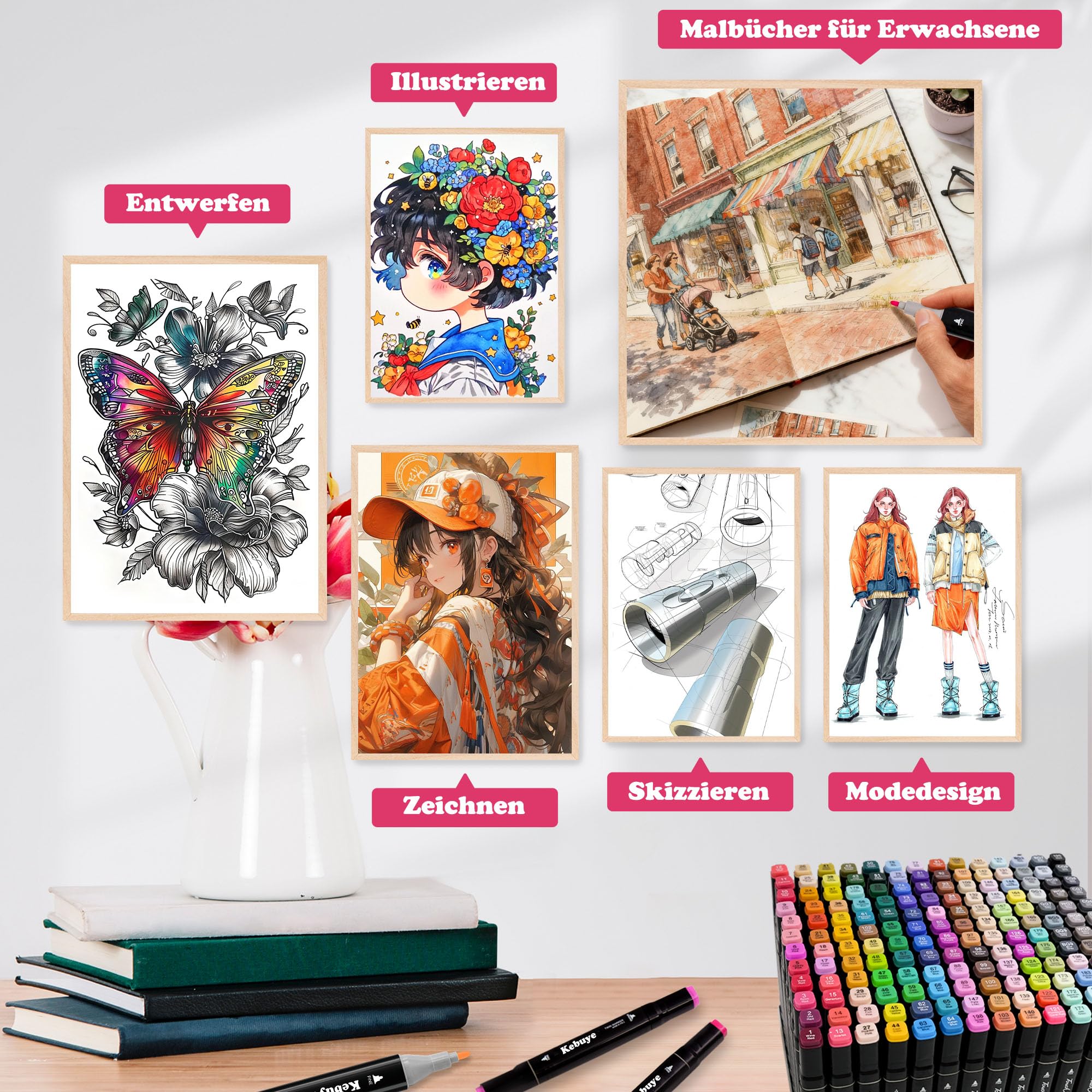 Professionelle Alkoholmarker von Kebuye – Lebendige Kunst entsteht mit Ihnen!Entdecken Sie unser 168-teiliges Alkohol Marker Filzstifte Set – das vielseitige Werkzeug für atemberaubende Kunstwerke!Innovative TwinMarker-Doppelspitzentechnik: Eine feine Spitze für präzise Linien und Details sowie eine breite Spitze für grossflächiges Colouring und sanfte Verläufe. Perfekt für Design, Zeichnen, Skizzen und kreative Projekte.Hochwertige Qualität: Diese Art Markers enthalten alkoholbasierte Tinte, die schnell trocknet, geruchsarm und nicht toxisch ist. Sie ist permanent, lichtbeständig und blendfähig – ideal für lebendige Kunstwerke von Künstlern, Erwachsenen, Kindern, Einsteigern und professionell Arbeitenden.Einfache Organisation & Transport: Die farbcodierten Kappen mit Farbnamen erleichtern die Auswahl. Das Set inklusive robustem Trageetui ist ideal für Reisen und Aufbewahrung.Vielfältige Anwendungen: Mit 168 satten Farben sind diese Marker Coloring Pens perfekt für Manga, Anime, Graffiti, Architektur-Visualisierungen, Mode-Skizzen, Coloring-Bücher, Schattierungen, Lettering und mehr. Ob für Graffiti Stifte-Enthusiasten oder professionelle Illustratoren – dieses Set inspiriert! Ideal für Kreative jeden Alters – entfesseln Sie Ihre Fantasie mit Kebuye!