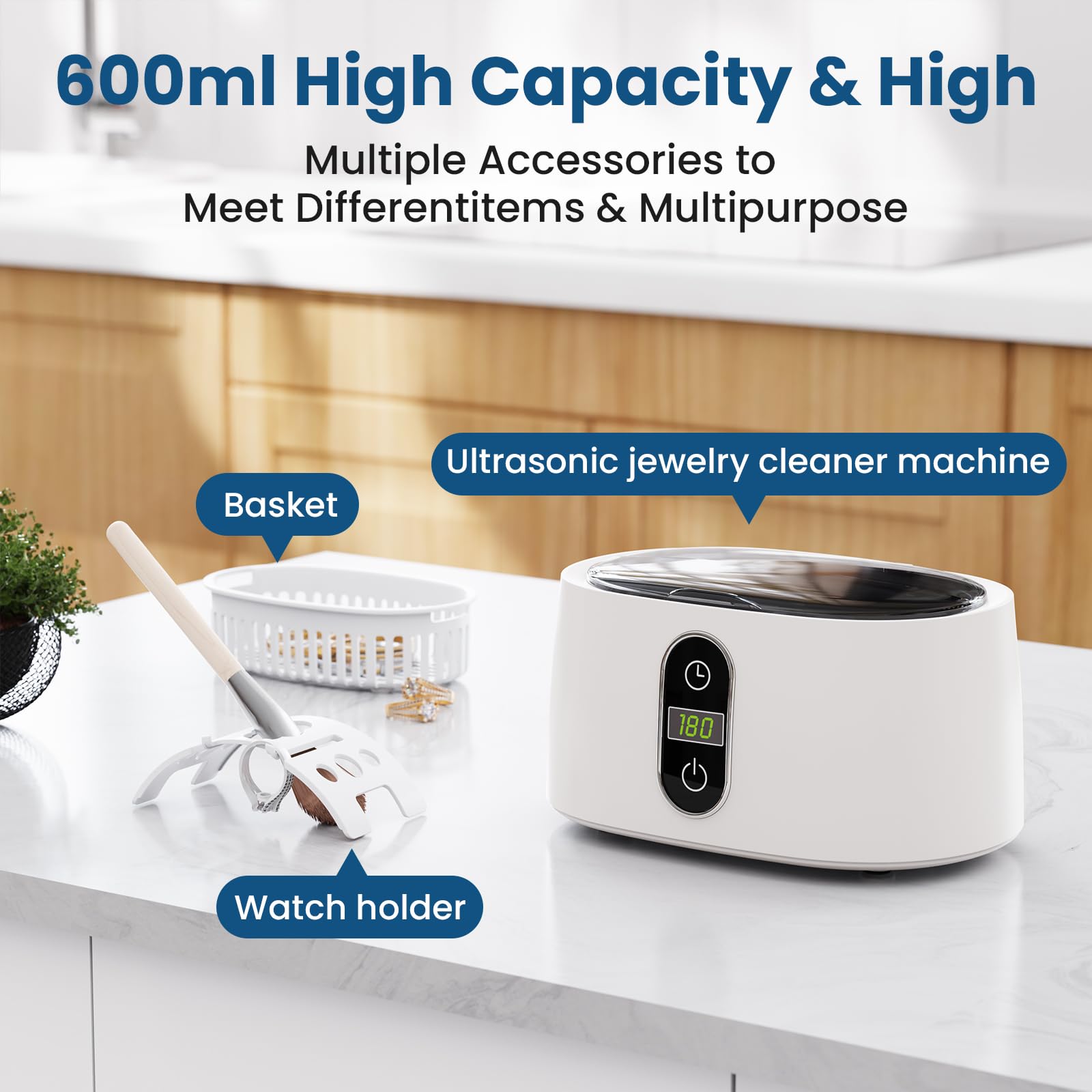 KECOOLKE Ultraschallreiniger 600 ml – Ultraschallgeraet mit digitalem Timer fuer Brillen, Ringe, Muenzen & Silber