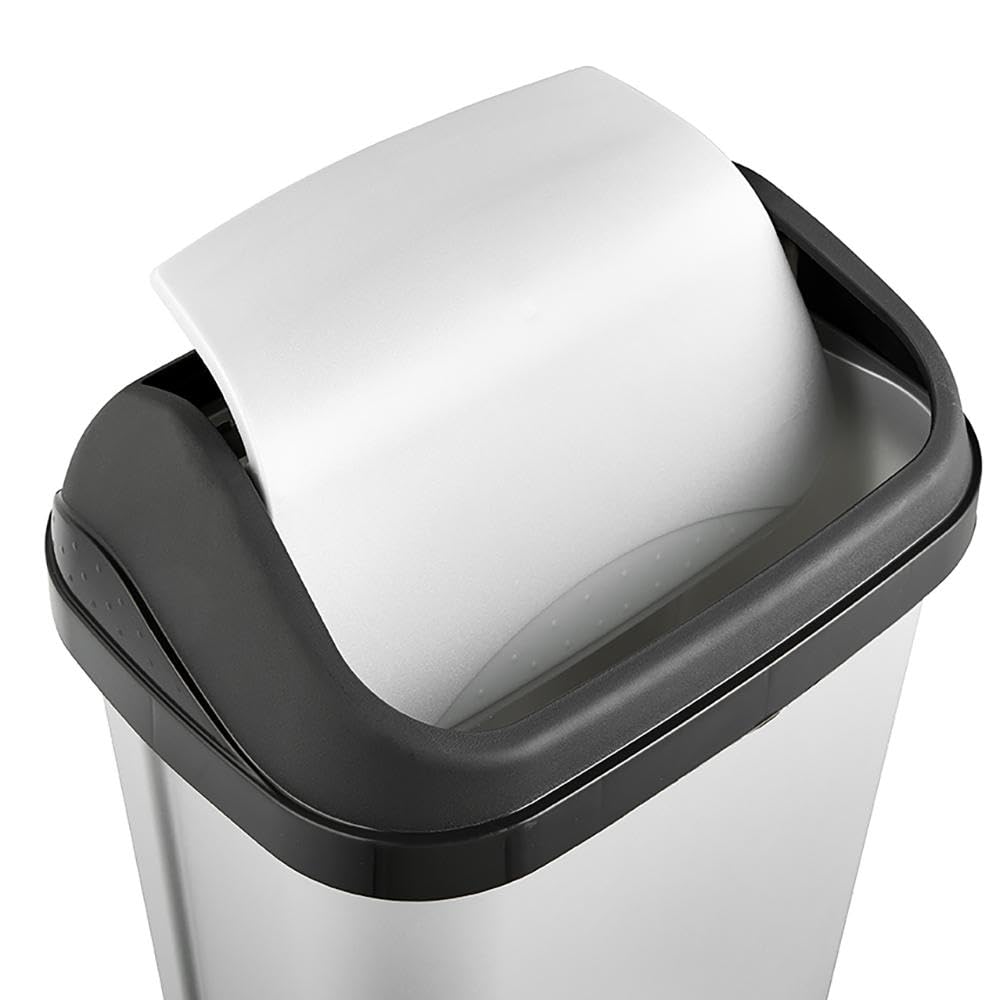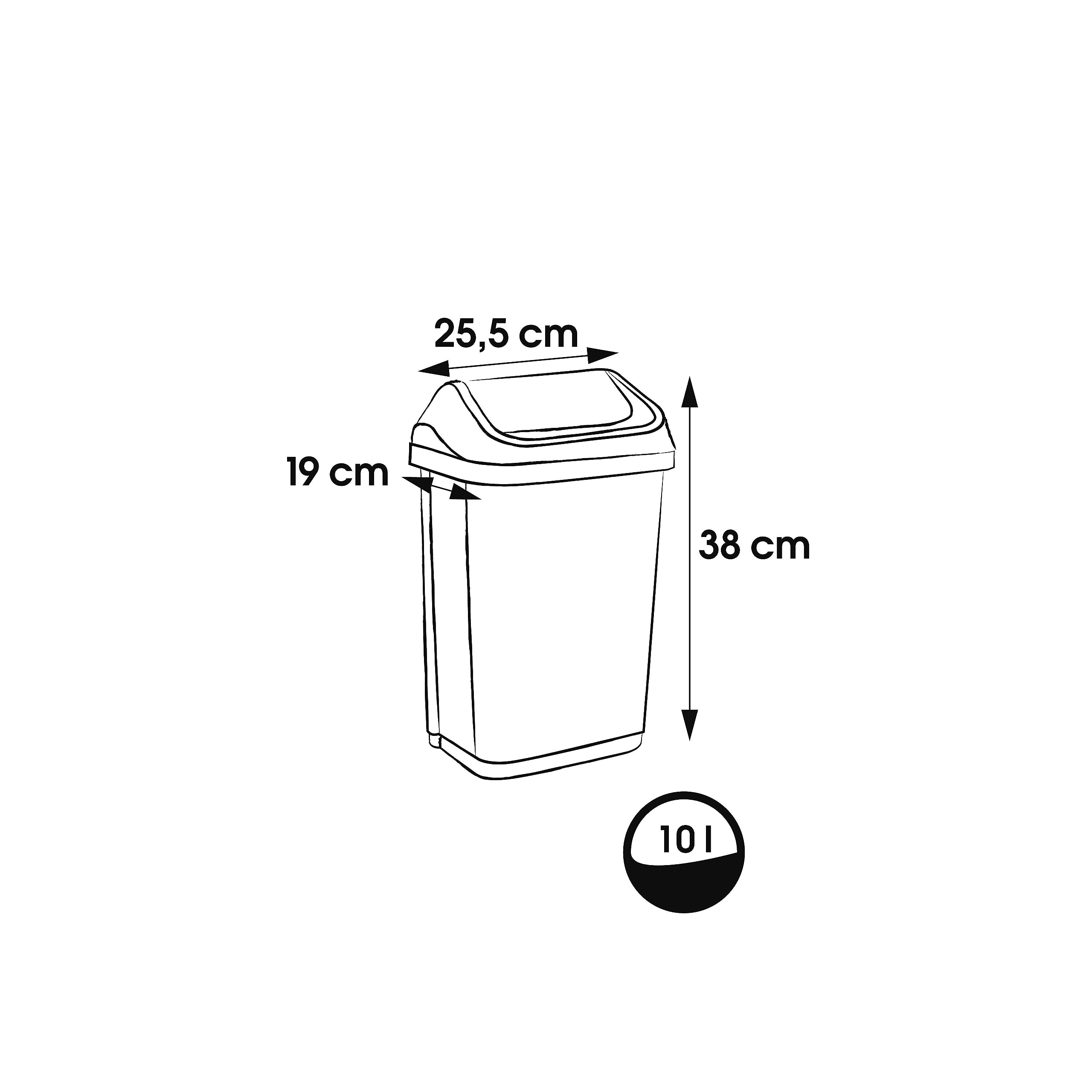 Kompakter Mülleimer mit praktischem Schwingdeckel und 10 l Fassungsvermögen - Für Abfallsäcke mit einem Volumen von 20 - 30 Liter - Komfortable Abfallentsorgung: Einfach zu öffnender Schwingdeckel mit angenehmer Haptik, Dezentes Design mit farblich abgesetzter Deckelhalterung - Einfache Reinigung: Deckel und Deckelhalterung abnehmbar, Abwischen mit feuchtem Tuch oder Schwamm - Hergestellt in Europa, Hochwertiger, stabiler Kunststoff (PP), Keine Abgabe von Schadstoffen - Lieferumfang: 1 Abfallbehälter Swantje, 10306, Masse (LxBxH): 25 x 19 x 38,5 cm, Fassungsvermögen: 10 l, Farbe: Silber