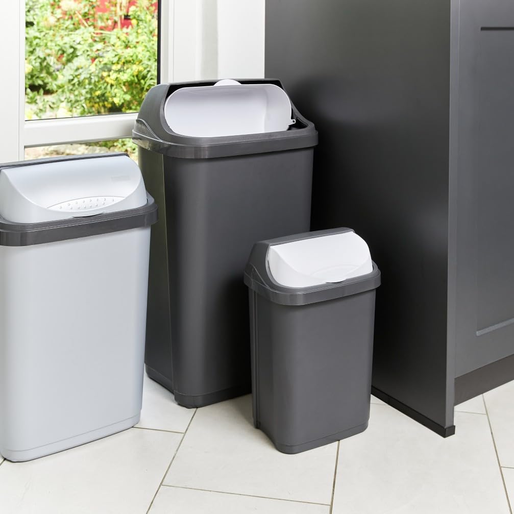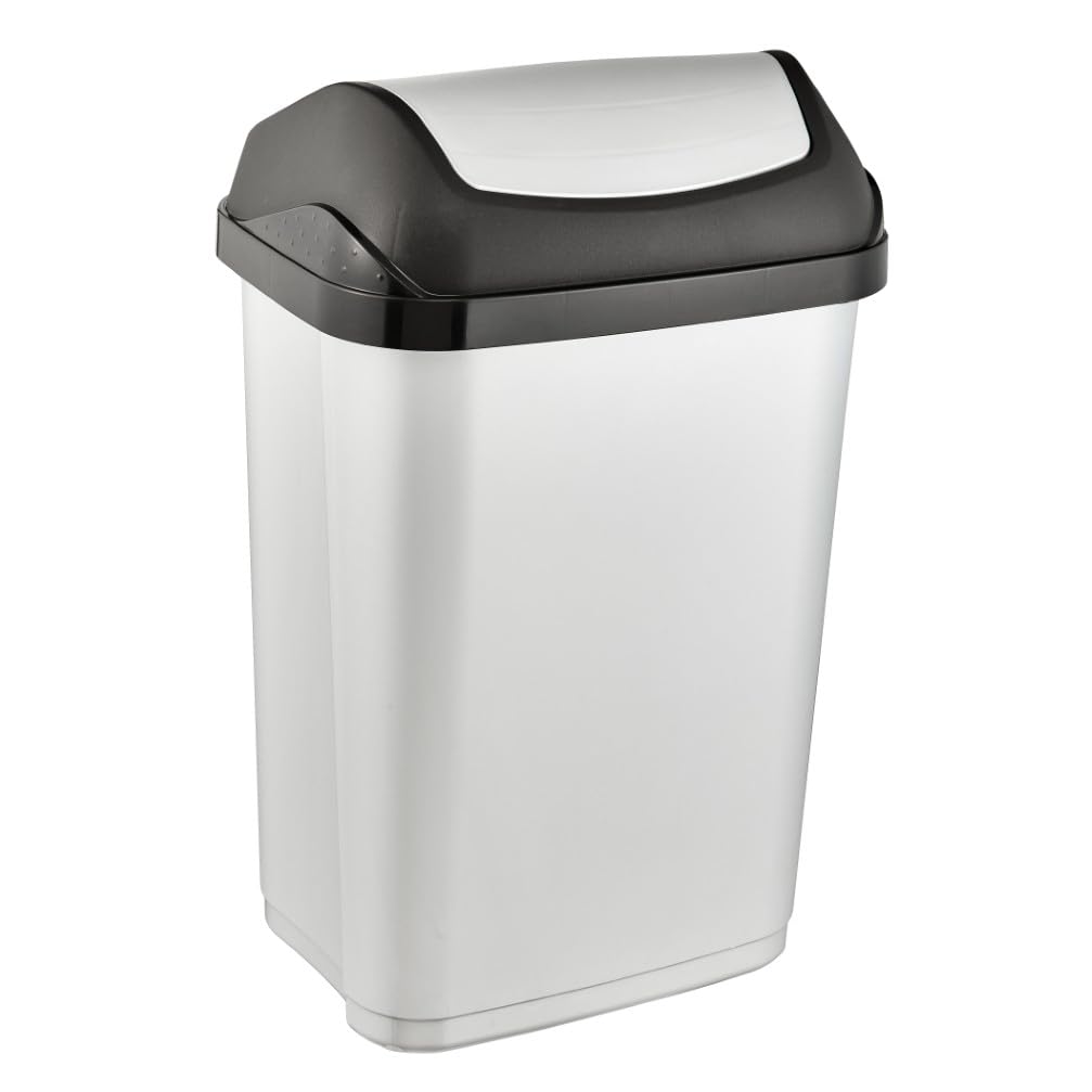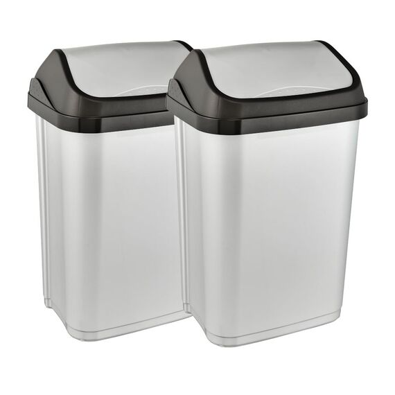 Kompakter Mülleimer mit praktischem Schwingdeckel und 25 l Fassungsvermögen - Für Abfallsäcke mit einem Volumen von 35 - 60 Liter - Komfortable Abfallentsorgung: Einfach zu öffnender Schwingdeckel mit angenehmer Haptik, Dezentes Design mit farblich abgesetzter Deckelhalterung - Einfache Reinigung: Deckel und Deckelhalterung abnehmbar, Abwischen mit feuchtem Tuch oder Schwamm - Hergestellt in Europa, Hochwertiger, stabiler Kunststoff (PP), Keine Abgabe von Schadstoffen - Lieferumfang: 2 Abfallbehälter swantje, Masse: 33,5 x 25,5 x 53,5 , Fassungsvermögen: 25 l, Farbe: Light Silver, Art.-Nr.: 30263160000ZD
