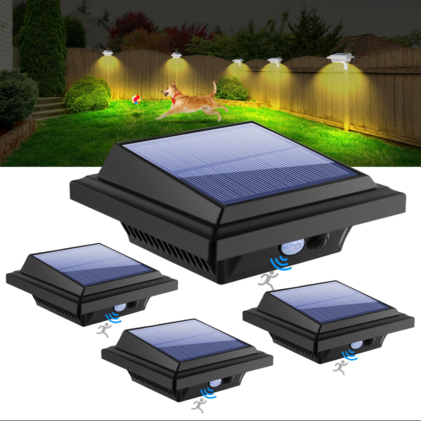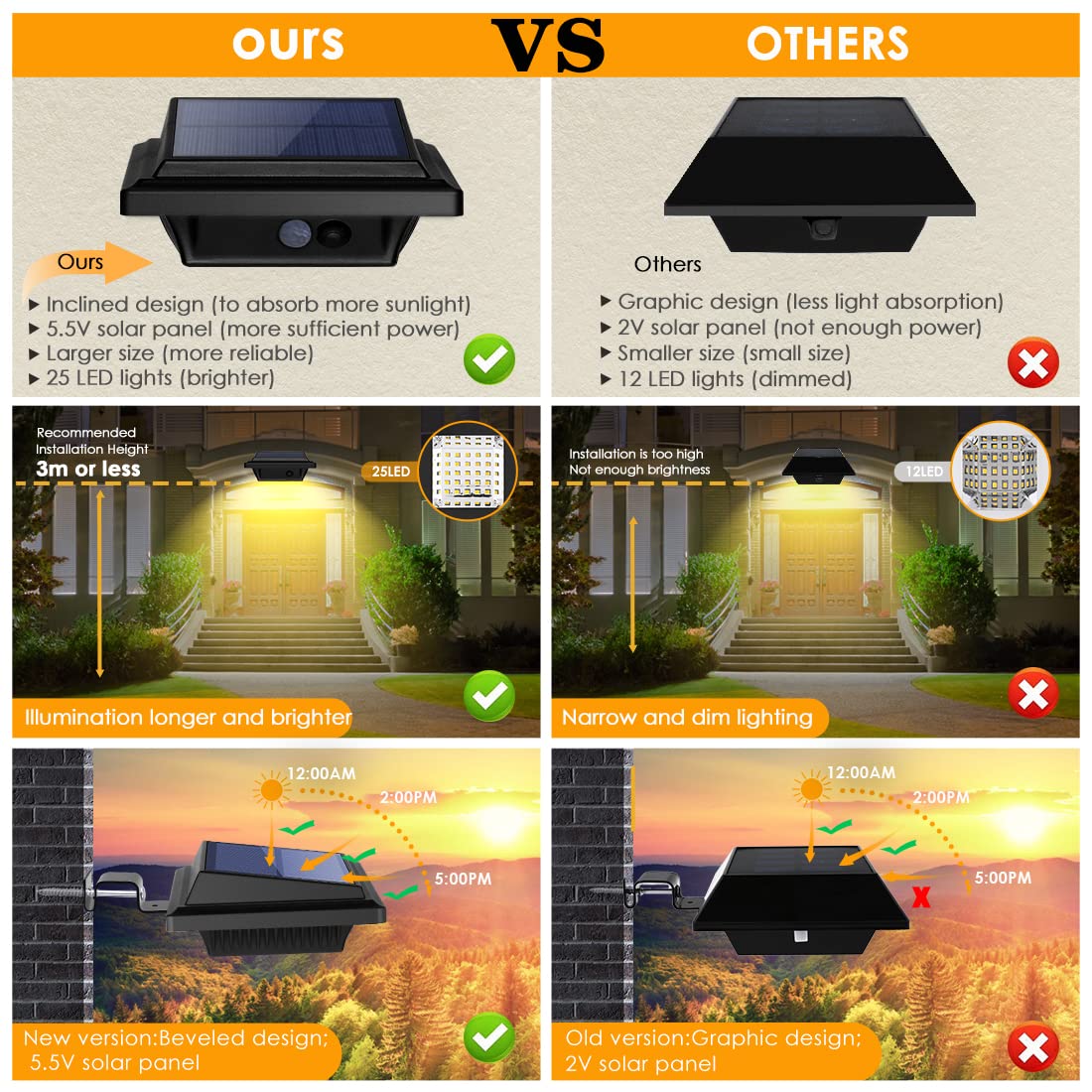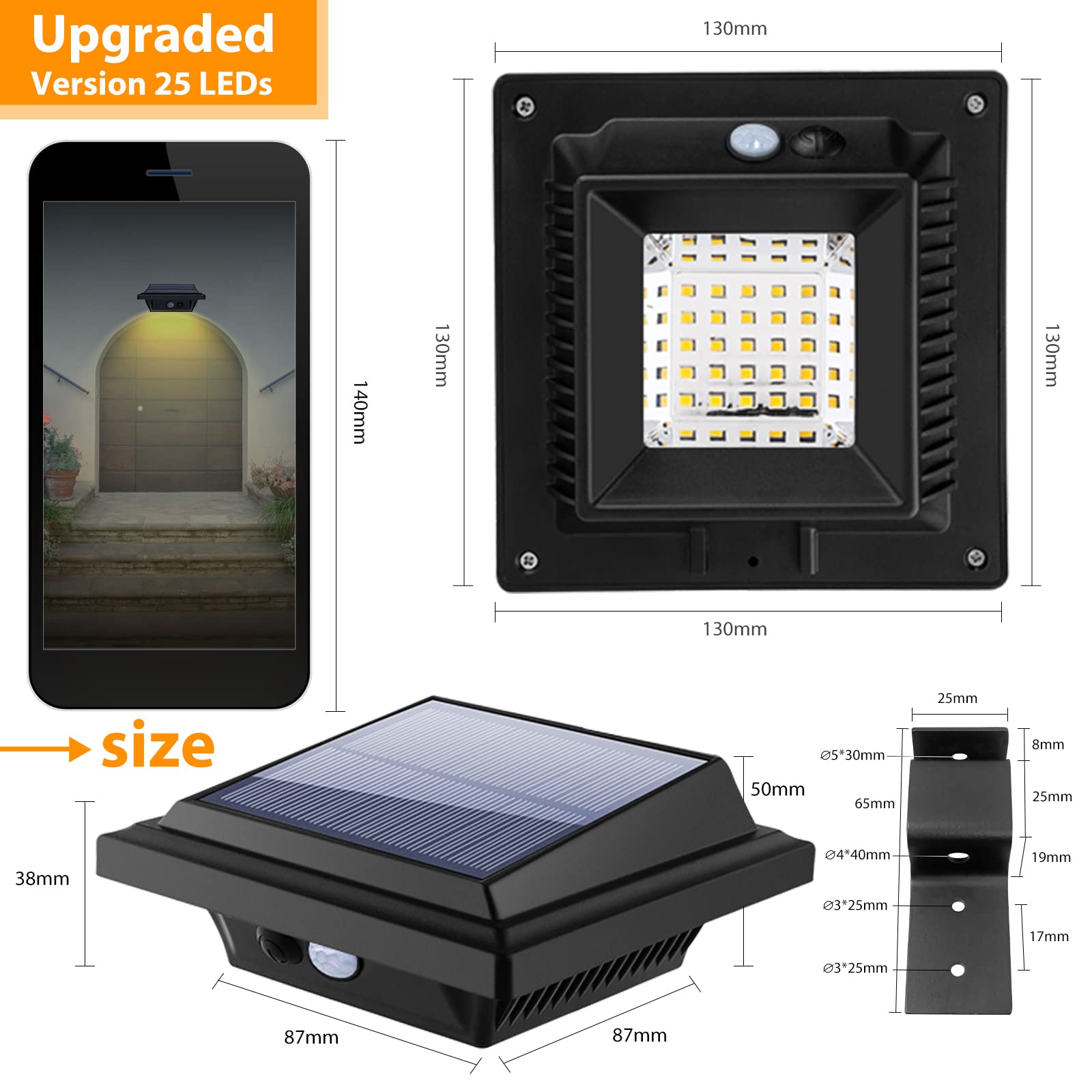 KEENZO LED Dachrinnenlampe, Solar Dachrinnenleuchte, 25 LEDs, 2W, PIR-Sensor, Schwarz,Kaltweisses Licht (Warmes Weiss Licht-4er-Set)
