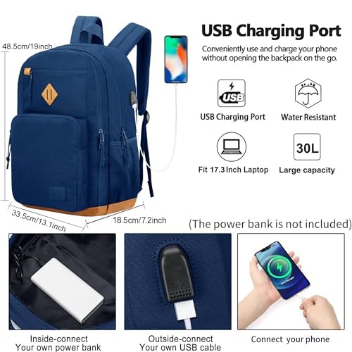 KEOFID Laptop Rucksack für Herren Damen, Grosser Schulrucksack für Jungen, Mädchen und Teenager, Anti-Diebstahl Computer Rucksack, 15,6 Zoll Laptop, Handgepäck Rucksackr(Blau19inches)