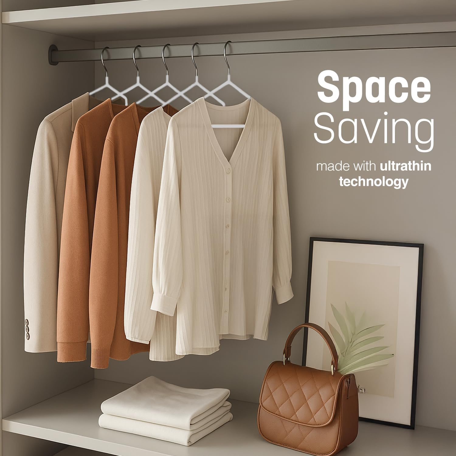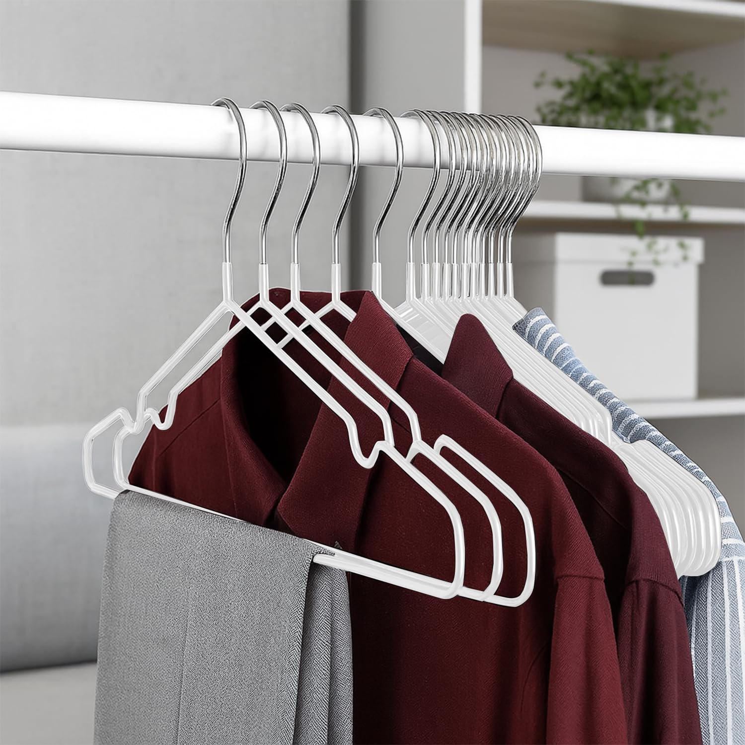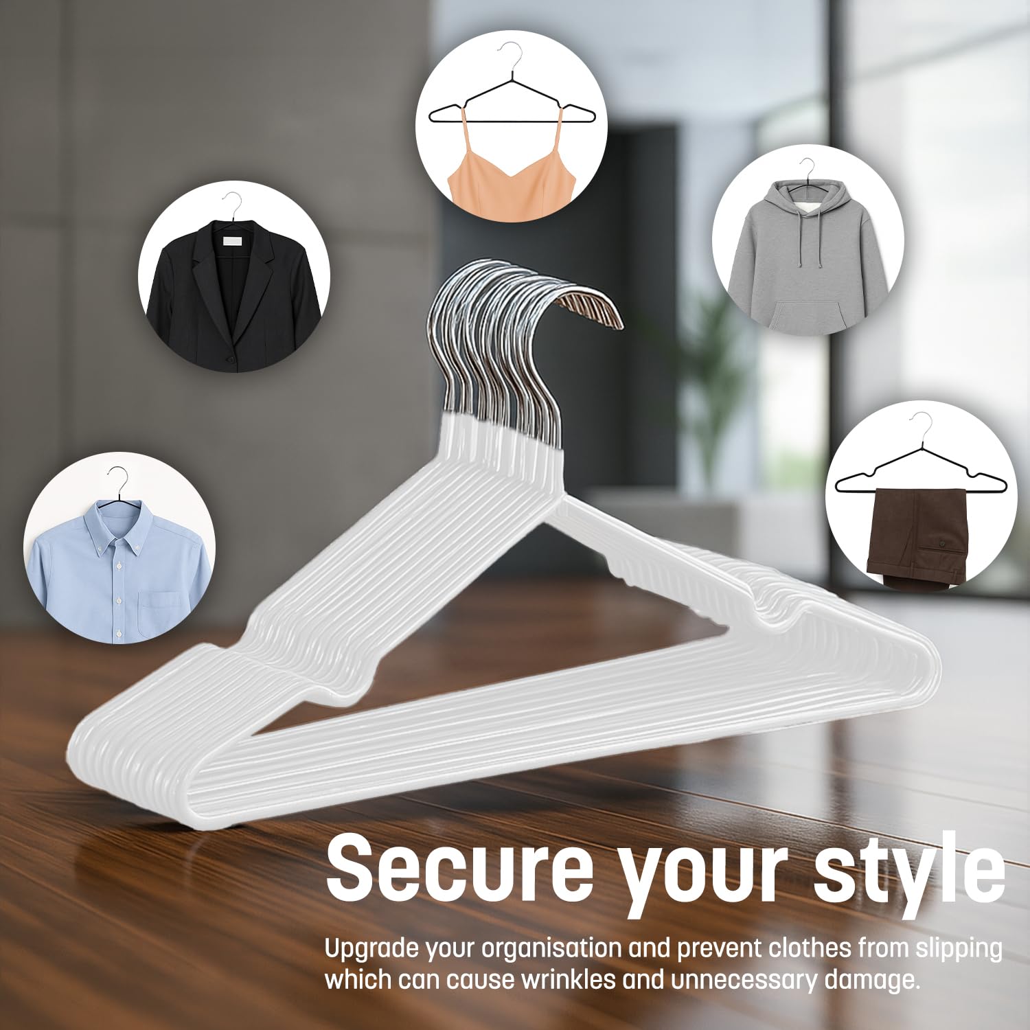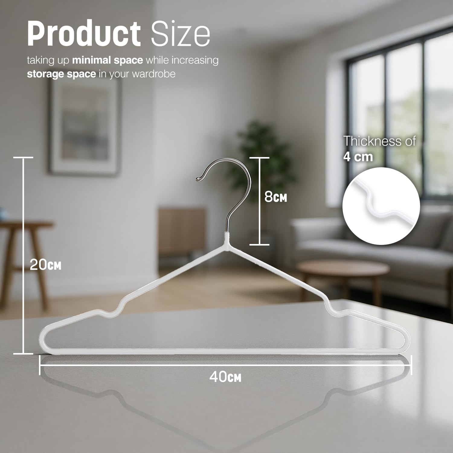 KEPLIN Premium Metall Kleiderbügel - 20er Pack, gummibeschichtet, platzsparend, sorgt für Ordnung, strapazierfähige Bügel für Kleiderschränke, Garderobenständer und Kleiderstangen (Weiss)