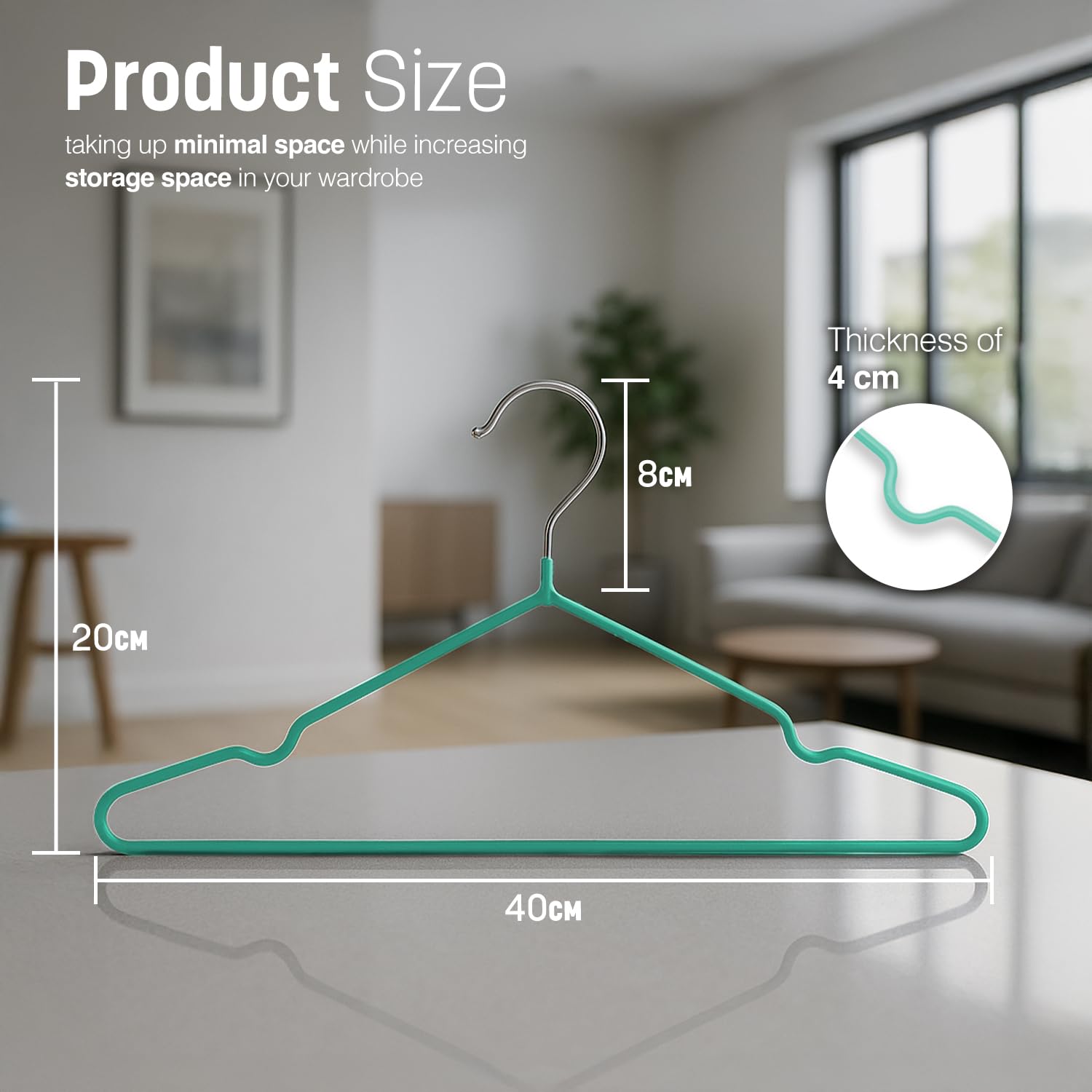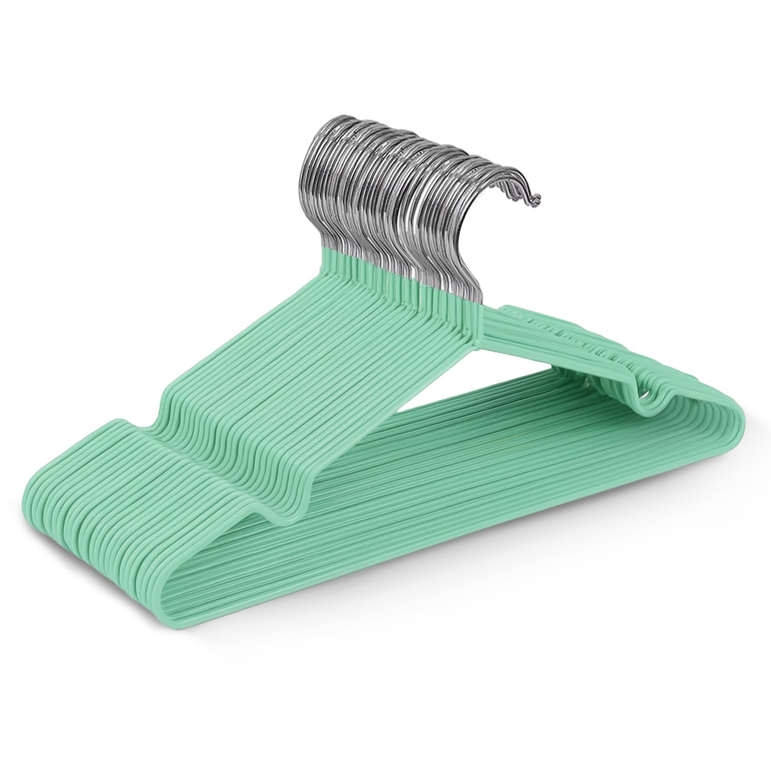 KEPLIN – 20er-Pack hochwertige, gummibeschichtete Metallbügel – strapazierfähig – platzsparender Organizer, Kleiderbügel für Kleiderschränke, Garderoben, Kleiderstangen (mintgrün)