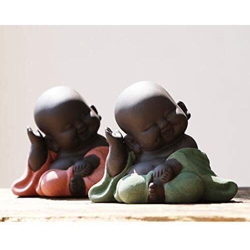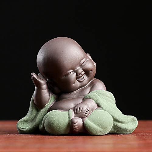 MonLiya Keramik Little Cute Buddha Statue Mönch Figur Kreative Baby Bastelpuppen Ornamente Geschenk Klassisch Chinesisch Fein Keramik Kunsthandwerk Tee Zubehör 2.8 '' Zoll hoch (Grün)