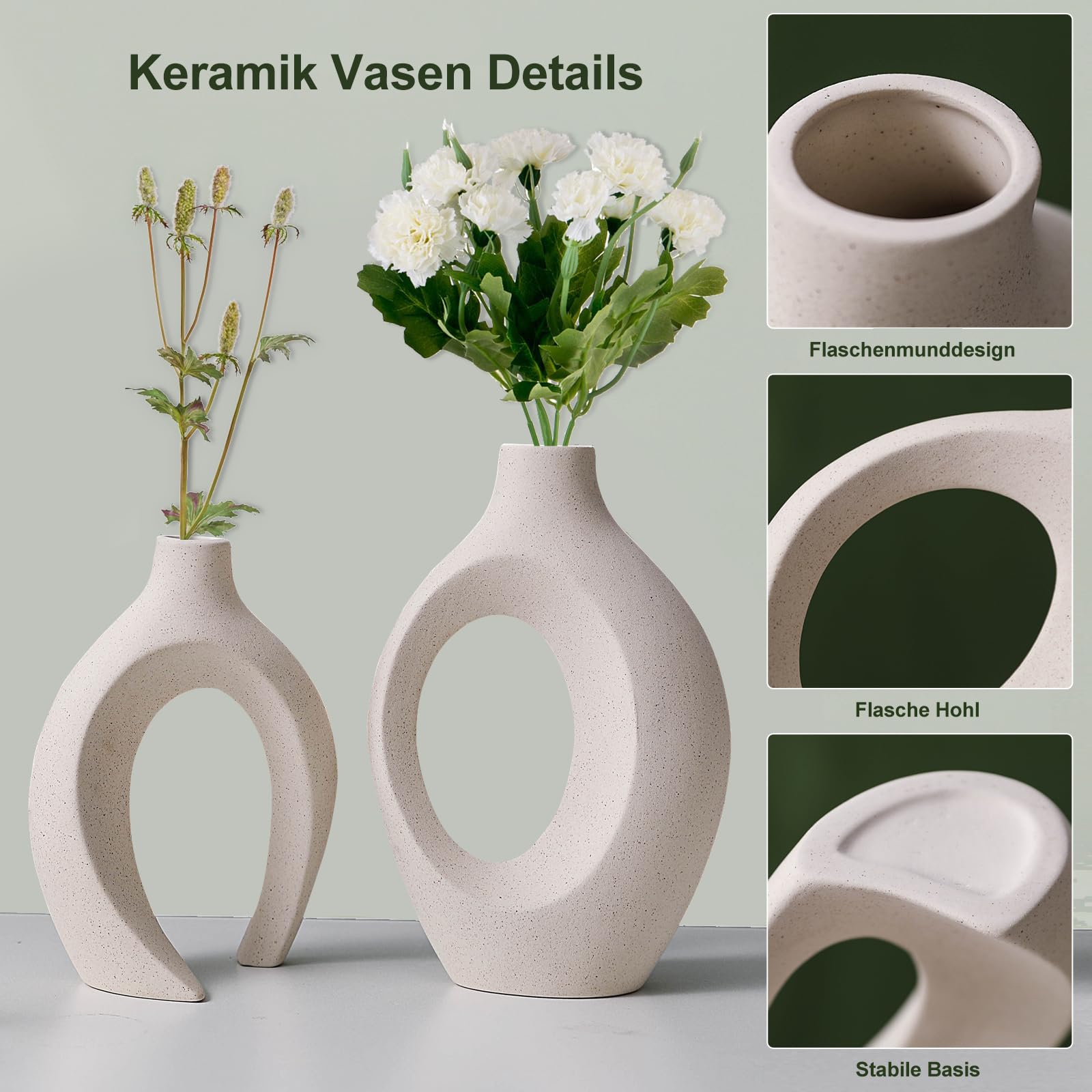 Keramik Vase, SUKIYPO 2er Set Hohle Beige Moderne Vasen für Nordisches, Vasen Deko, ästhetische Boho Blumenvase für Zuhause, Wohnzimmer, Büro, Bauernhaus, Couchtisch Dekoration
