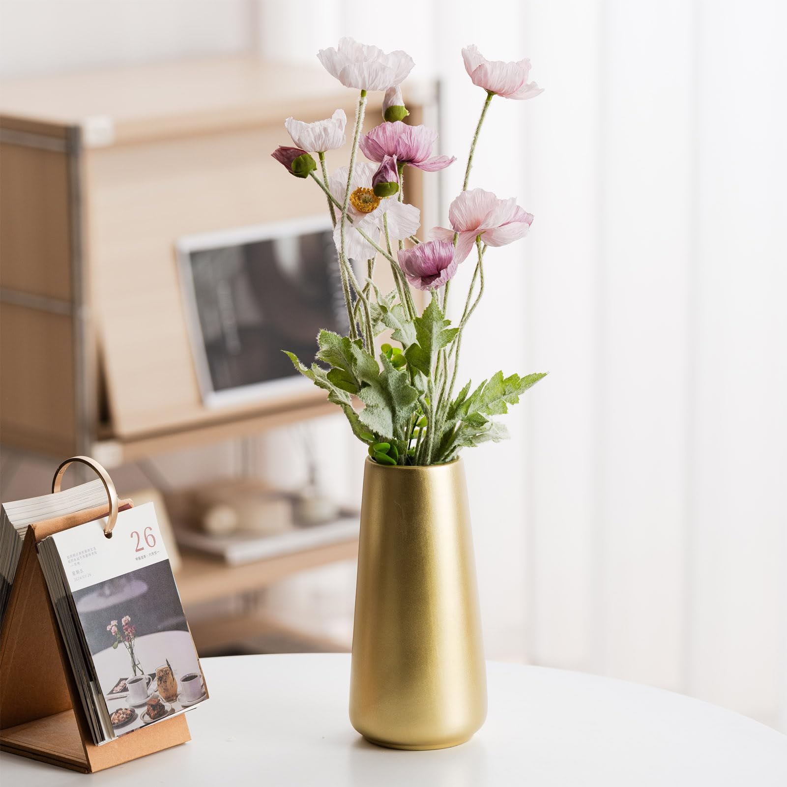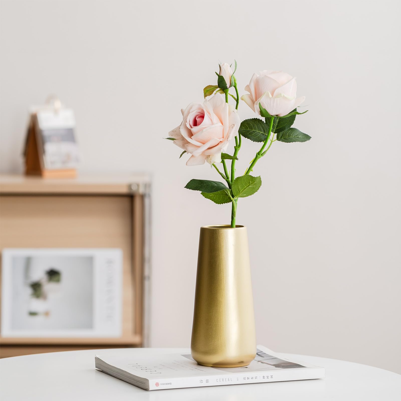 Hellgoldene Vase – 20cm grosse goldene Keramik-Blumenvase für Zuhause/Tisch/Akzentdekoration, minimalistische, Moderne Vasen für Tafelaufsätze, Raumdekoration, Wohnzimmer, Schlafzimmer oder Geschenk