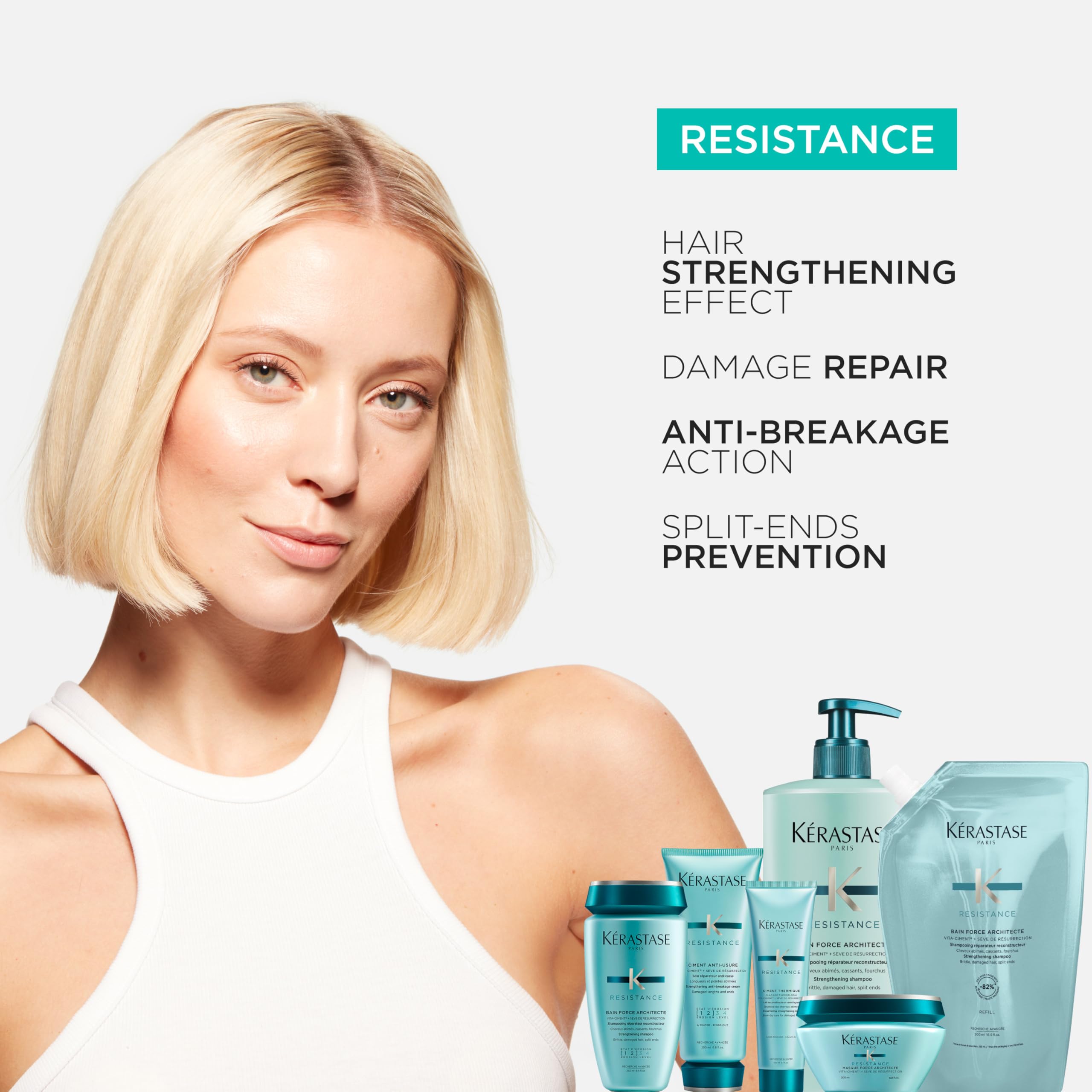 Kérastase Résistance Bain Force Architecte, Regenerierendes Shampoo bei strapaziertem, geschädigtem Haar, Tiefenwirksam nährende Haarpflege für kräftigeres, stärkeres Haar
