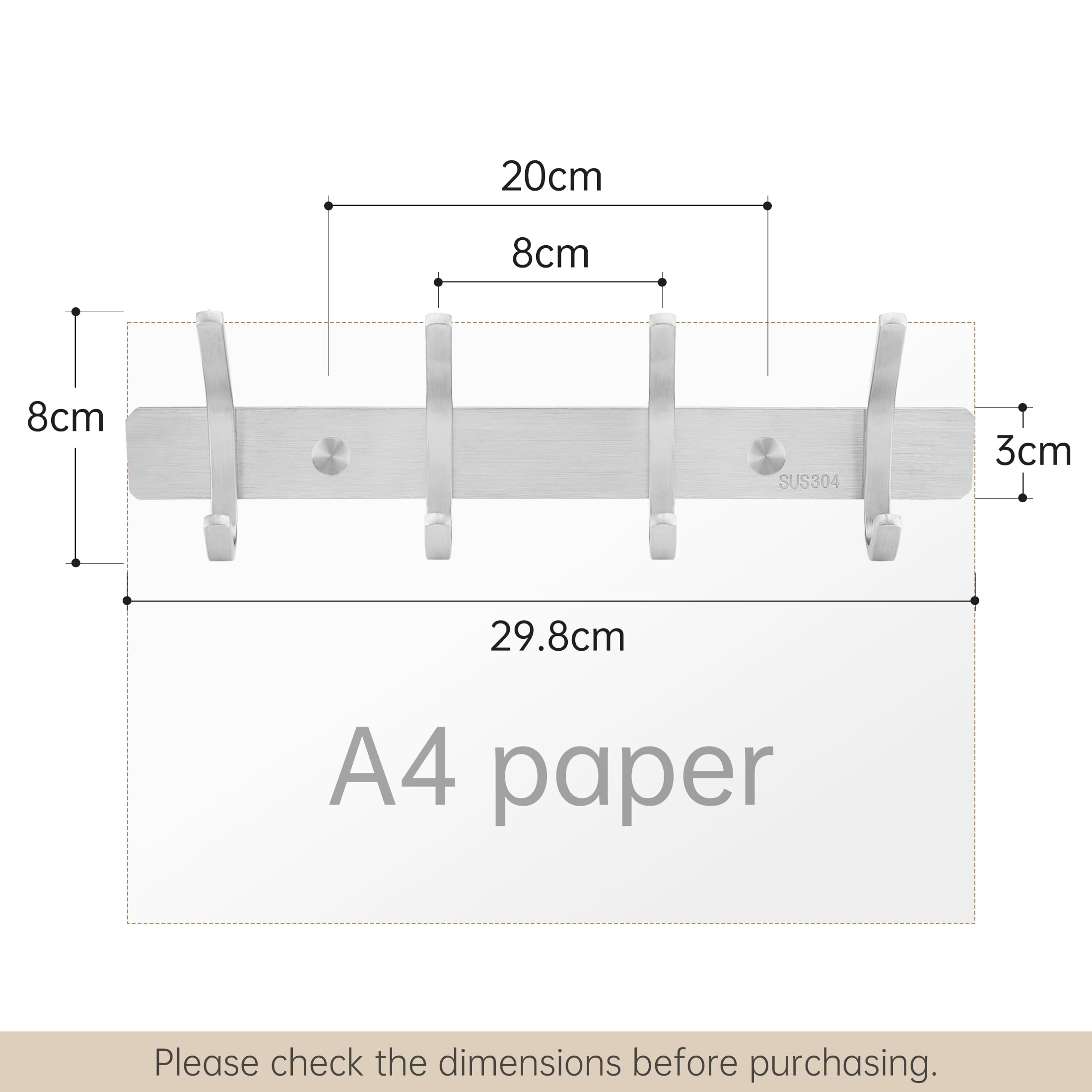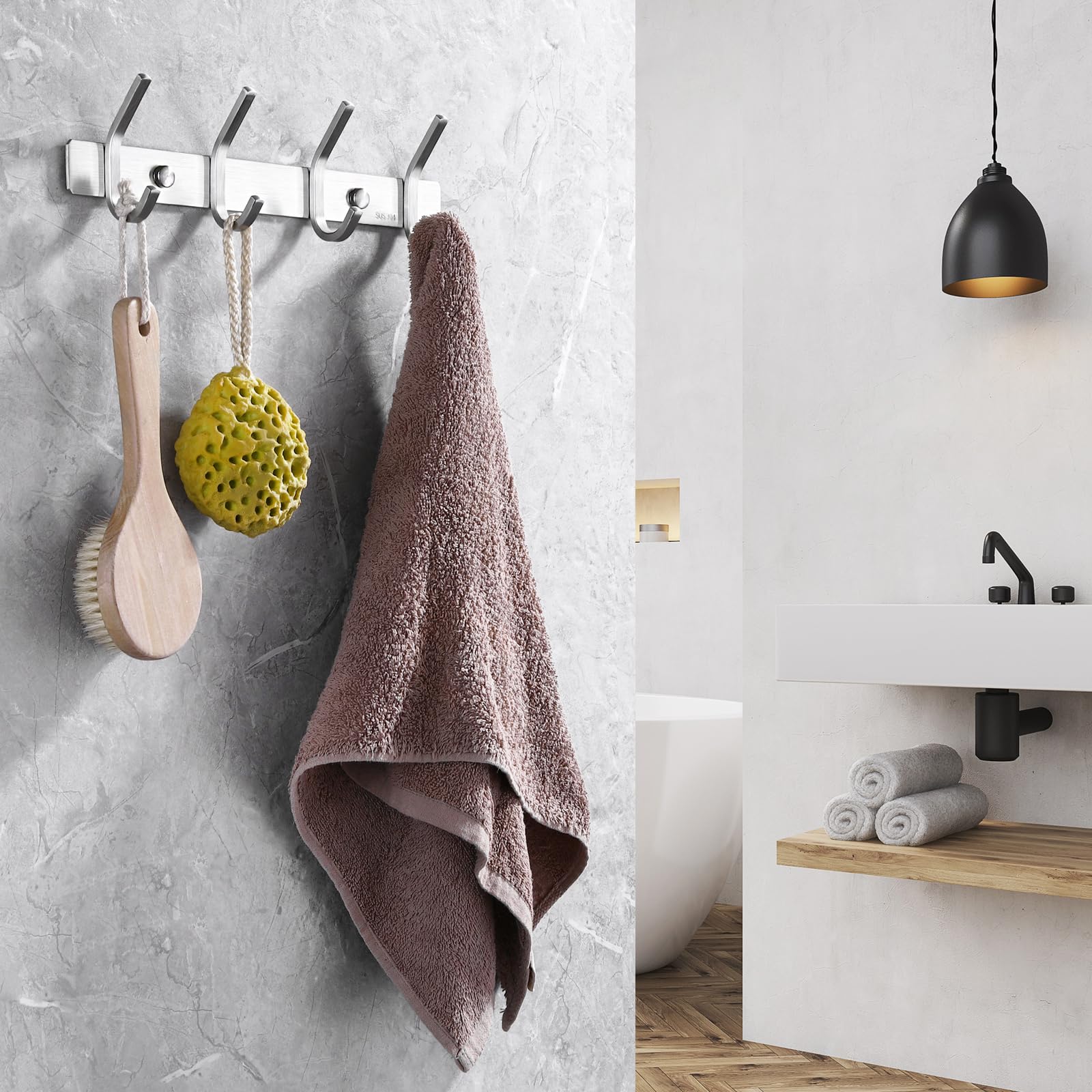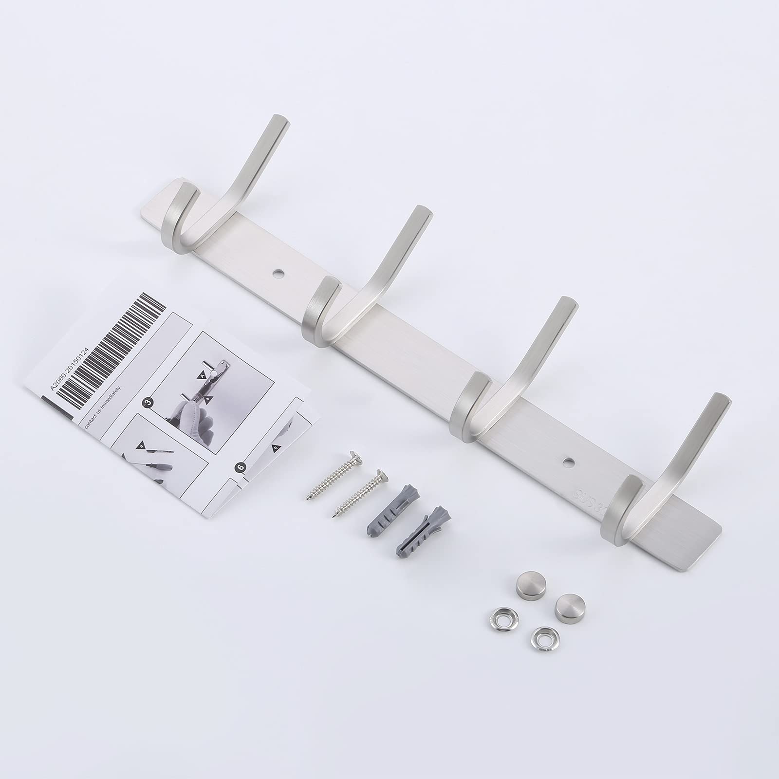 KES Kleiderhaken Garderobenleiste Hakenleiste Edelstahl SUS304 Kleiderhakenleiste Garderobenhaken 4 Haken Gaderobe Wand Handtuchhalter Bad Gebürstet, AH203H4-2