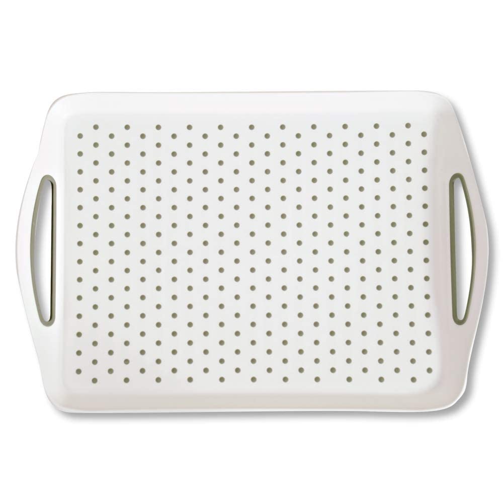 Das KESPER Serviertablett mit rutschfesten Noppen bietet Ihnen die perfekte Kombination aus Funktionalität und Stil. Hergestellt aus hochwertigem, langlebigem PP-Kunststoff ist es robust genug für den täglichen Einsatz. Dank der integrierten rutschfesten Noppen bleibt Ihr Geschirr oder Glas sicher an Ort und Stelle, selbst beim Tragen. Mit ergonomischen Griffen und einem erhöhten Rand von 2,5 cm sorgt dieses Tablett für maximalen Komfort und Sicherheit. Das praktische Design ist zudem spülmaschinengeeignet und lässt sich mühelos reinigen. Ideal für Küche, Wohnzimmer oder Garten – dieses Tablett erleichtert Ihnen das Servieren stilvoll und bequem.