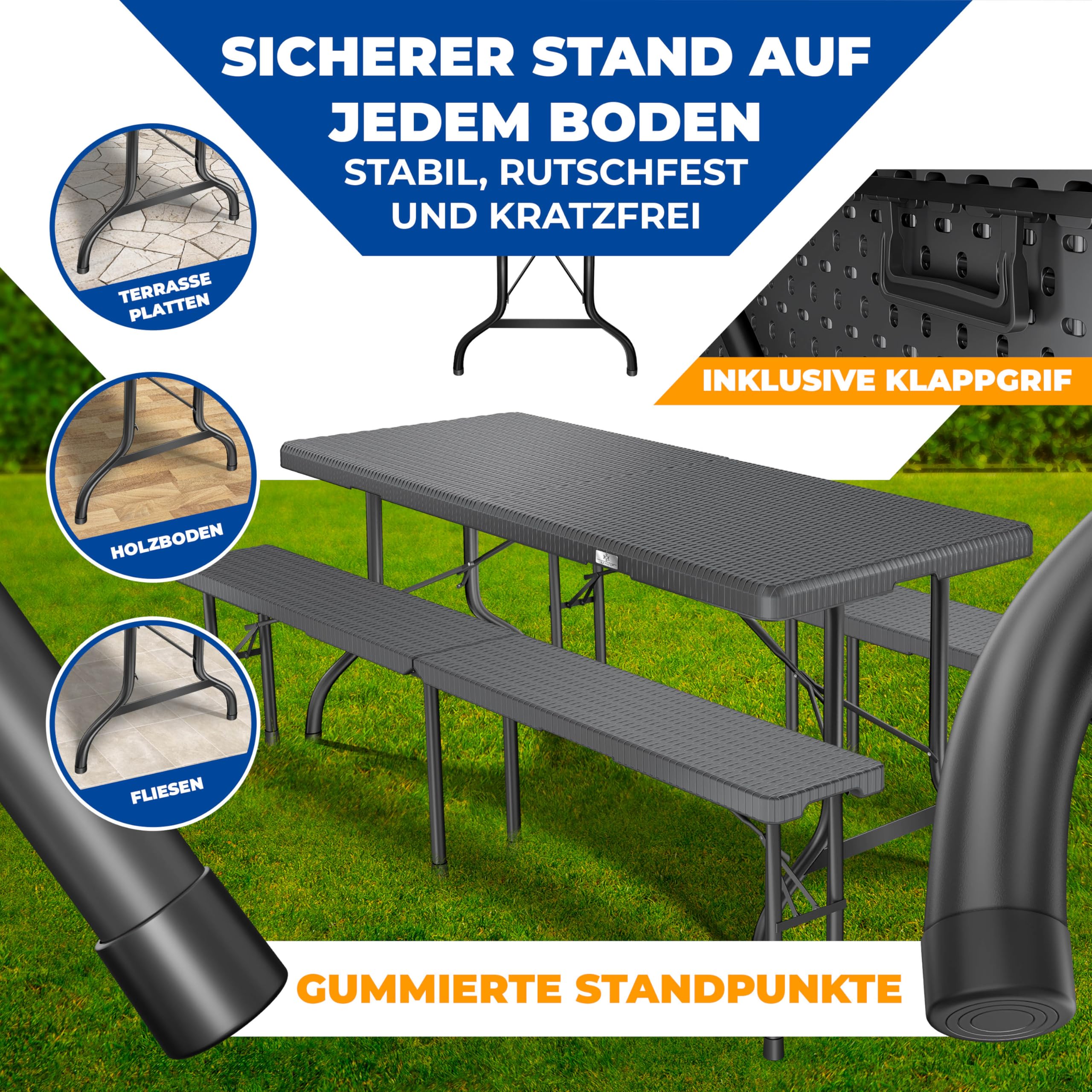 KESSER Bierzeltgarnitur - SET aus 2x Partybank / Bierbank und 1x Biertisch - klappbar robust stabil wetterfest !Ob Geburtstag, Partys, Veranstaltungen oder Grillabend – diese robuste Bierzeltgarnitur von KESSER lädt auf jeden Fall zum gemütlichen Zusammensitzen ein. Produktvorteile im Überblick• für drinnen und draussen: witterungsfest dank Stahlrohrgestell und HDPE-Kunststoff