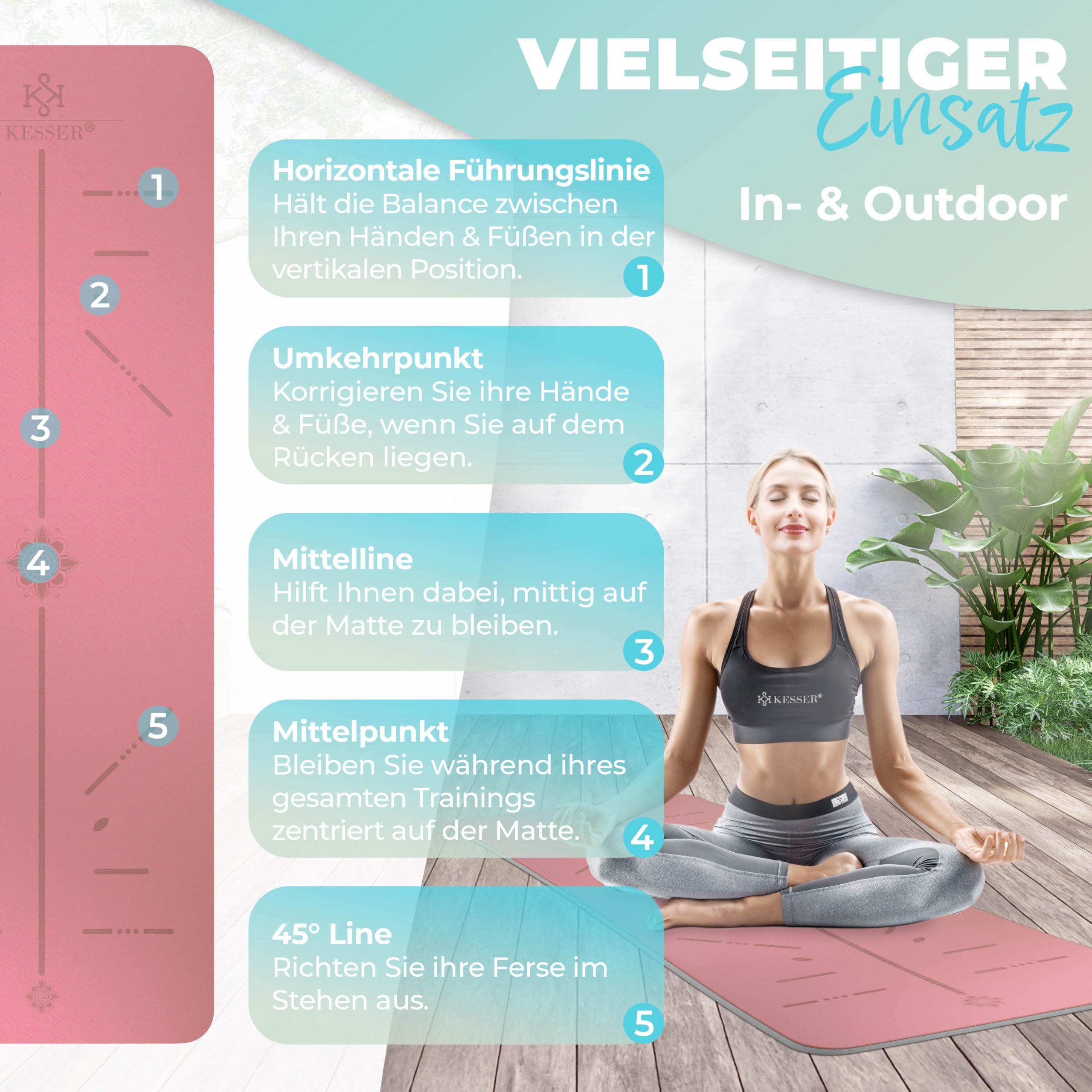 • ???????????????????????????????????????????????? ???????????? ????Ö????????????????????????????????????????????????????????: Die Ausrichtungslinien helfen Ihnen, Ihre Hände und Füsse in die richtige Position zu fokussieren und zu bringen, und die richtige Körperhaltung in verschiedenen Asanas (Yogapositionen) beizubehalten. Perfekt für den Gebrauch zu Hause oder im Studio. Körperausrichtung ist besonders hilfreich, wenn Sie Yoga alleine ohne Yogatrainer praktizieren.