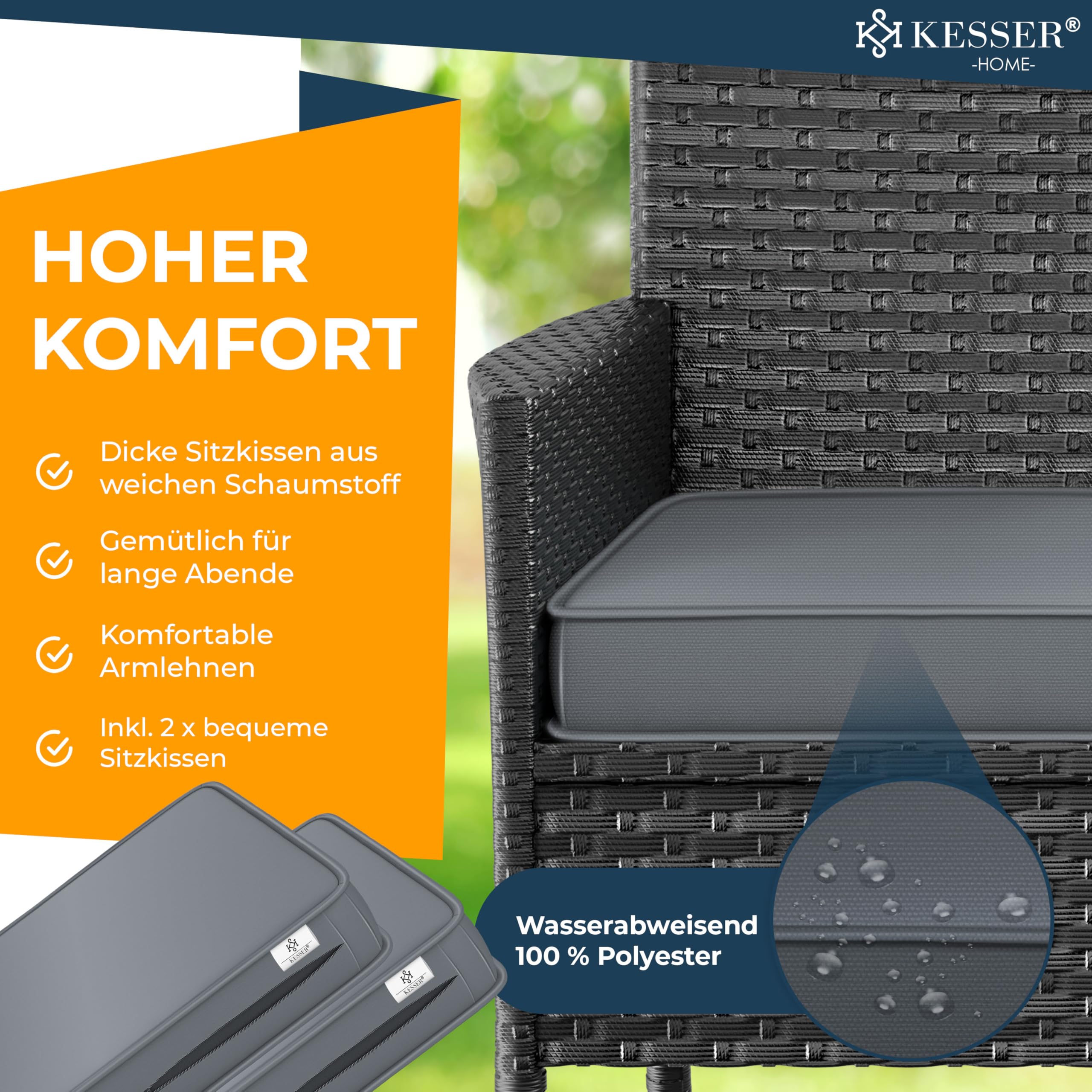 • Inkl. 2 x bequeme Sitzkissen