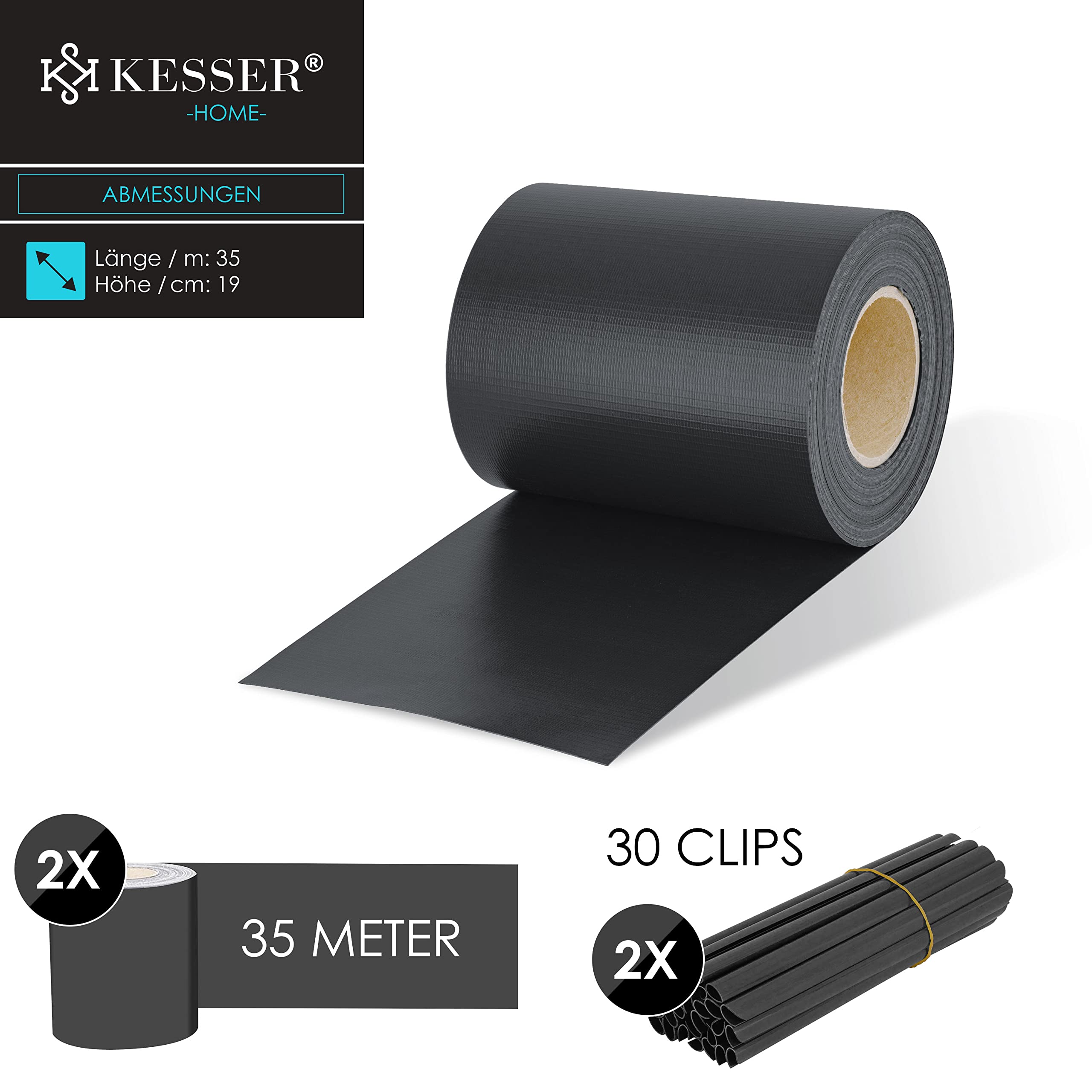 KESSER Sichtschutzrolle aus hochwertigem, schmutzabweisendem und wetterbeständigem PVC, geeignet für Temperaturen von -30°C bis + 70°C für Garten, Haus, Hof und Pool inkl. 30 BefestigungsclipsSchützen Sie sich und die Privatsphäre Ihrer Familie - die undurchsichtigen und modernen Sichtschutzstreifen schützen vor neugierigen Blicken und schaffen eine entspannte Atmosphäre...egal ob auf der Terrasse, dem Balkon oder in Ihrem Garten.Ohne Werkzeug: Die Zaunfolie lässt sich spielend leicht in einen Einzel- oder Doppelstabmattenzaun einflechten. An beiden Enden erfolgt die Sicherung und Befestigung über einen der jeweils 30 mitgelieferten Befestigungsclips. Produkt-Highlights:• Langlebige Qualität