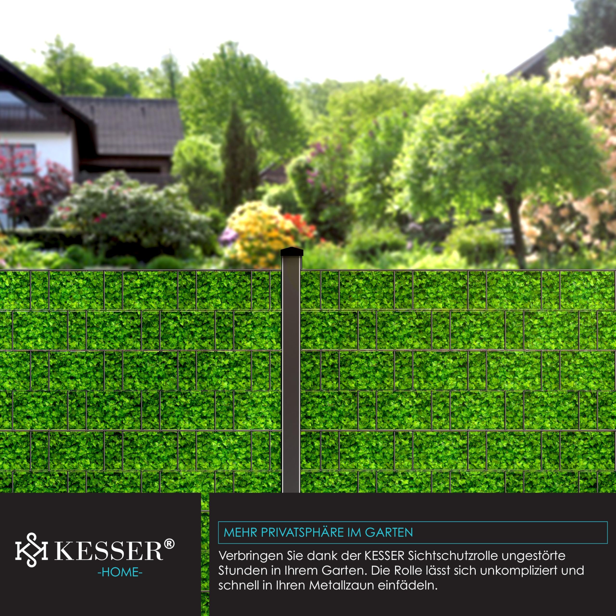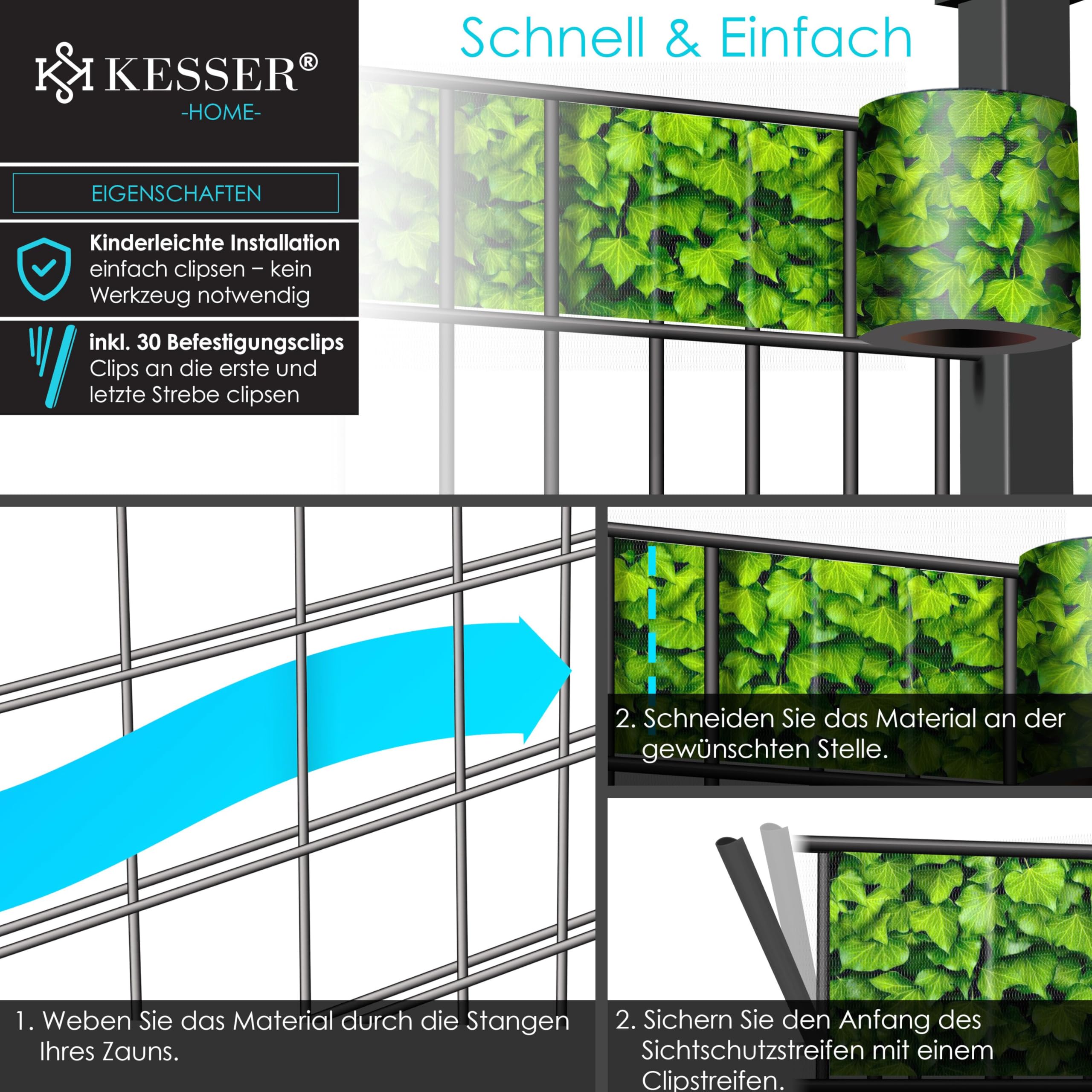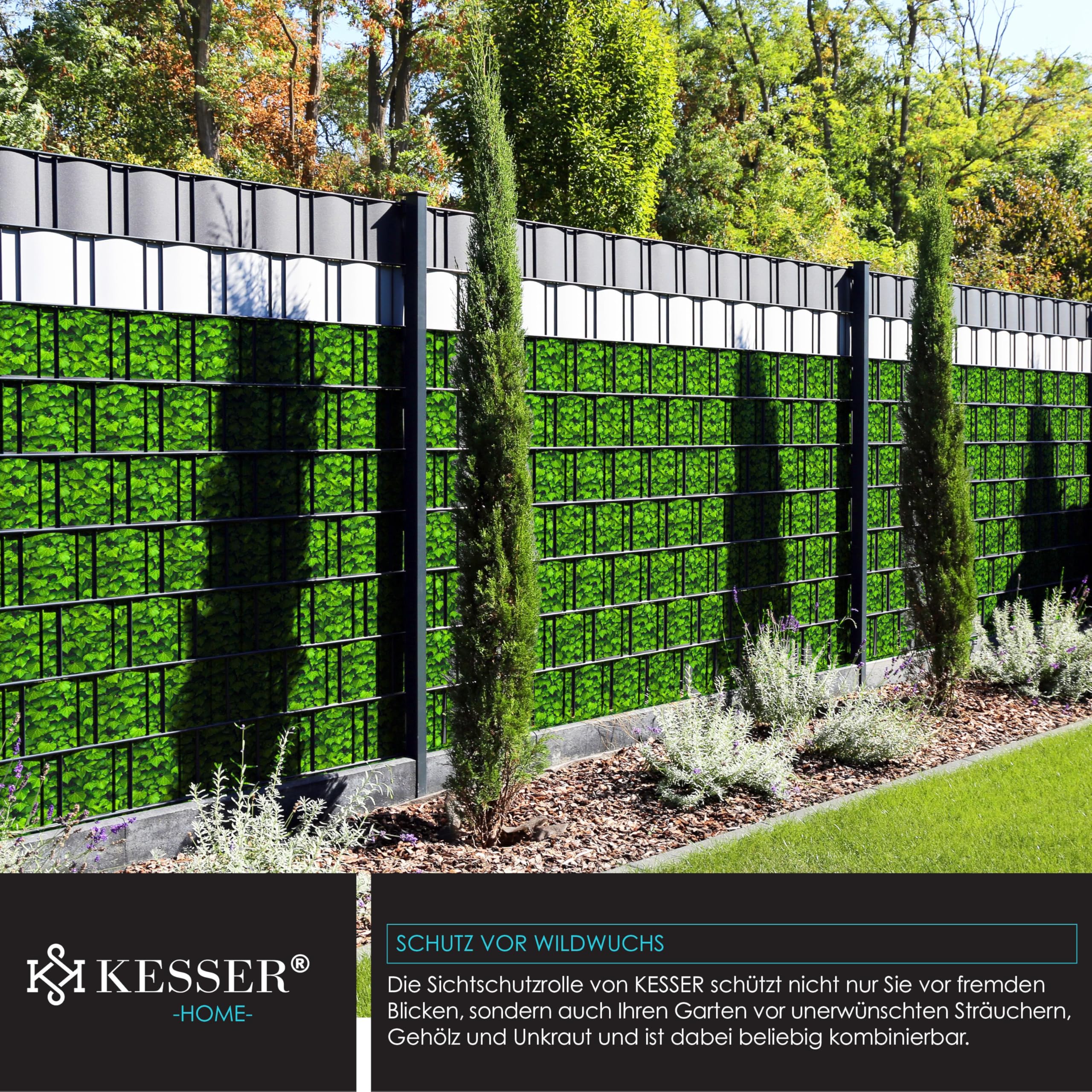 KESSER Sichtschutzrolle aus hochwertigem, schmutzabweisendem und wetterbeständigem PVC, geeignet für Temperaturen von -30°C bis + 70°C für Garten, Haus, Hof und Pool inkl. 30 BefestigungsclipsSchützen Sie sich und die Privatsphäre Ihrer Familie - die undurchsichtigen und modernen Sichtschutzstreifen schützen vor neugierigen Blicken und schaffen eine entspannte Atmosphäre...egal ob auf der Terrasse, dem Balkon oder in Ihrem Garten.Ohne Werkzeug: Die Zaunfolie lässt sich spielend leicht in einen Einzel- oder Doppelstabmattenzaun einflechten. An beiden Enden erfolgt die Sicherung und Befestigung über einen der jeweils 30 mitgelieferten Befestigungsclips. Produkt-Highlights:• Langlebige Qualität