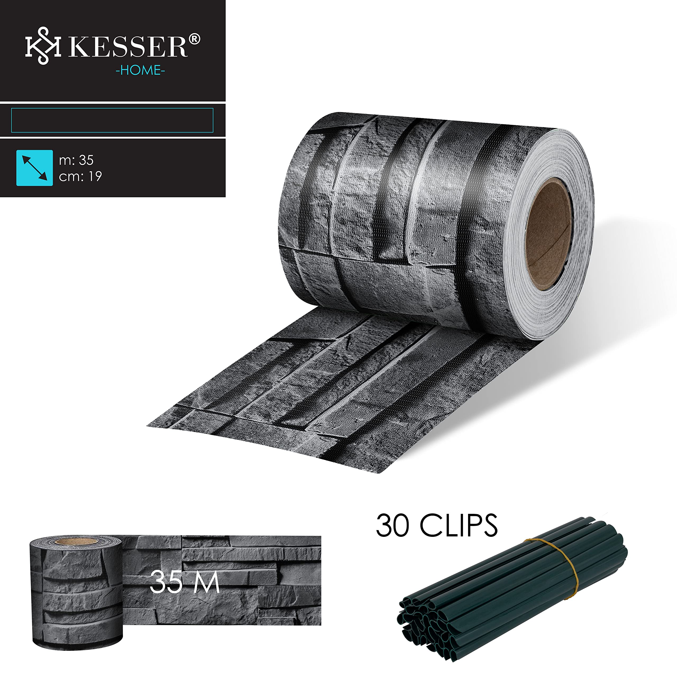 KESSER Sichtschutzrolle aus hochwertigem, schmutzabweisendem und wetterbeständigem PVC, geeignet für Temperaturen von -30°C bis + 70°C für Garten, Haus, Hof und Pool inkl. 30 BefestigungsclipsSchützen Sie sich und die Privatsphäre Ihrer Familie - die undurchsichtigen und modernen Sichtschutzstreifen schützen vor neugierigen Blicken und schaffen eine entspannte Atmosphäre...egal ob auf der Terrasse, dem Balkon oder in Ihrem Garten.Ohne Werkzeug: Die Zaunfolie lässt sich spielend leicht in einen Einzel- oder Doppelstabmattenzaun einflechten. An beiden Enden erfolgt die Sicherung und Befestigung über einen der jeweils 30 mitgelieferten Befestigungsclips. Produkt-Highlights:• Langlebige Qualität