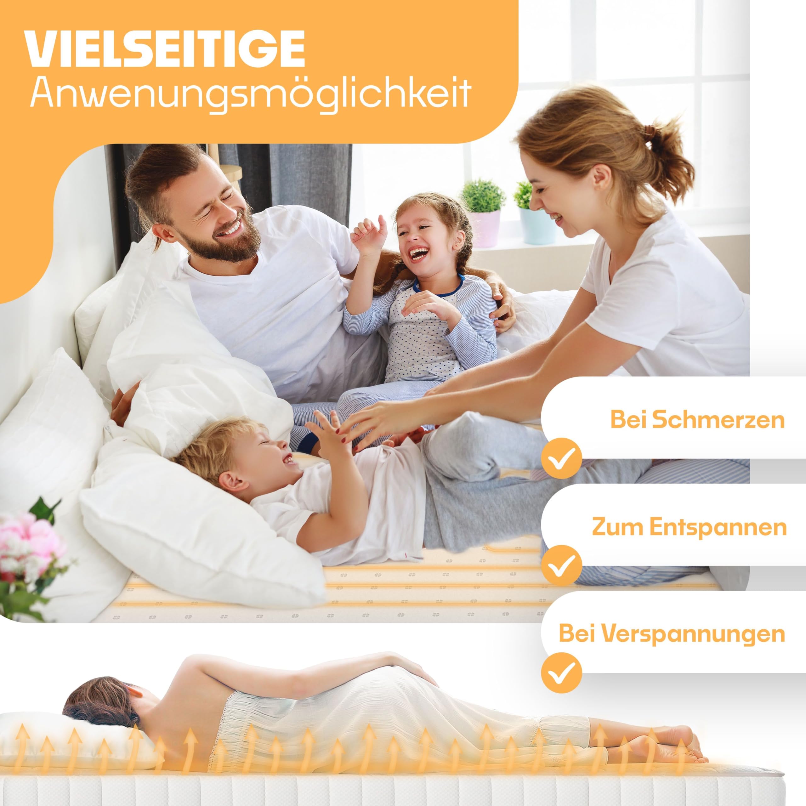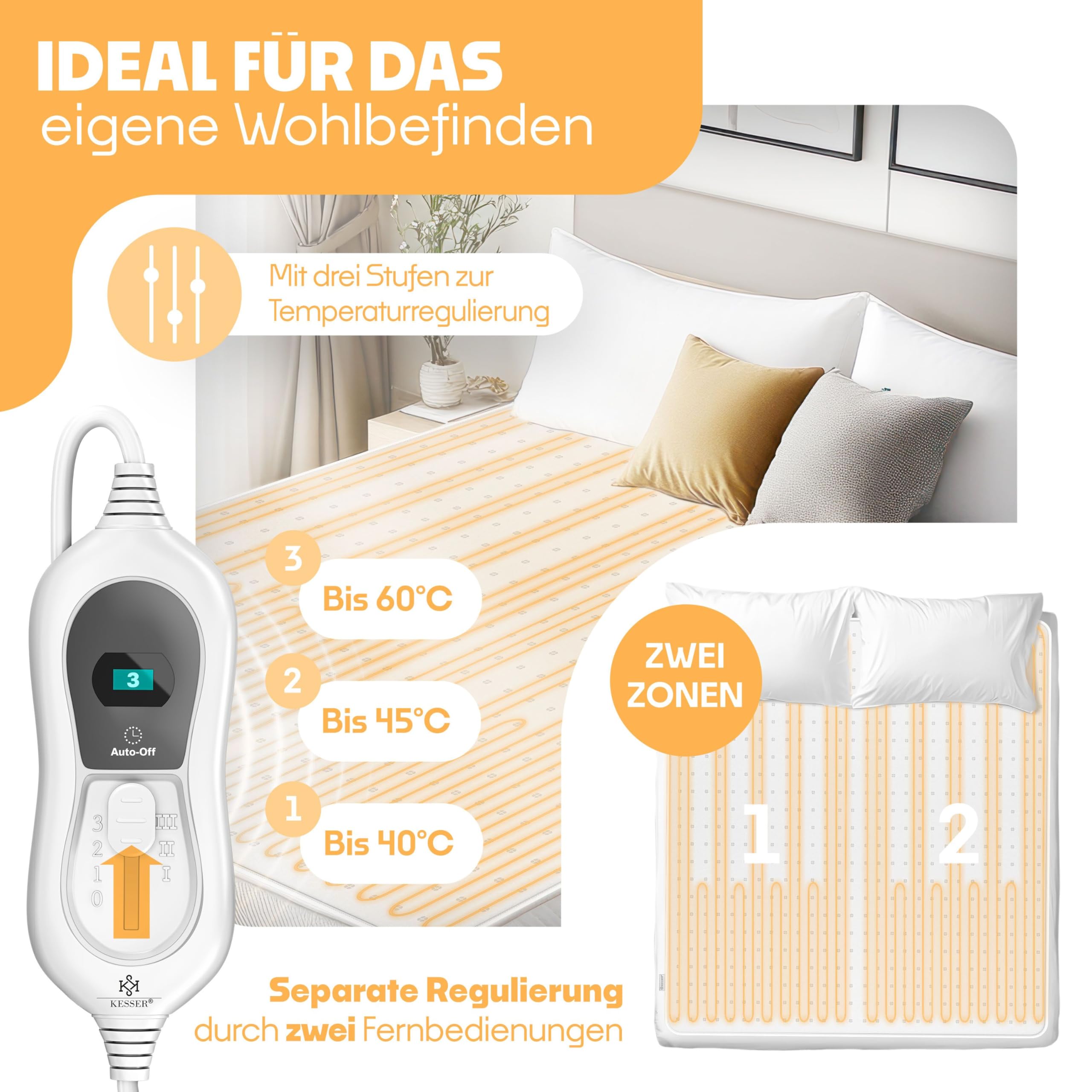 KESSER Wärmeunterbett inkl. Befestigungsbänder für den Rücken, Nacken und Bauch inkl. Fernbedienung, grosse Heizfläche, 3 Heizstufen, Überhitzungsschutz, Abschaltautomatik, atmungsaktiv, multifunktionalMit KESSER geht es Ihnen und Ihrem Körper besser!EINSATZGEBIETE• Erkältungen