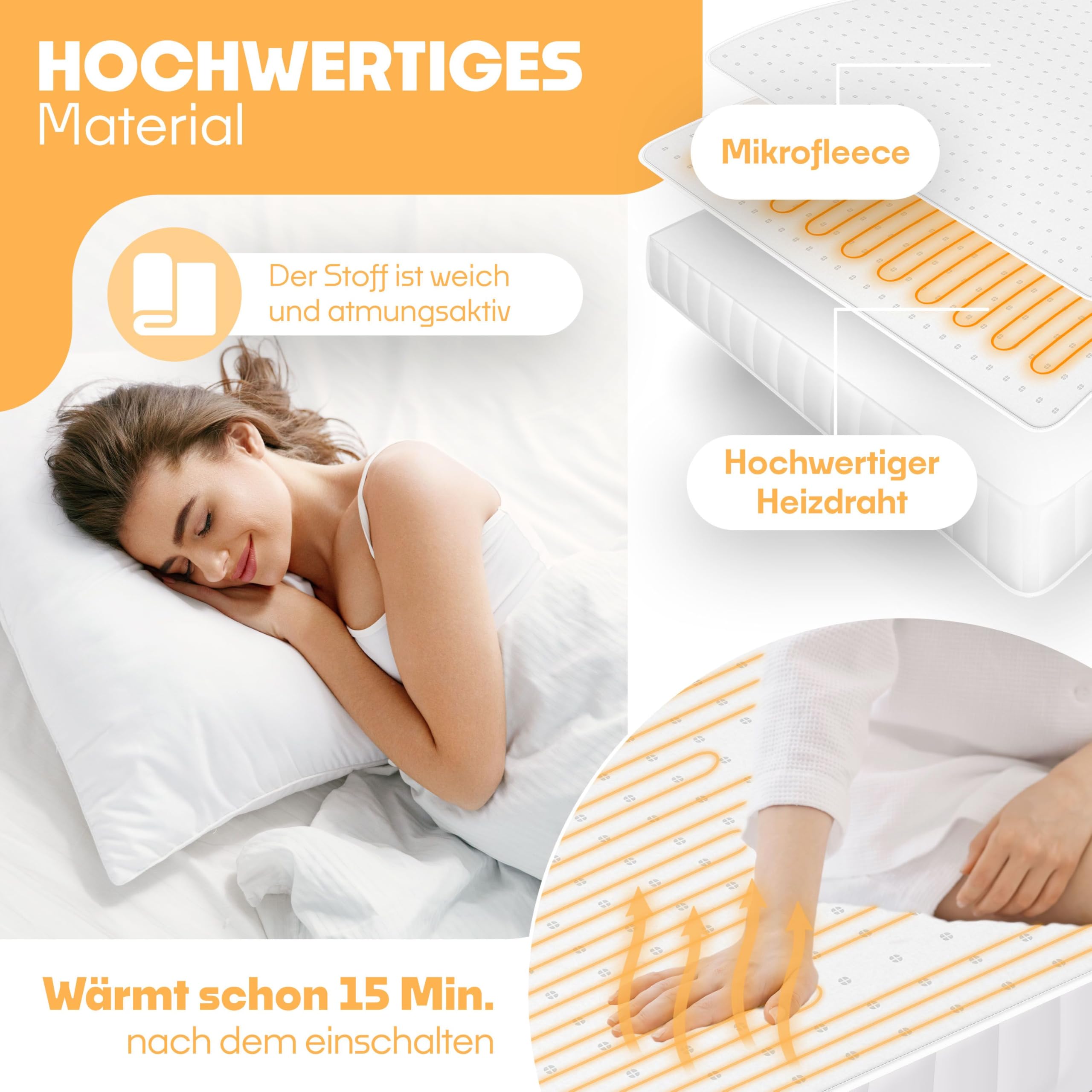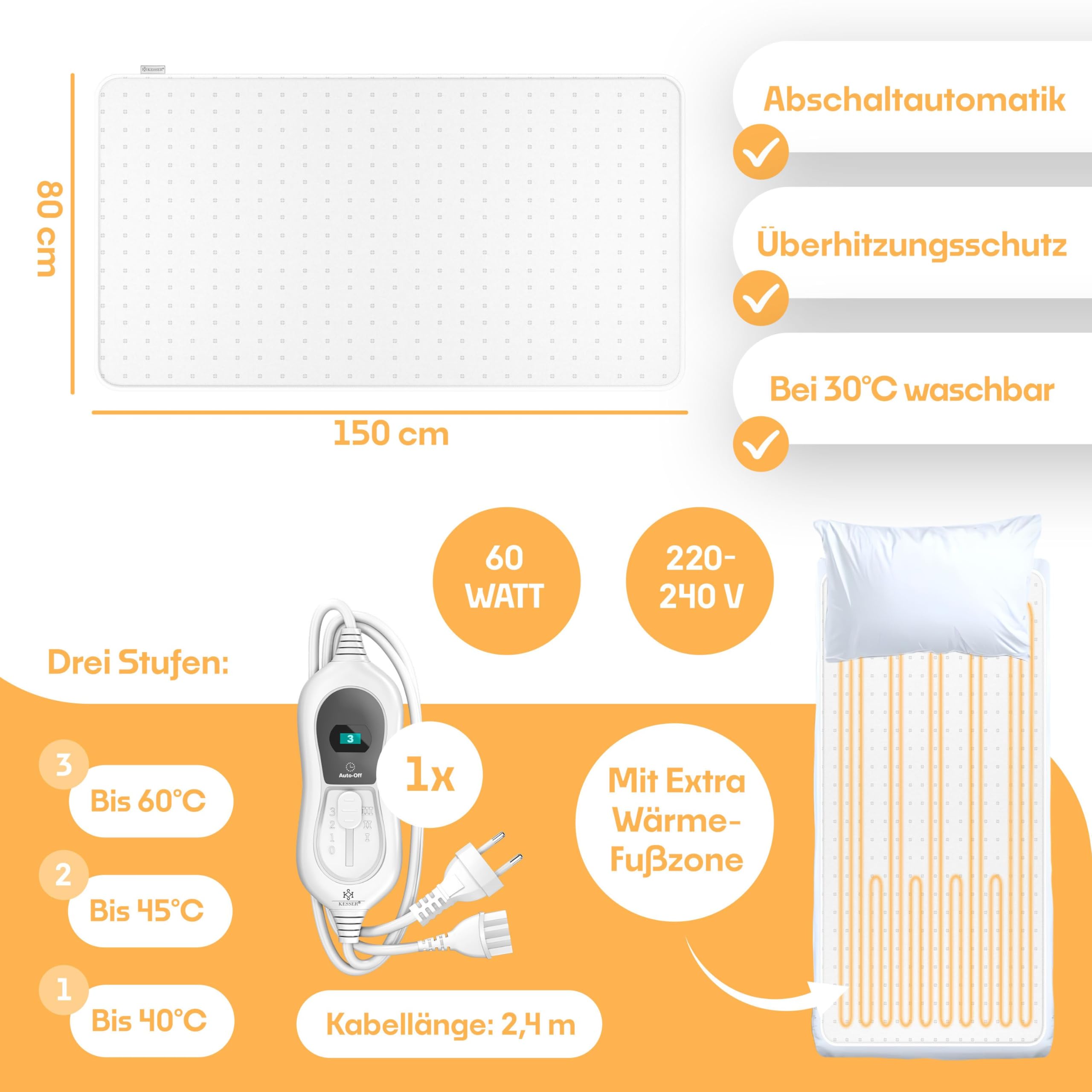 KESSER® Wärmeunterbett 150x80cm mit Abschaltautomatik Fernbedienung | Heizdecke mit 3 Temperaturstufen | Wärmebettunterlage fürs Bett Matratzenheizung | Wärmedecke aus weichem Vlies Heizkissen Weiss