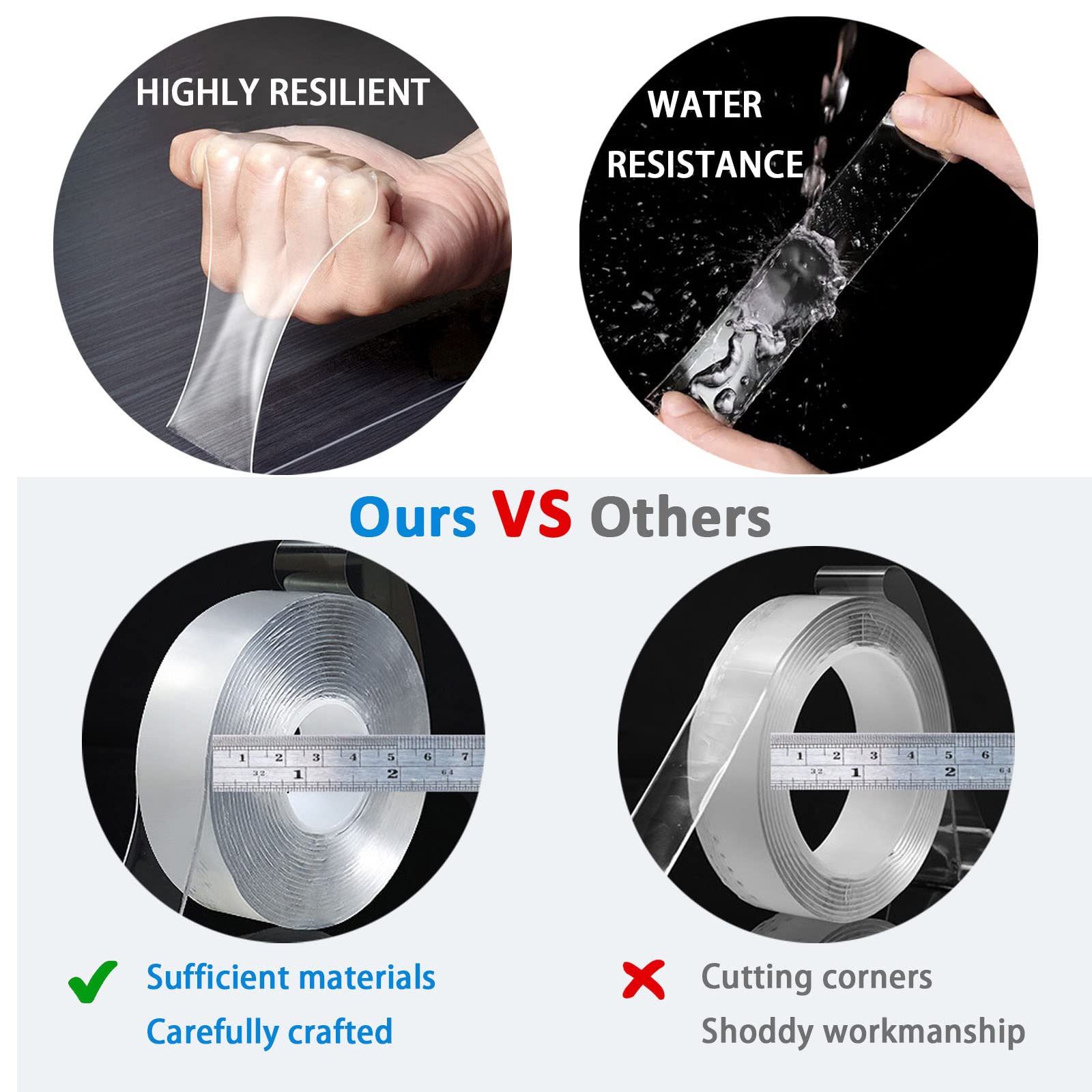 KEYRI Doppelseitiges Klebeband Extra Starkes, Nano Doppelseitiges Klebeband Transparent Tape Spurloses Waschbares Klebeband (12m)