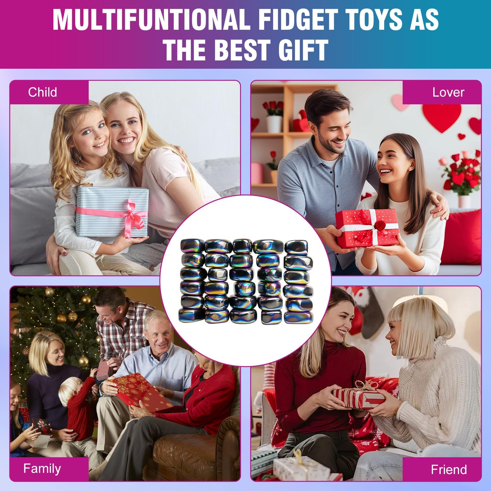 Kezidhp 30 Stück Magnetsteine aus Hämatit - Magnetspiel für Erwachsene, Anti-Stress Kugel & Kreatives Konstruktionsspielzeug - Entspannendes Magnetisches Geduldspiel Geschenk ASMR