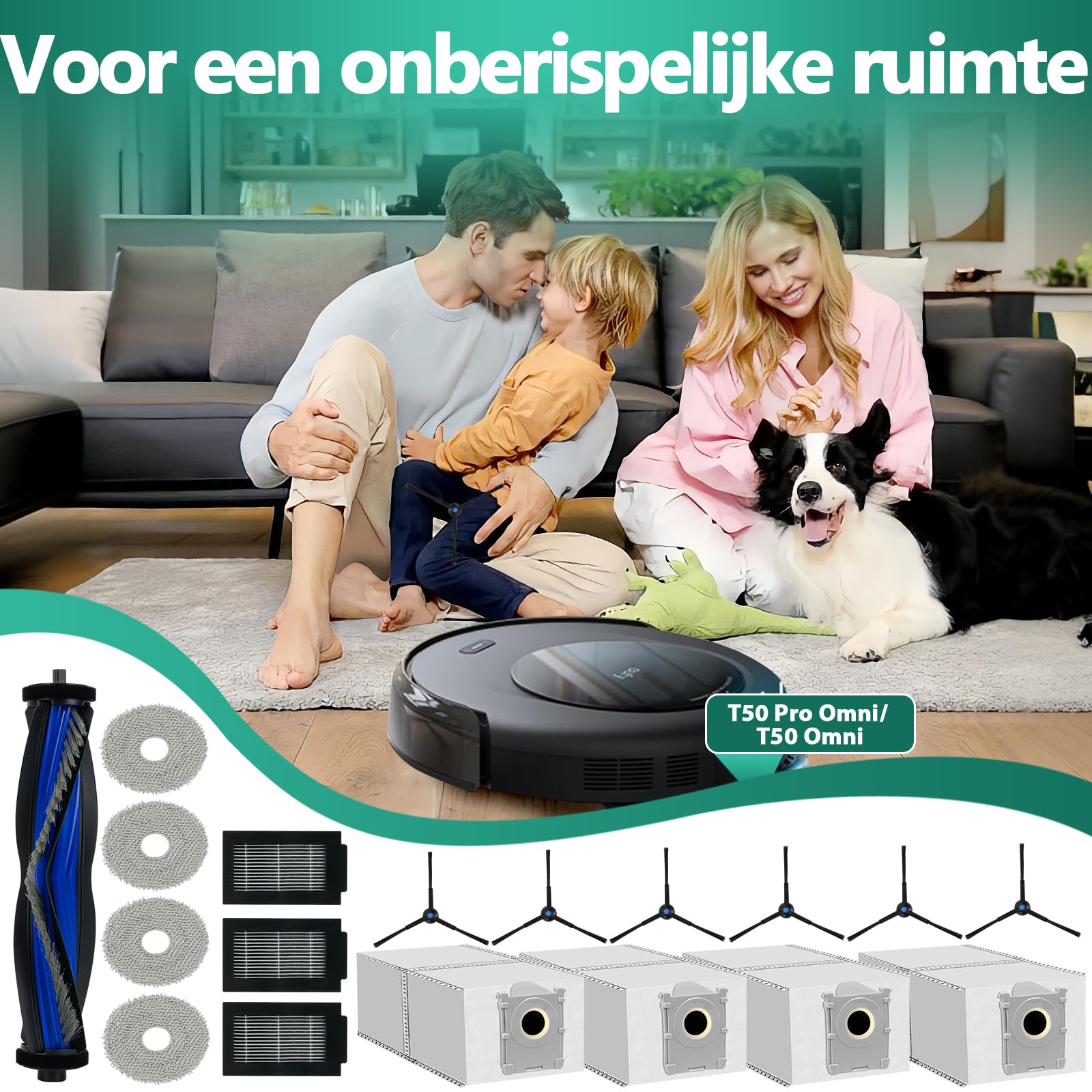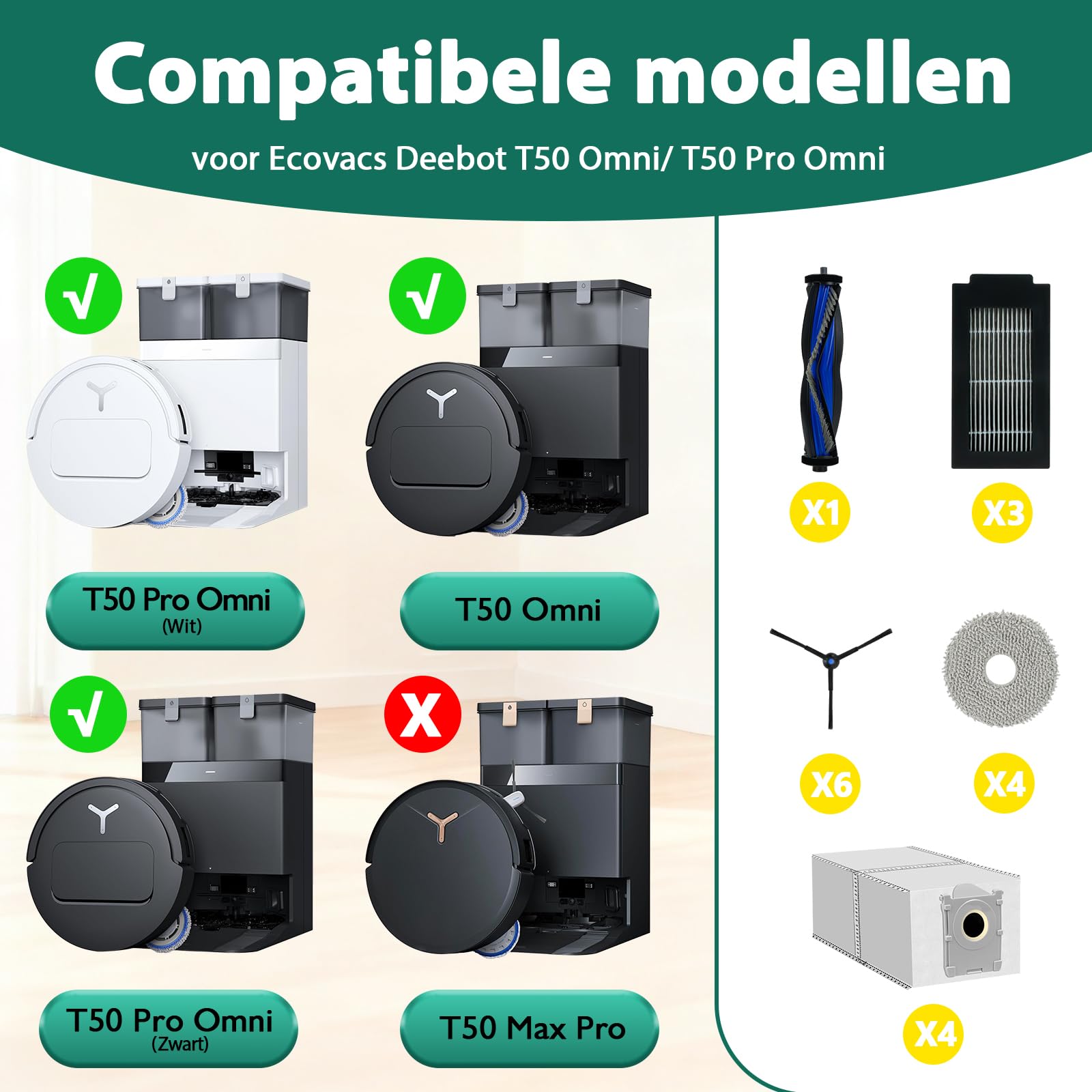 KGC 18 Stück Zubehörset für Ecovacs Deebot T50 Pro Omni, T50 Pro Omni Gen2, T50 Omni, T50 Omni Gen2 Saugroboter, 1 Hauptbürste, 4 Staubbeutel, 4 Wischpads, 3 Filter, 6 Seitenbürsten