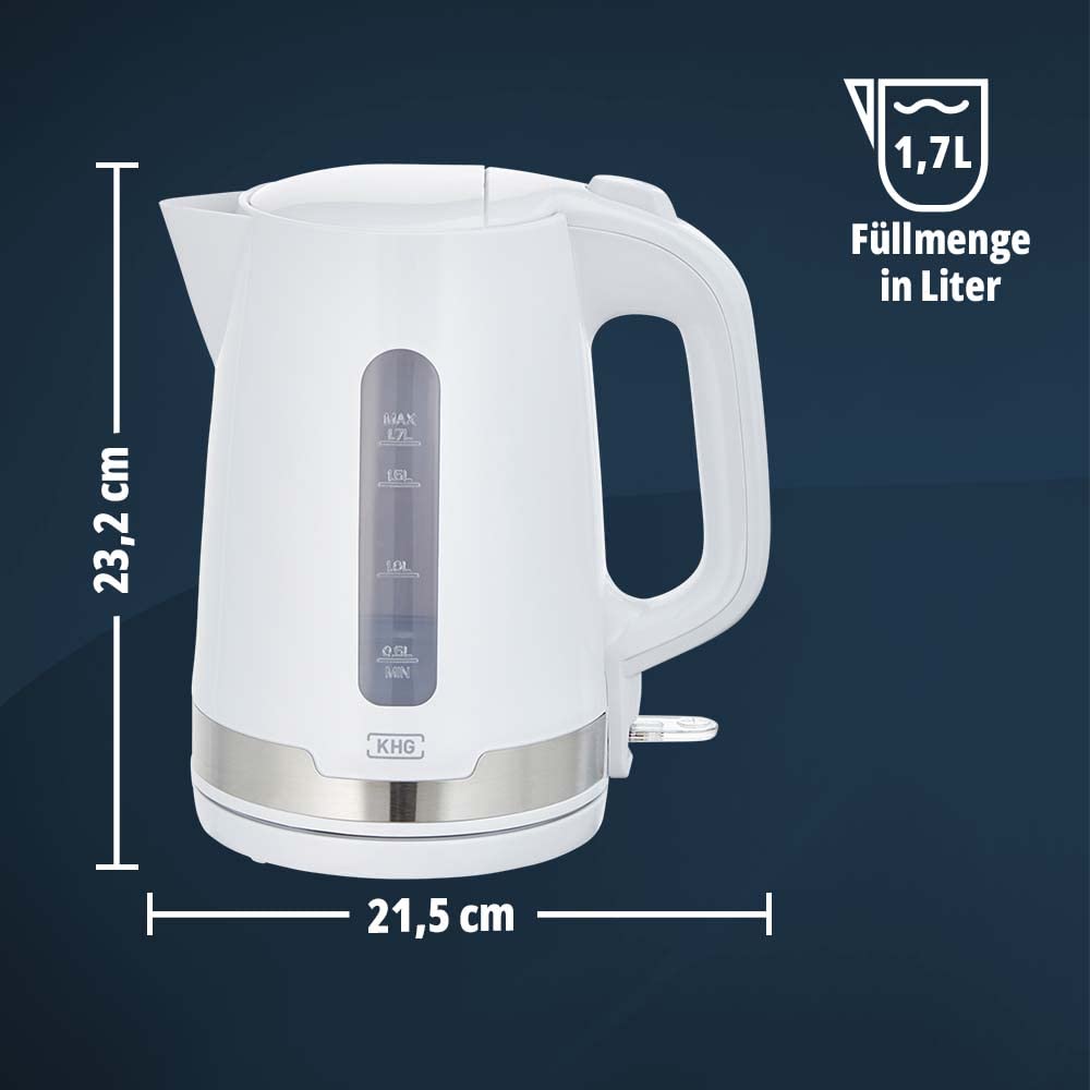 KHG Frühstücksset Wasserkocher und Toaster Set 2-teilig, 2.200 & 850 Watt, Kapazität 1,7 Liter & 2 Scheiben Toast, Küchenset mit Kalkfilter & Krümmelauffang - Weiss