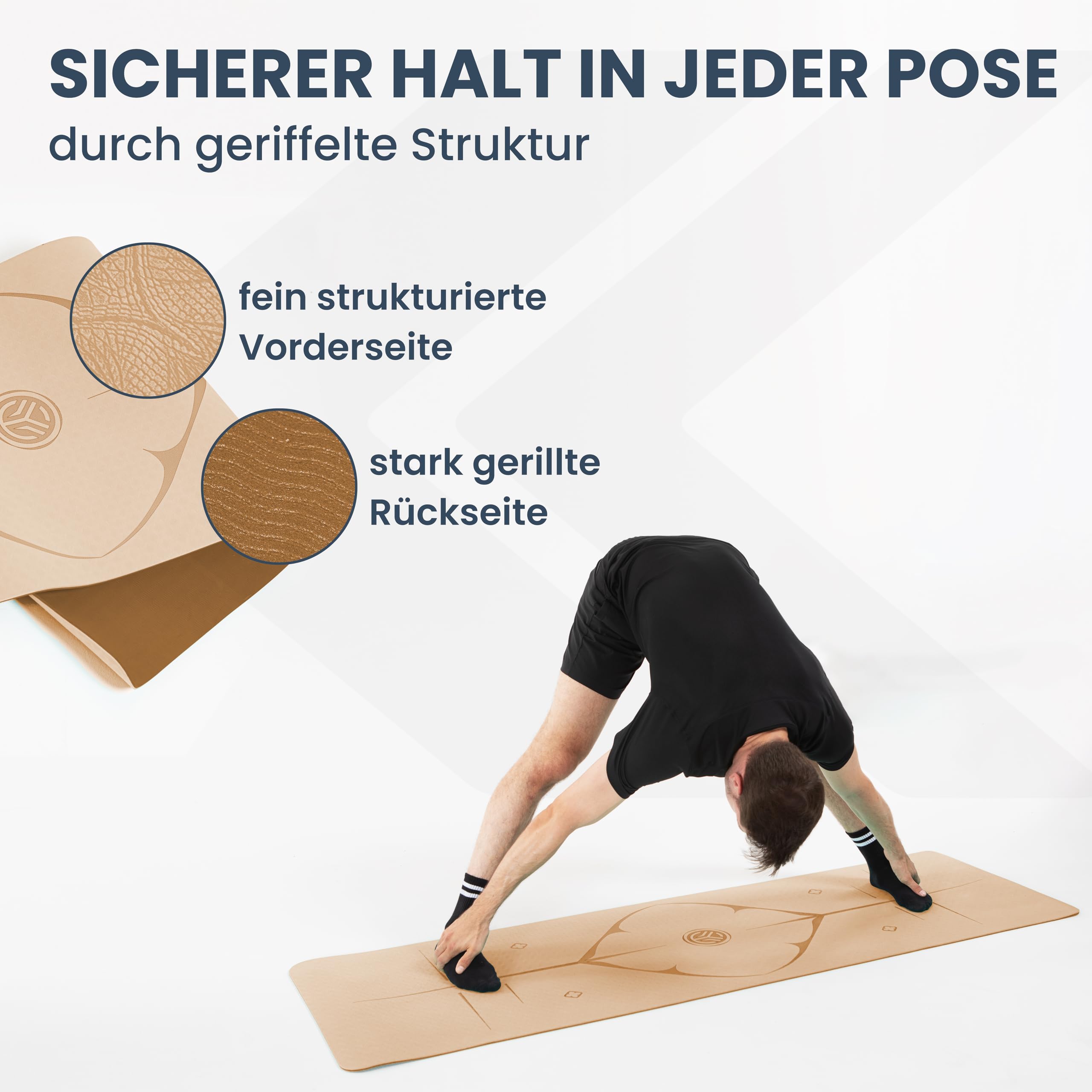 • ✅ RUTSCHFEST BEI JEDER BEWEGUNG: Ob kraftvolle Flows oder ruhige Asanas – deine Yogamatte bietet dir festen Stand auf jedem Untergrund. Die griffige Struktur auf Vorder- und Rückseite sorgt für sicheren Halt – ganz ohne Verrutschen. Auf diese rutschfeste Yoga Matte kannst du dich verlassen.