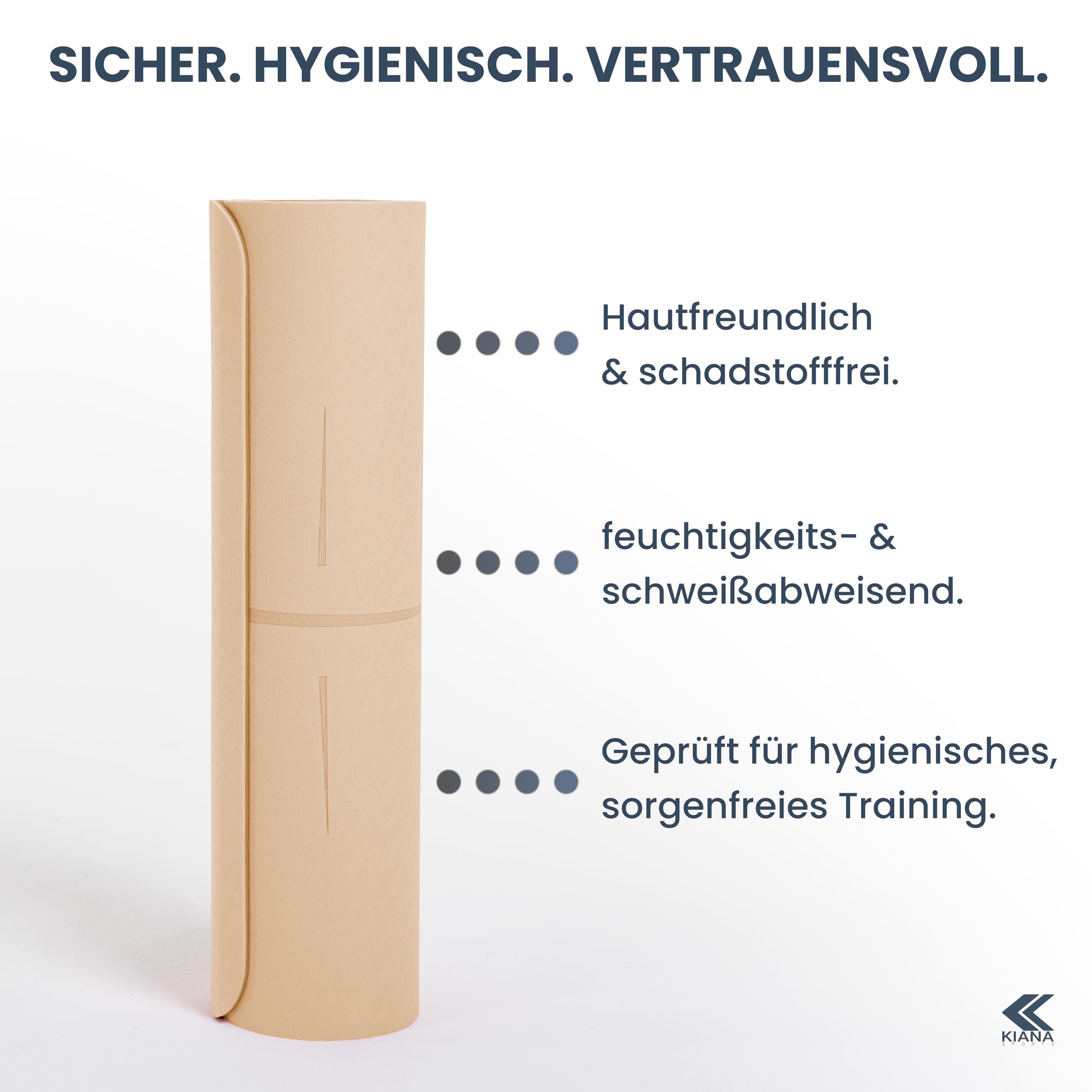 KIANA SPORTS® Yoga Matte – Rutschfeste Sportmatte in Deutschland entwickelt – 2 Komfort-Dicken – Formstabile Yogamatte & Gymnastikmatte – Ideale Fitnessmatte für Yoga & Pilates zuhause oder im Studio