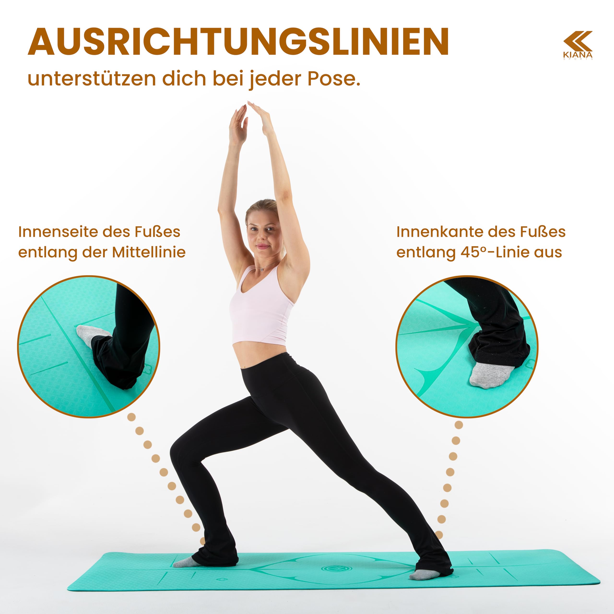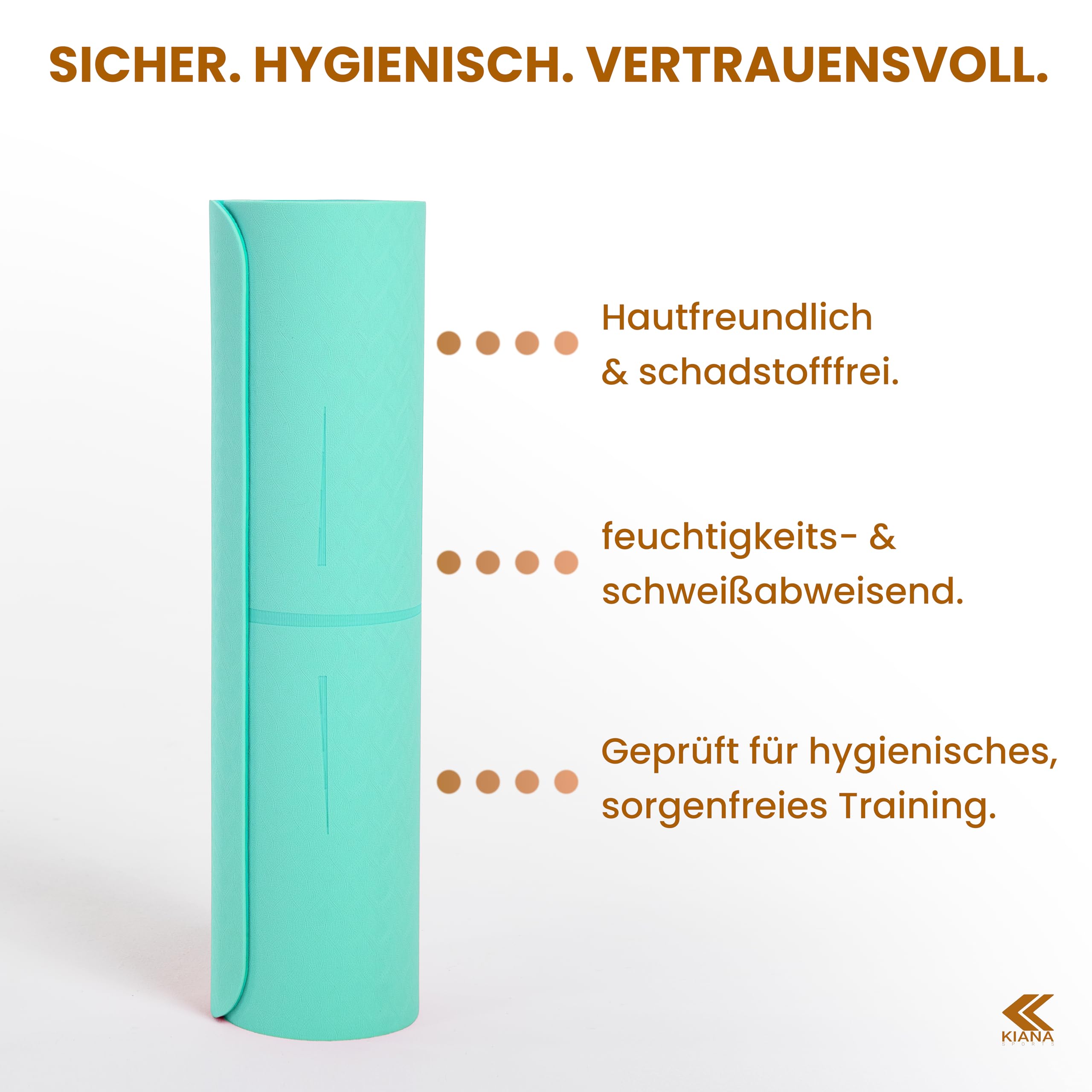 KIANA SPORTS® Yoga Matte – Rutschfeste Sportmatte in Deutschland entwickelt – 2 Komfort-Dicken – Formstabile Yogamatte & Gymnastikmatte – Ideale Fitnessmatte für Yoga & Pilates zuhause oder im Studio