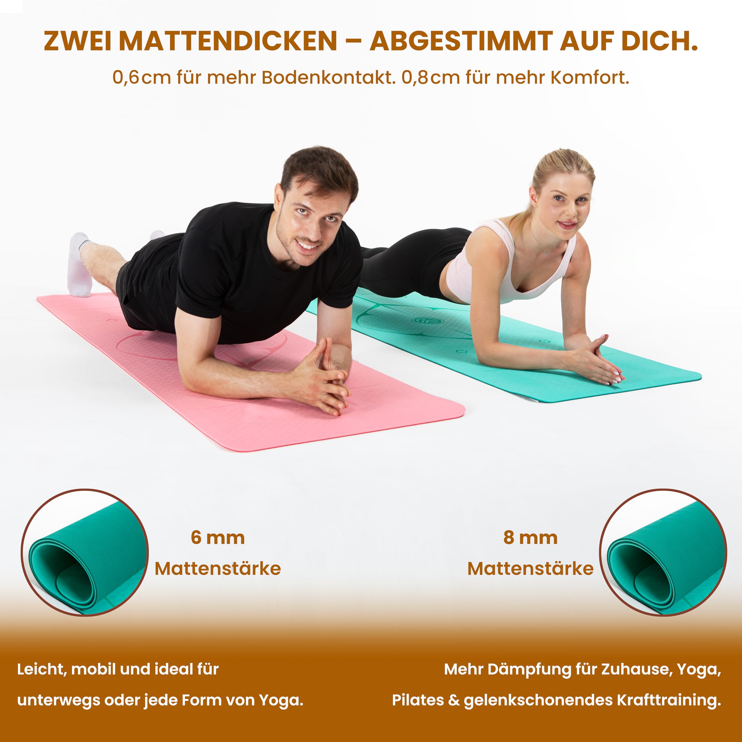 • ✅ ZWEI STÄRKEN, DIE ZU DIR PASSEN: Wähle deine Sport Matte so, wie sie zu dir passt: 0,6 cm für mehr Bodennähe und Mobilität oder 0,8 cm für extra Komfort und Dämpfung. Beide Varianten bieten dir genau die Pilates Matte, die du für dein individuelles Training brauchst.